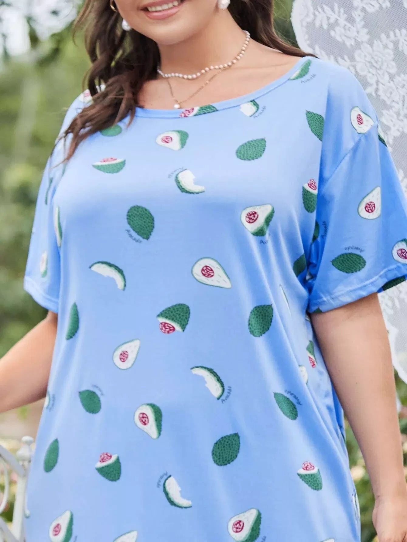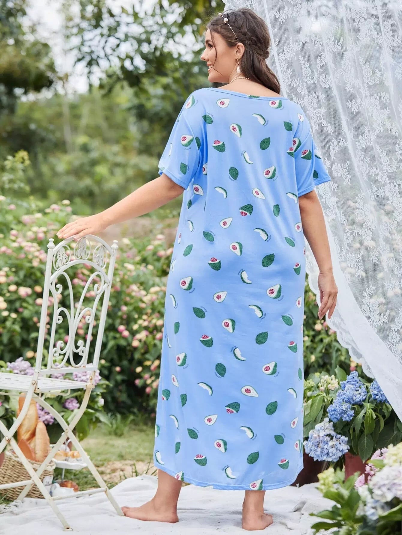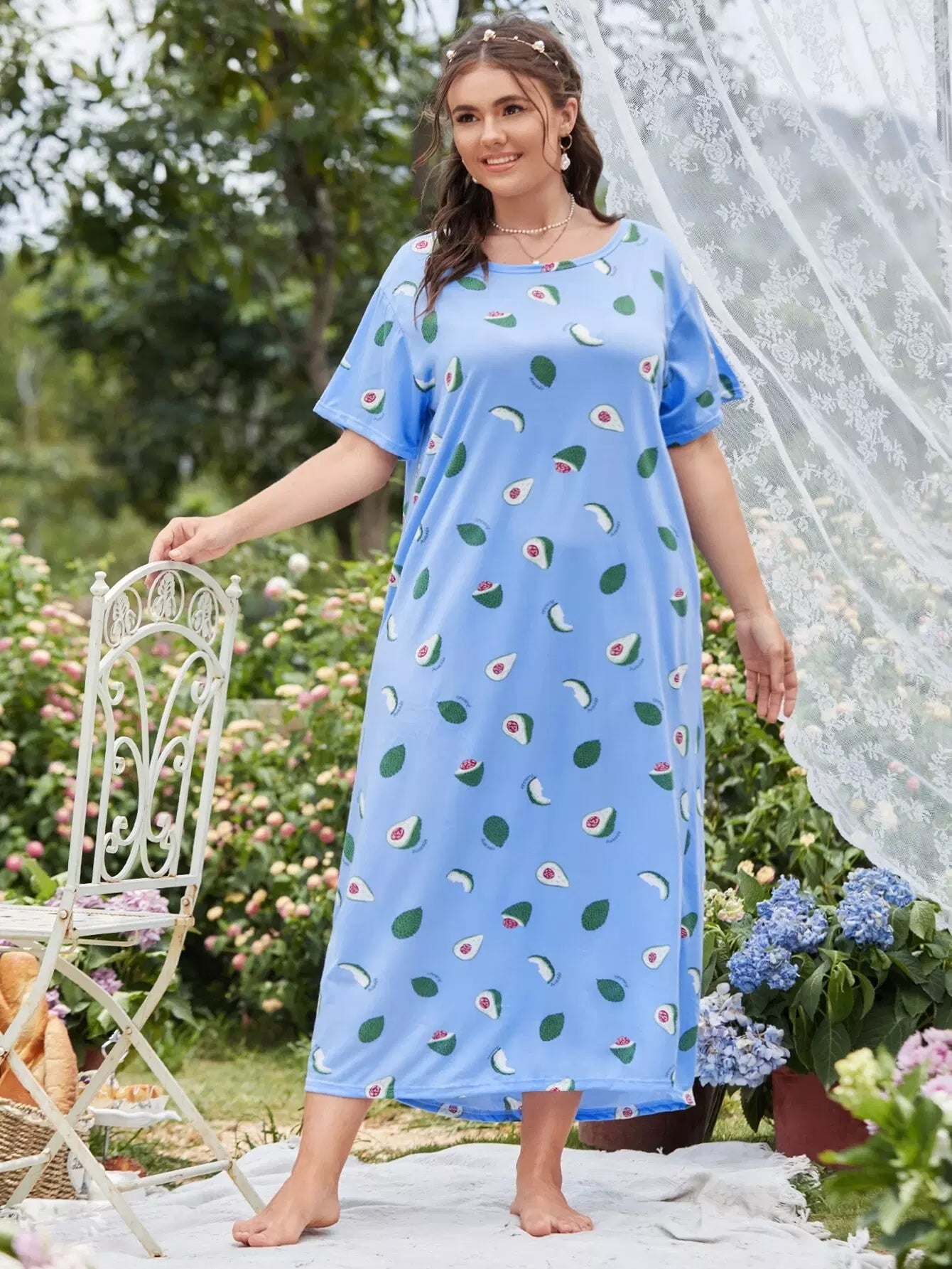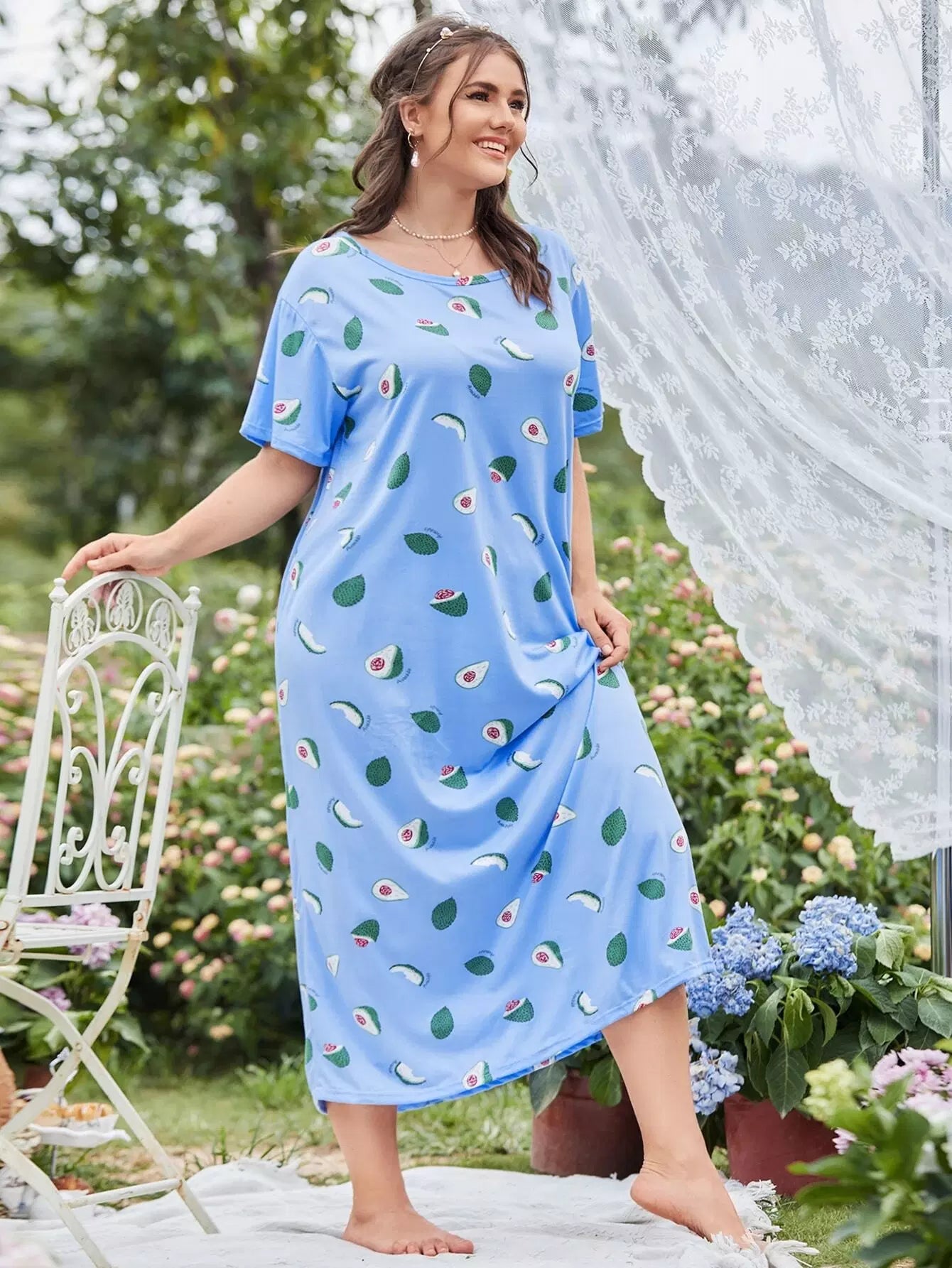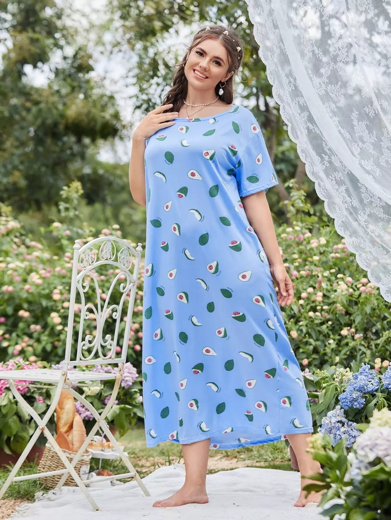 نحيف - مقاس كبير فستان نوم برسومات الفاكهة والحروف
