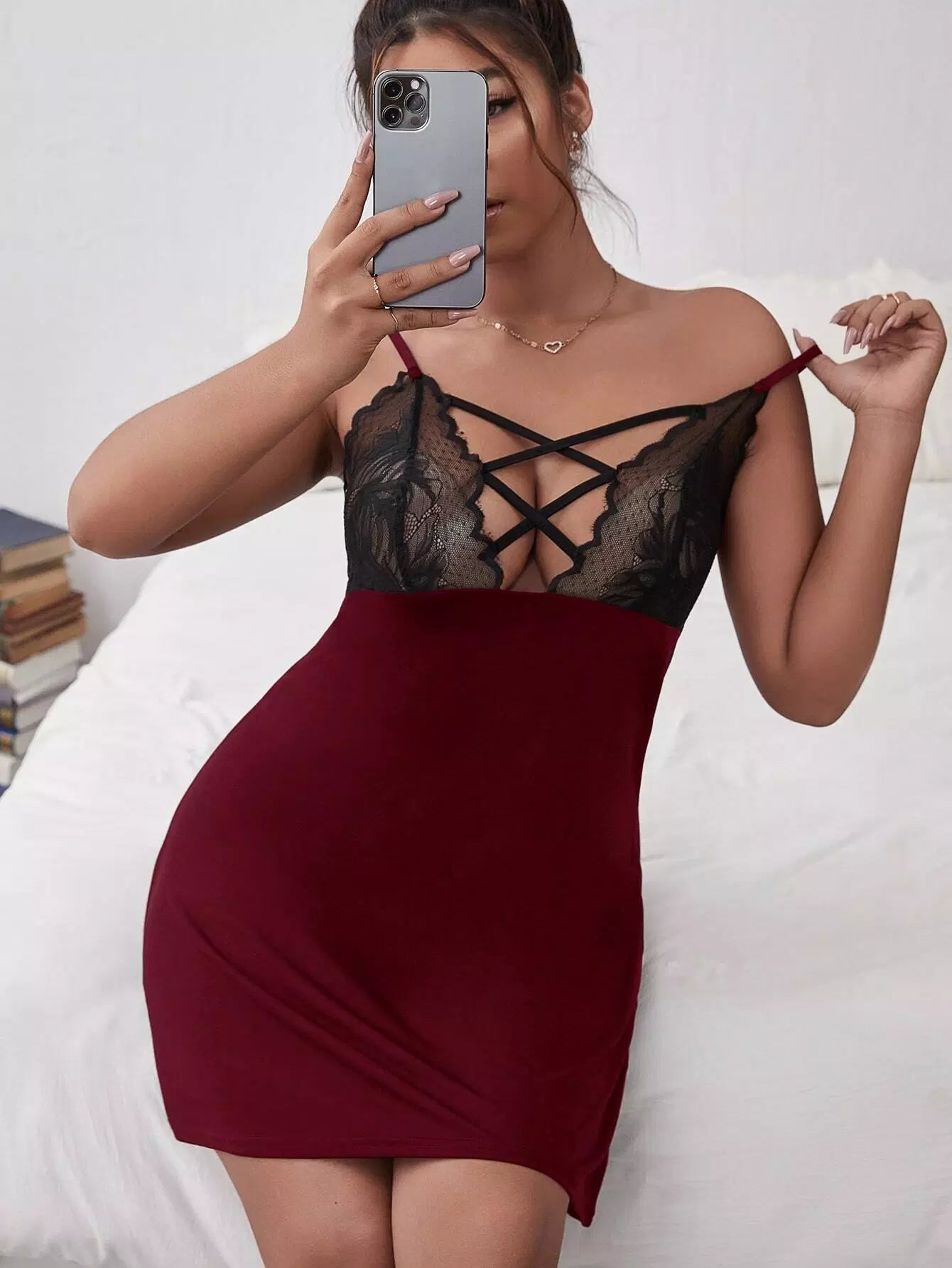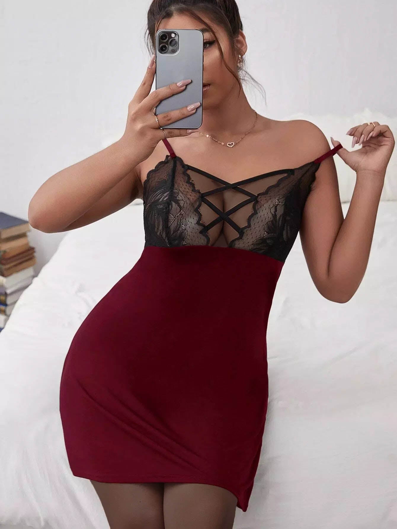 فستان سهرة ليلي مزين بالدانتيل المتقاطع
