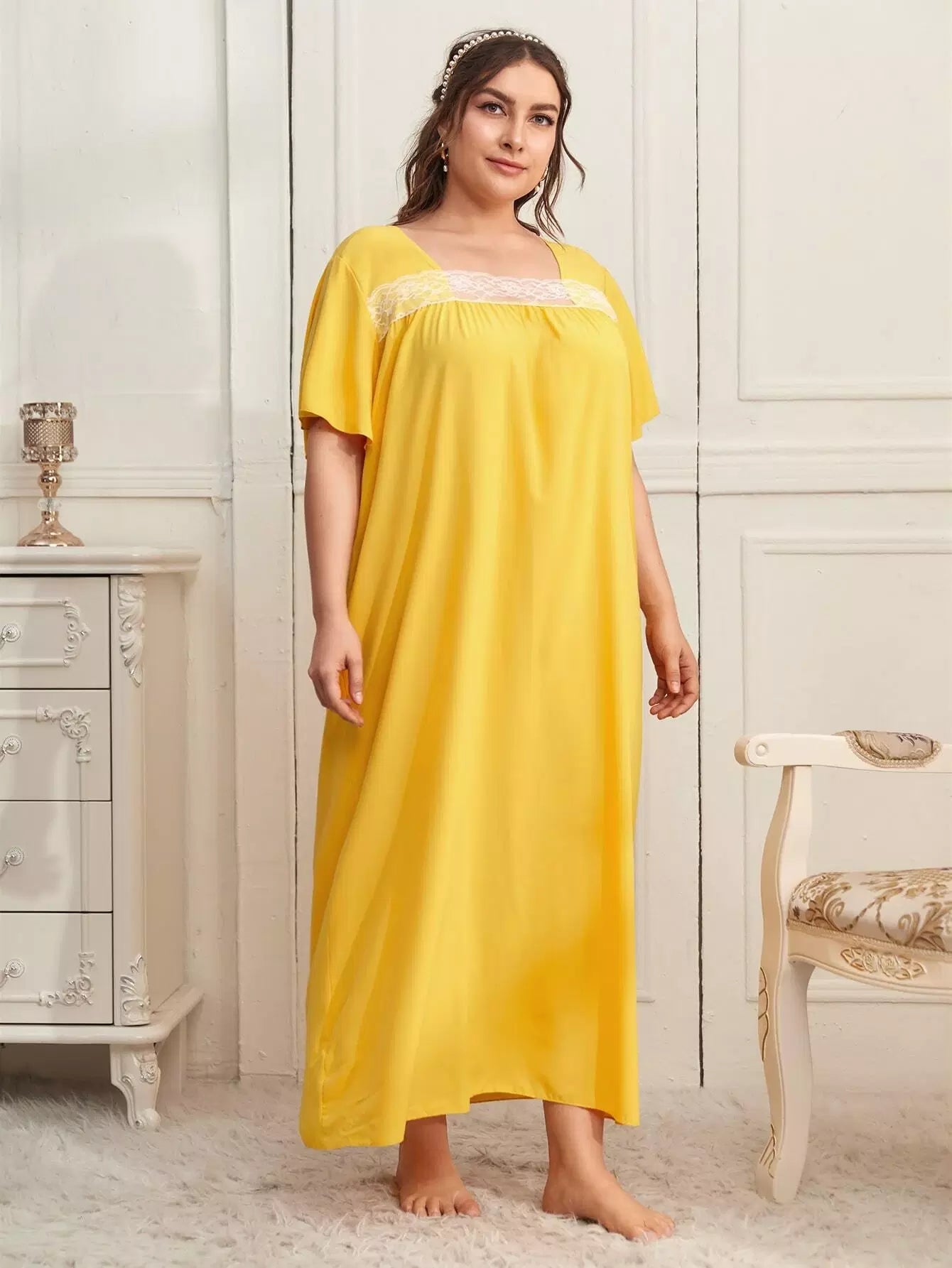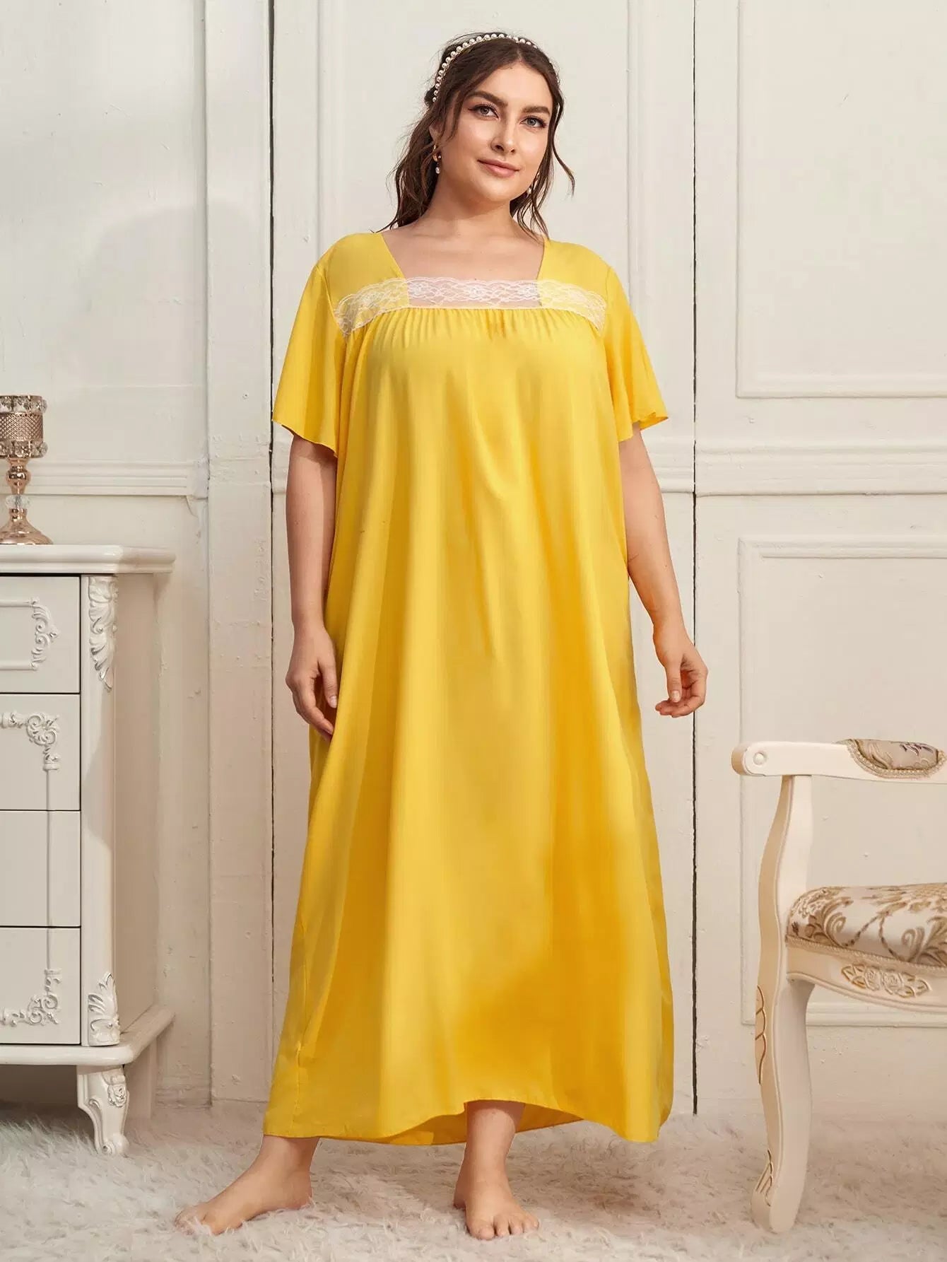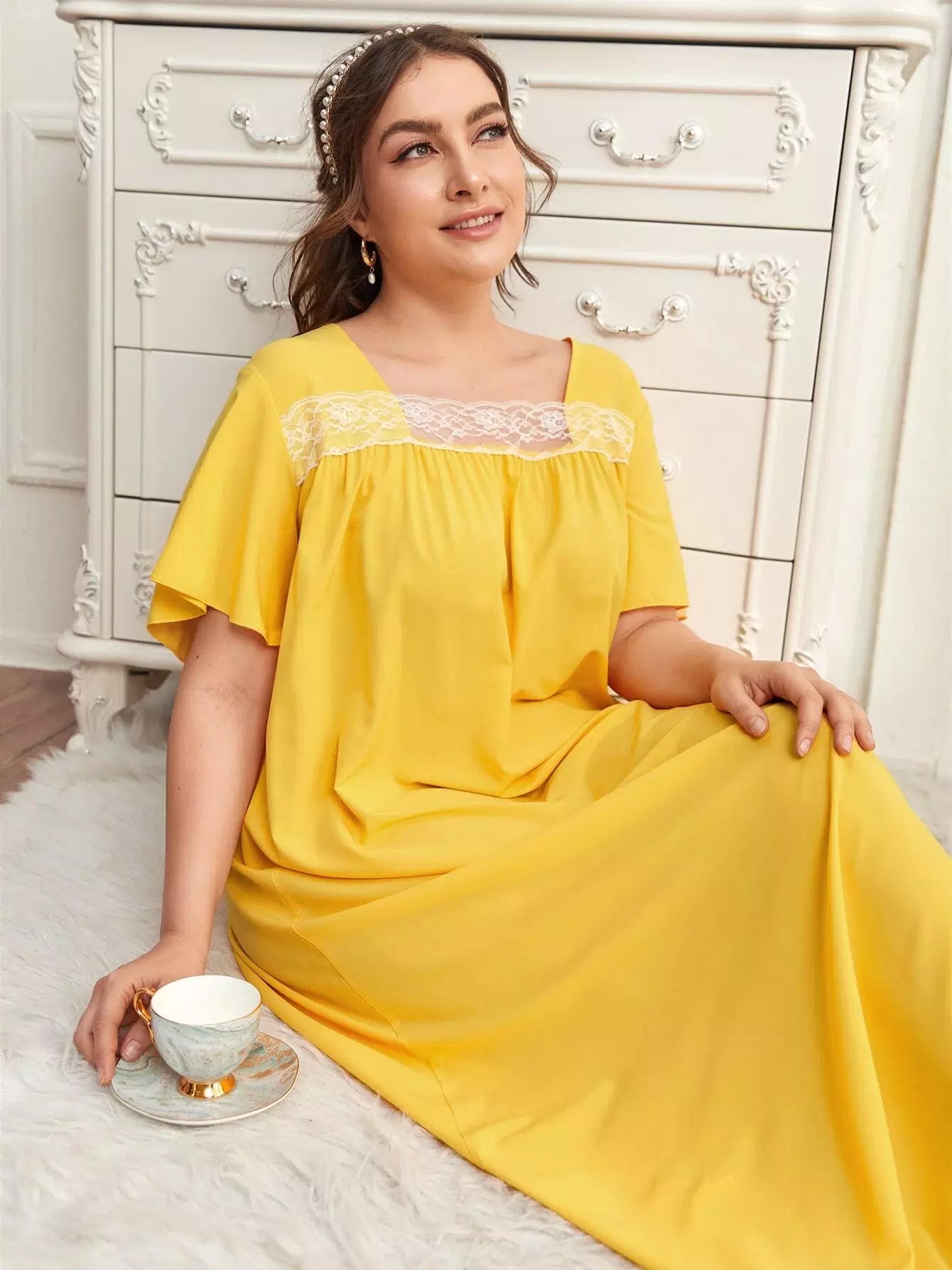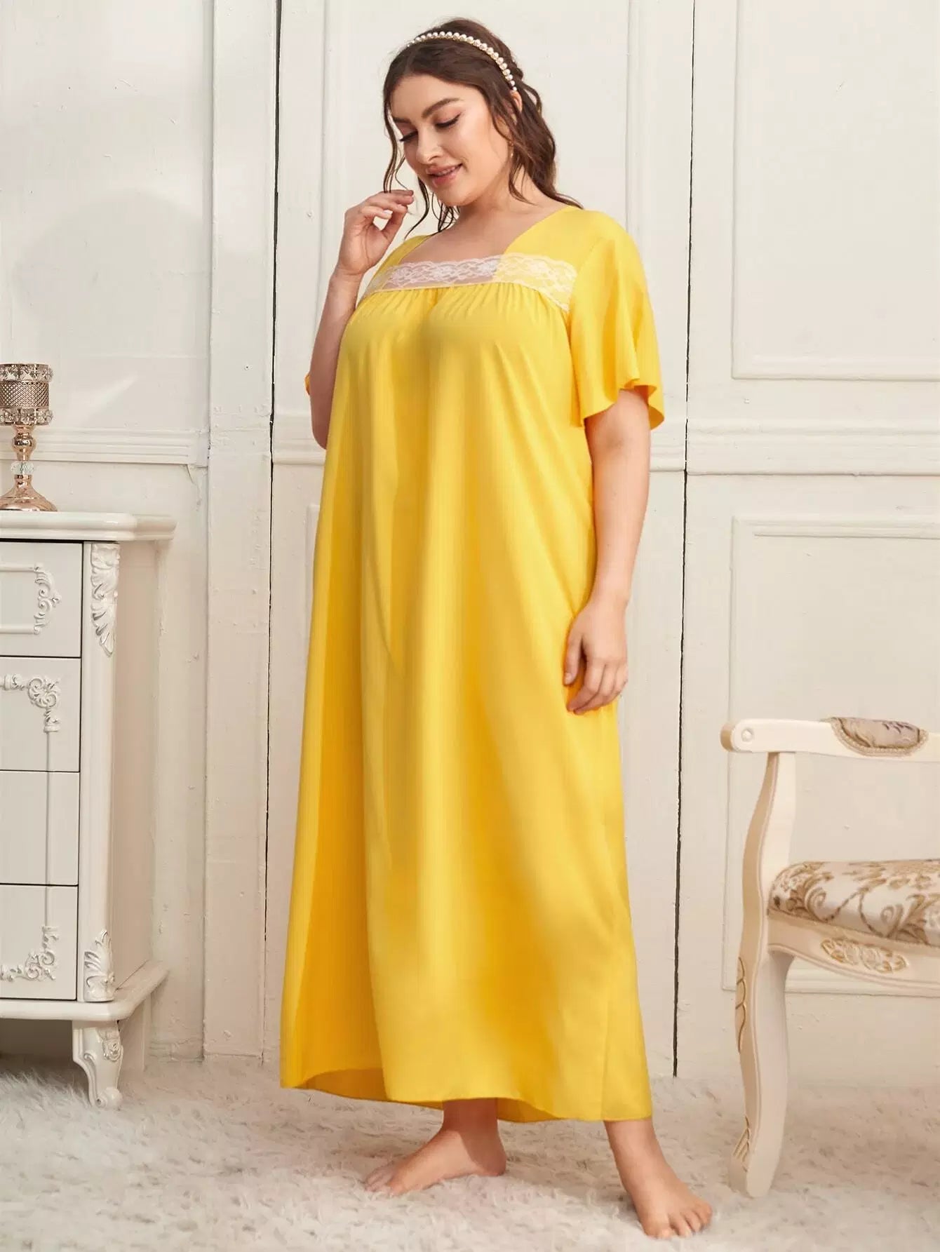 فستان سهرة بأكمام دانتيل بأكمام فراشة زائد