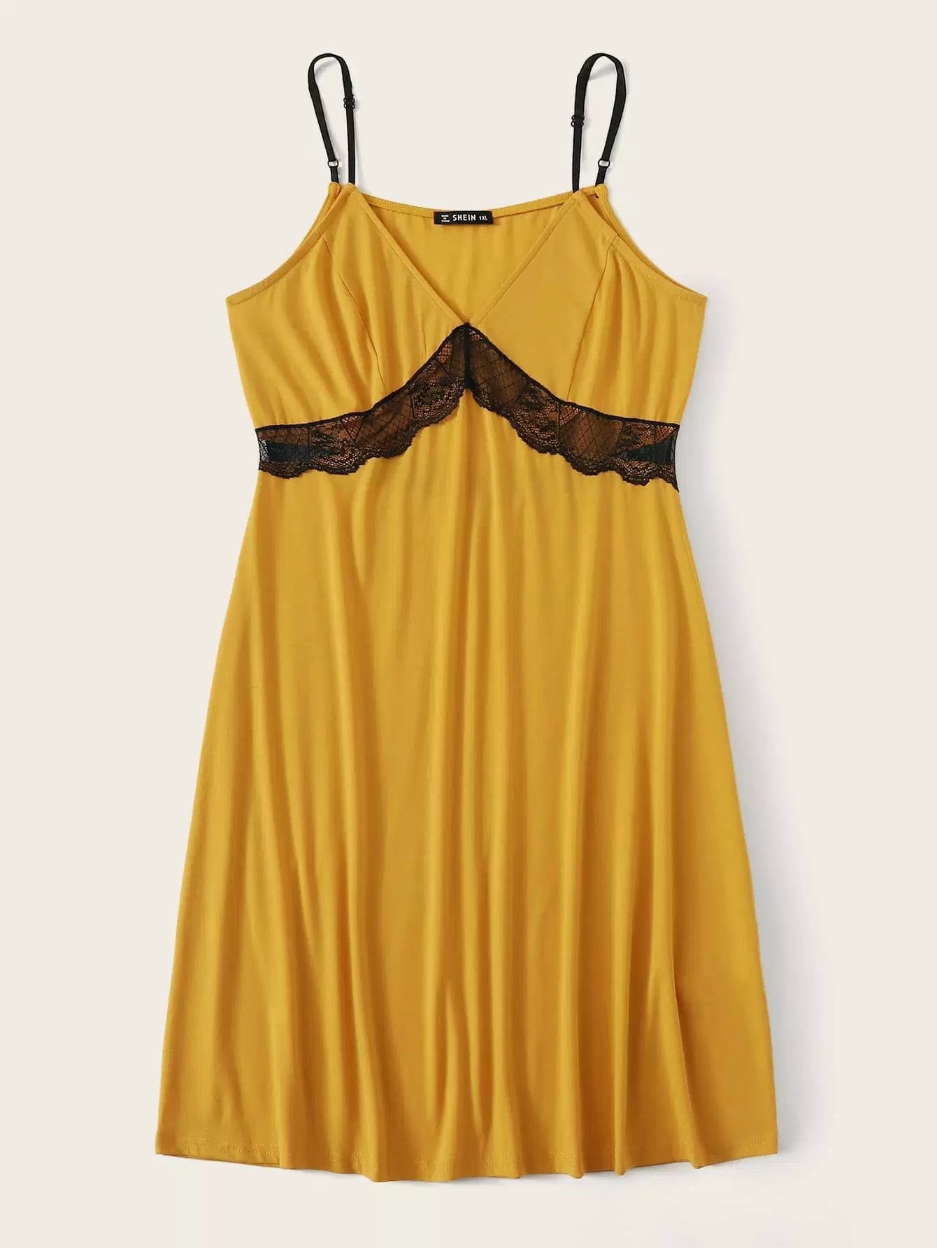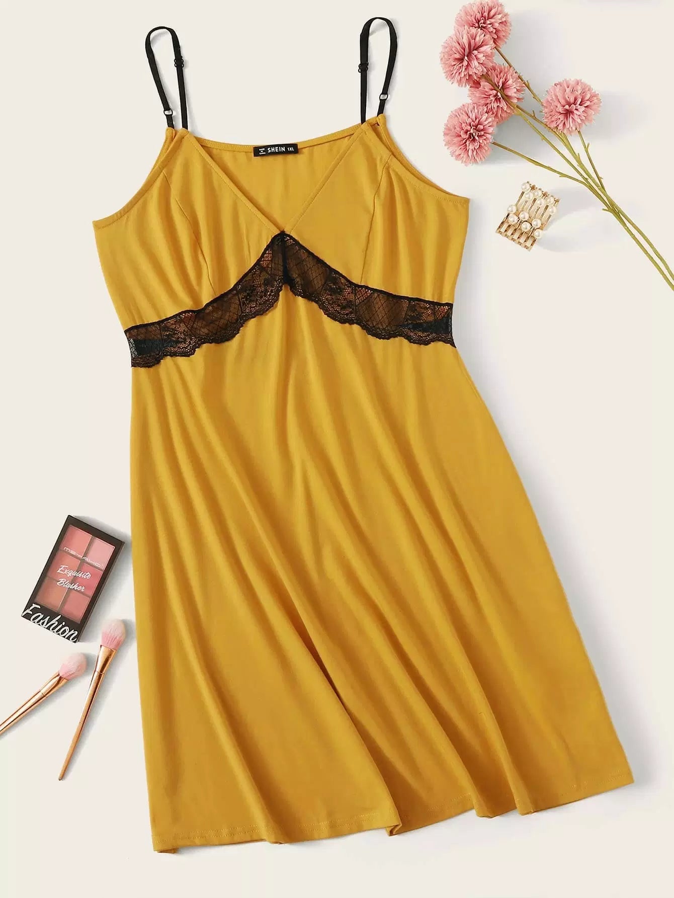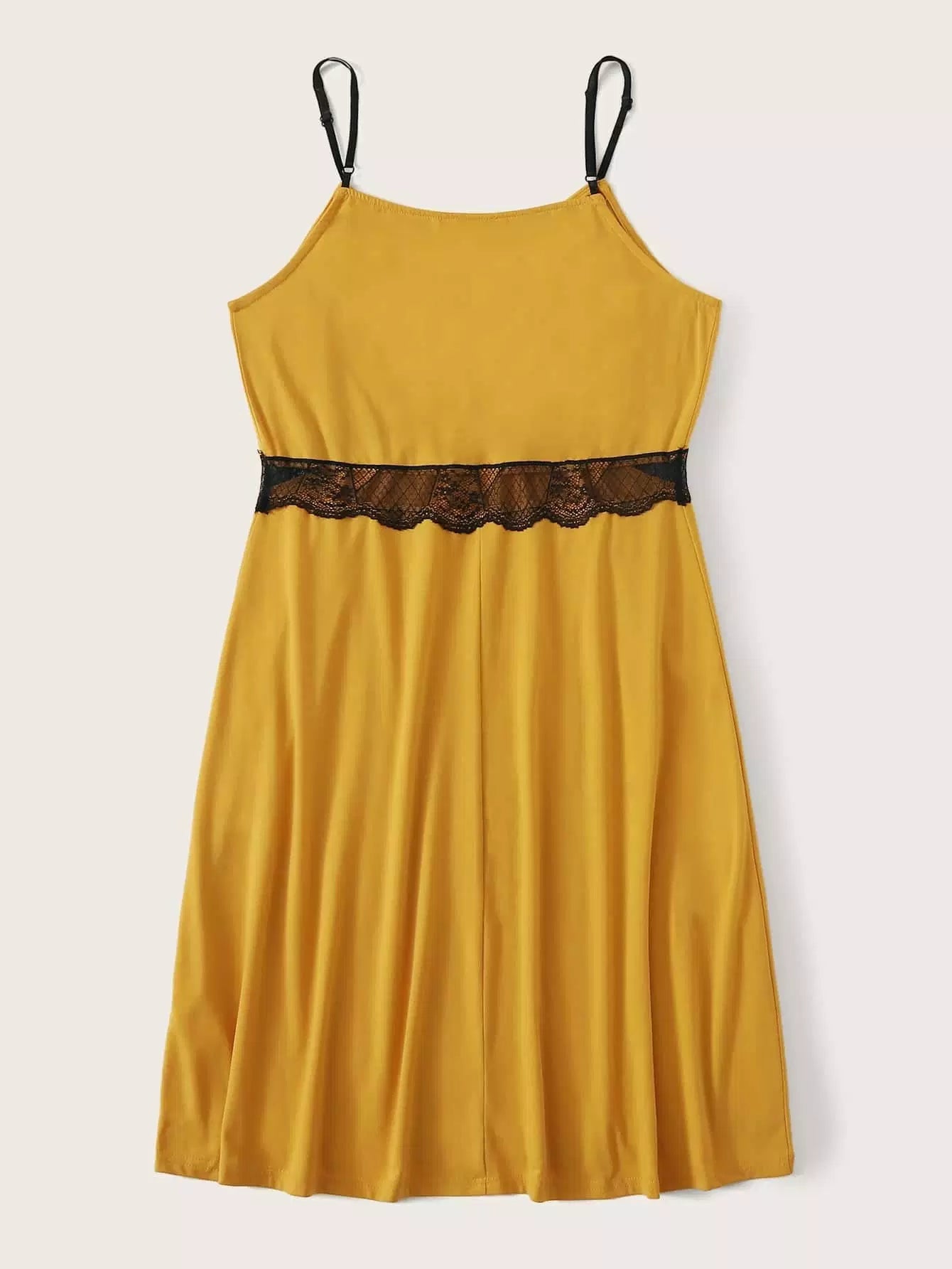 فستان نوم كامي بحواف من الدانتيل الزائد