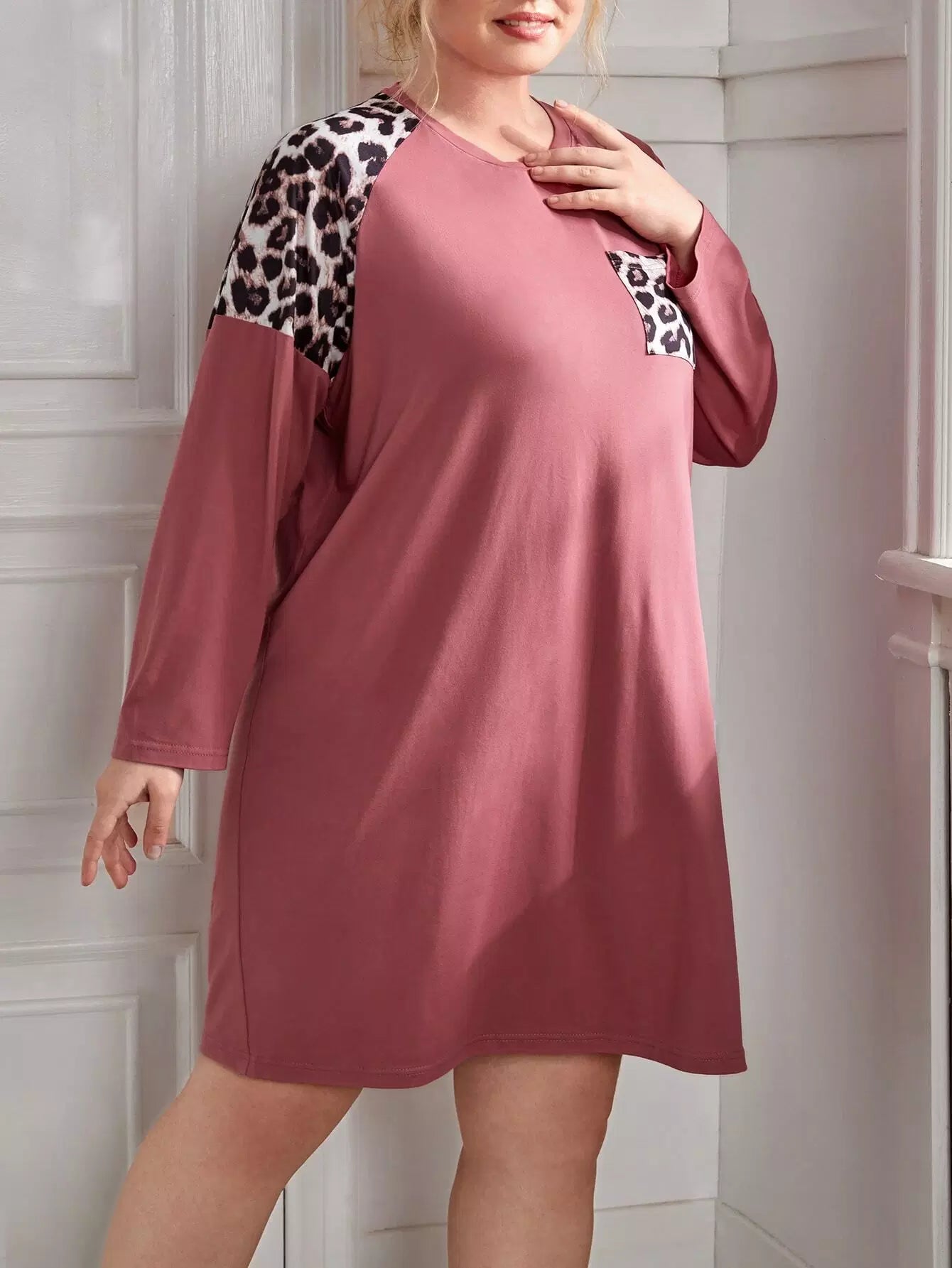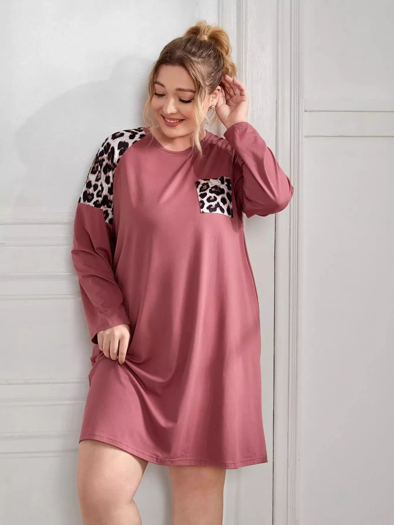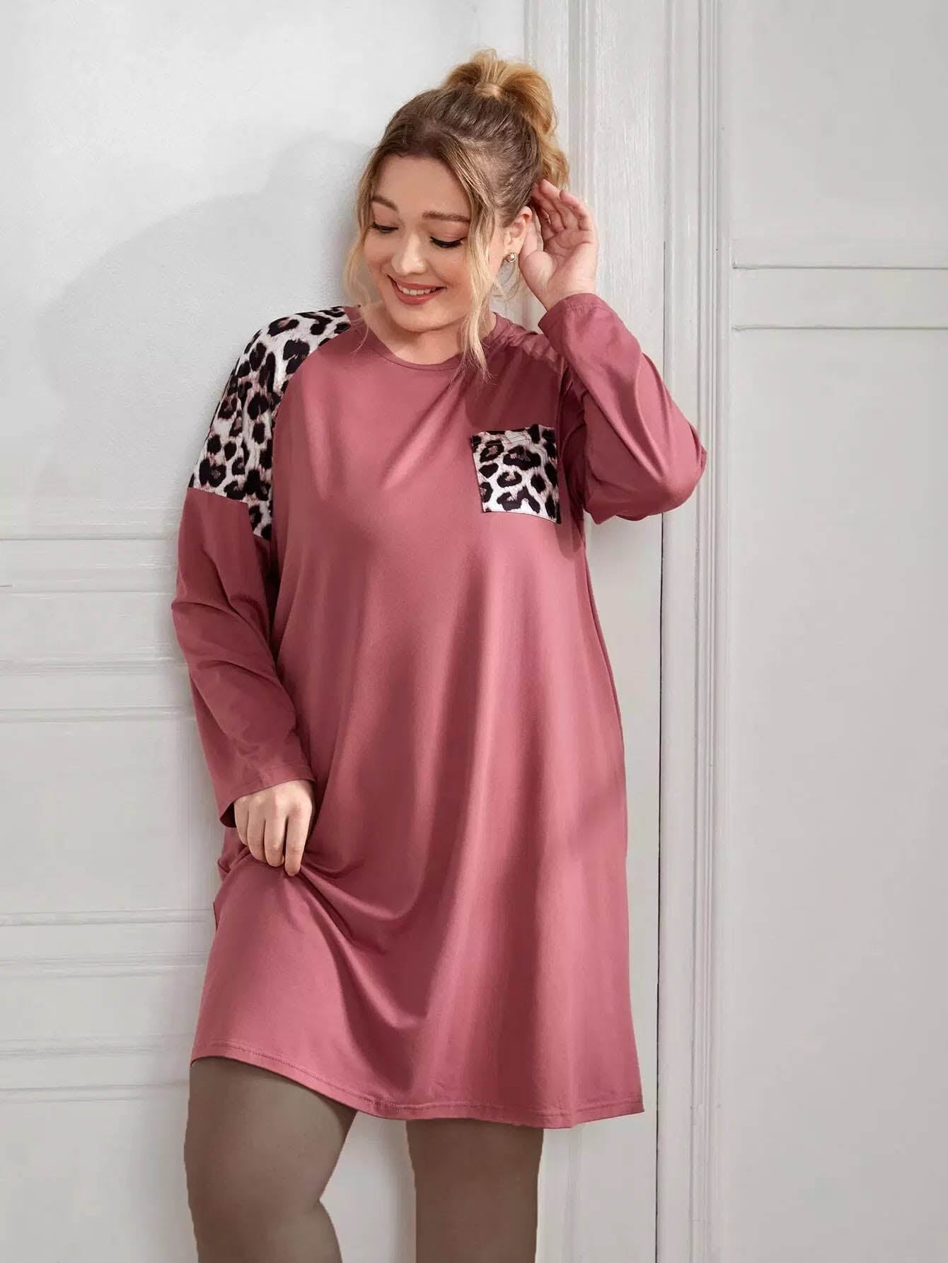 فستان ليلي بأكمام راجلان بأكمام مرقعة بنقشة جلد النمر