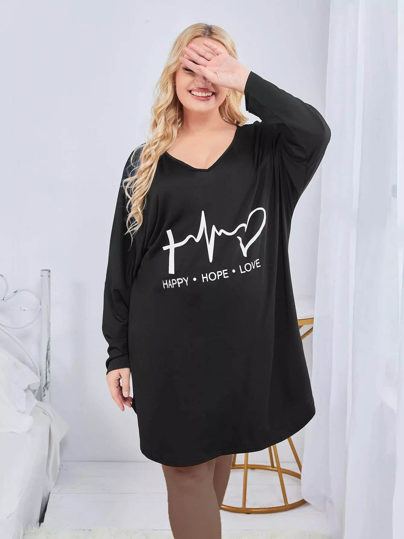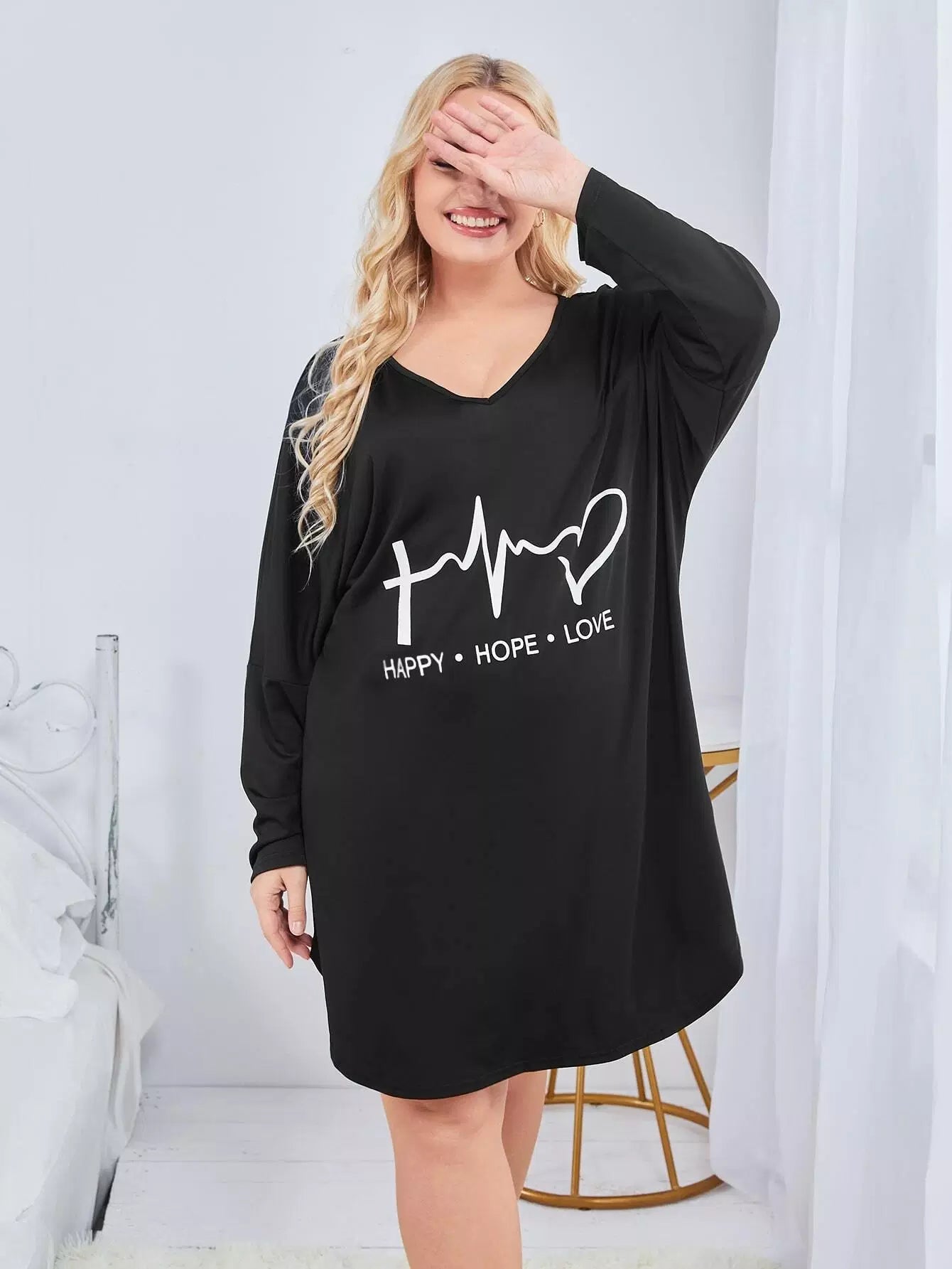 قميص نوم مطبوع عليه حروف وقلب زائد