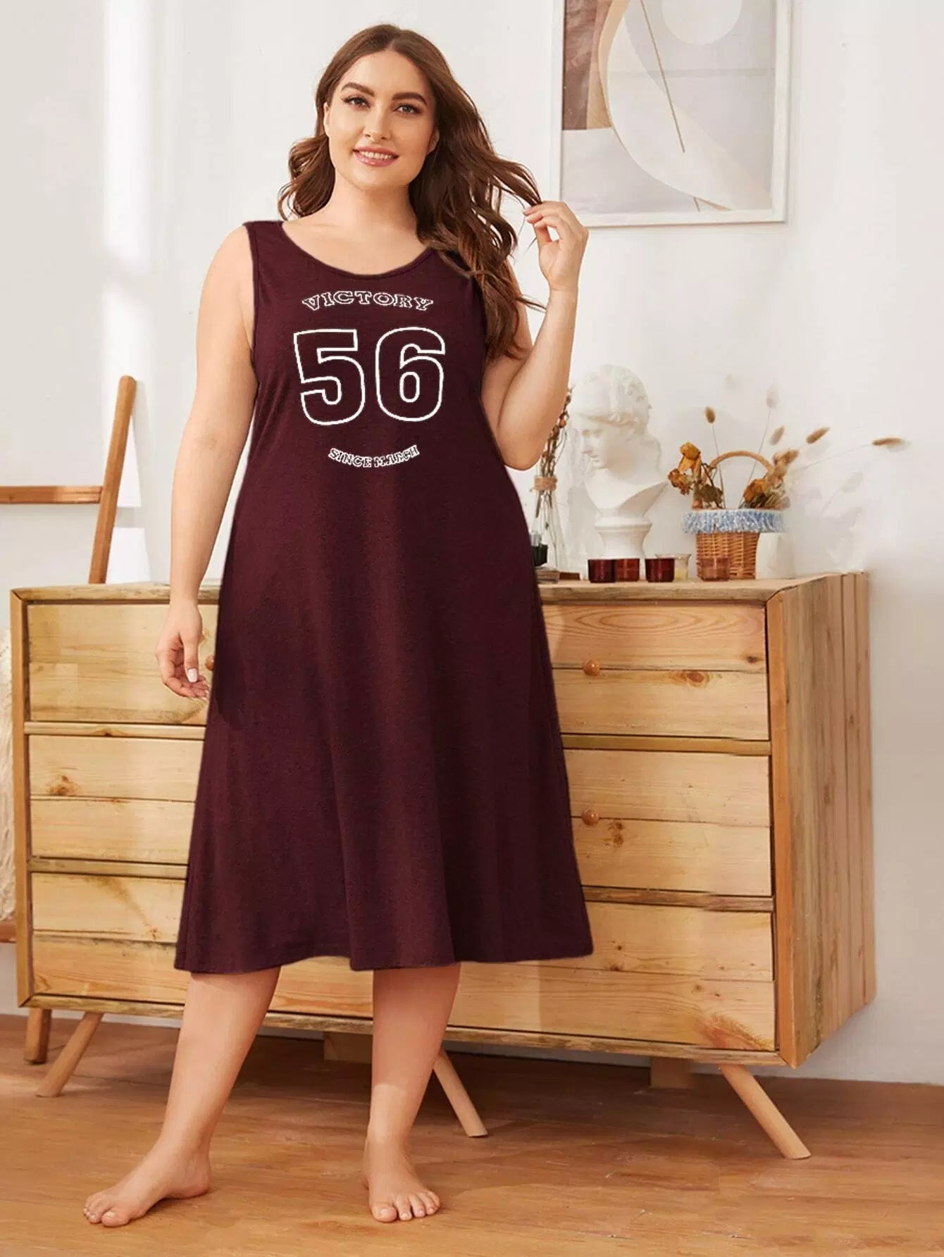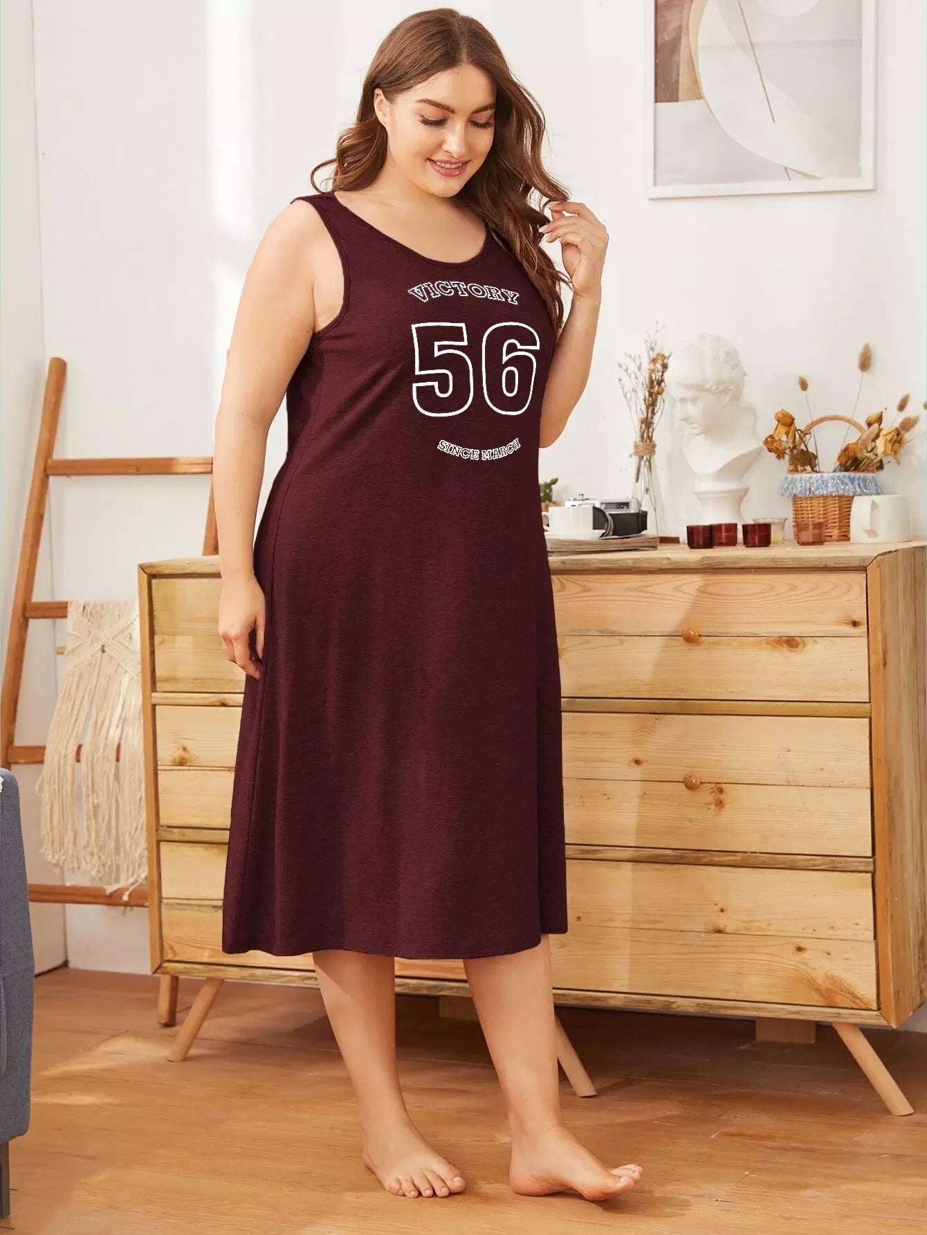 نحيف - مقاس كبير قميص نوم بدون أكمام برسومات الحروف