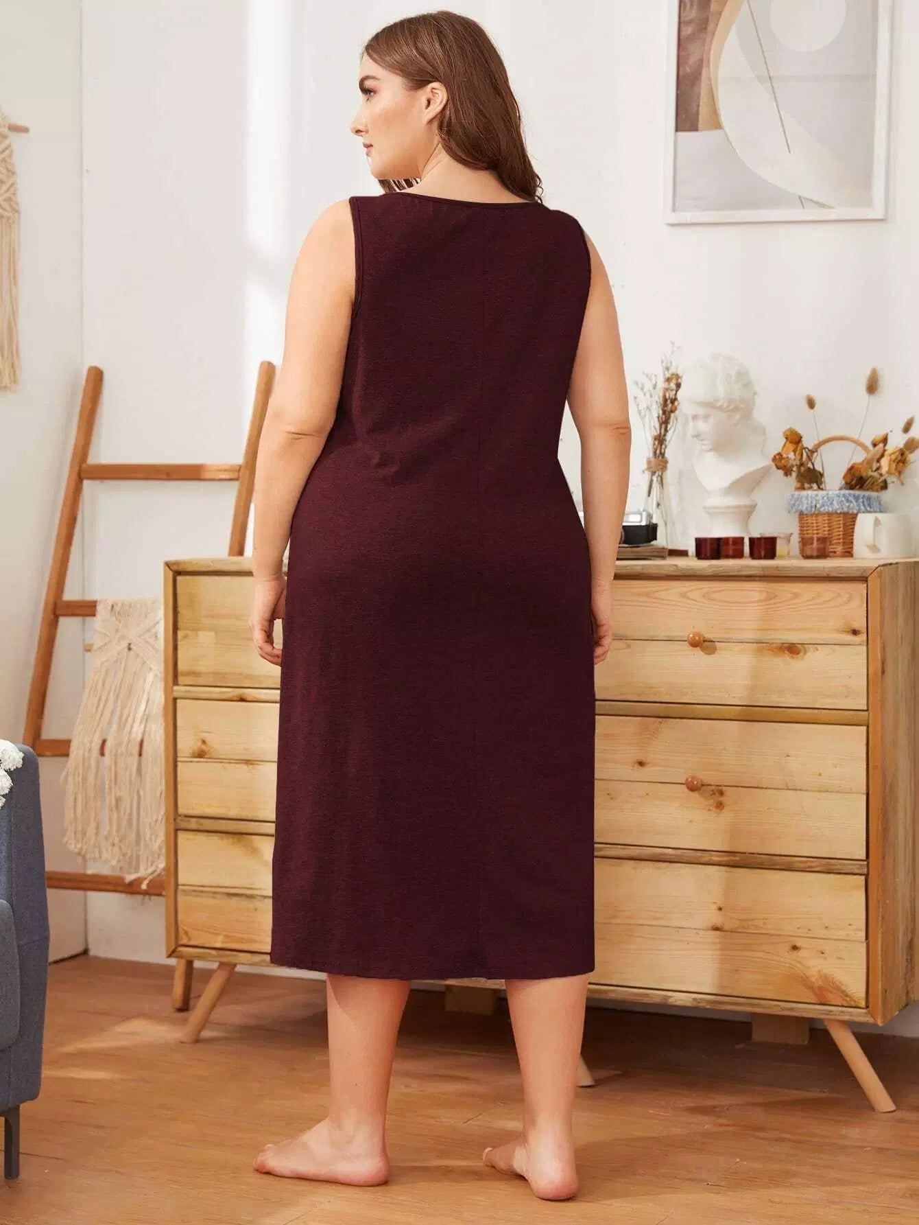 فستان نوم بدون أكمام برسومات بلا أكمام بلا أكمام