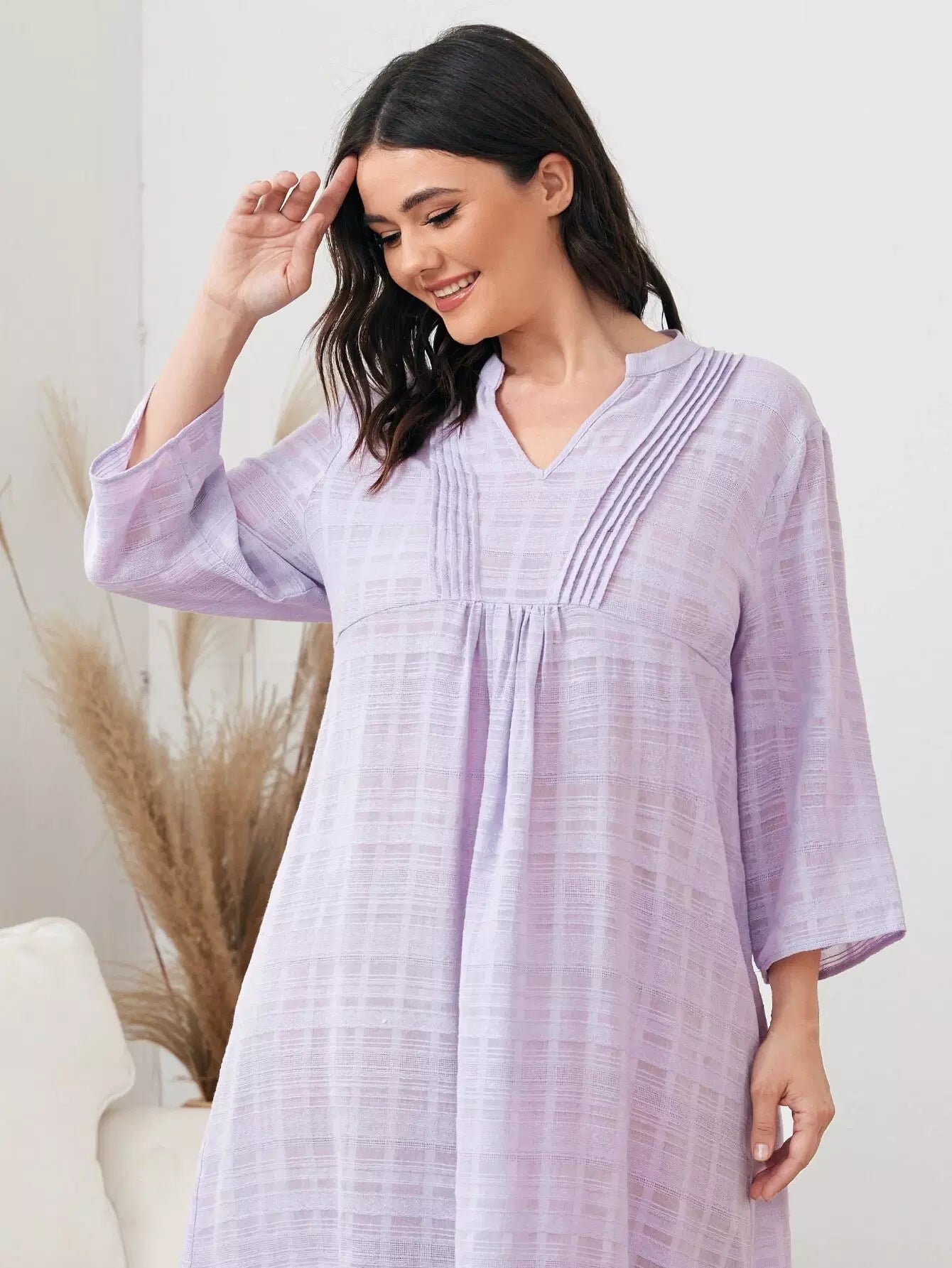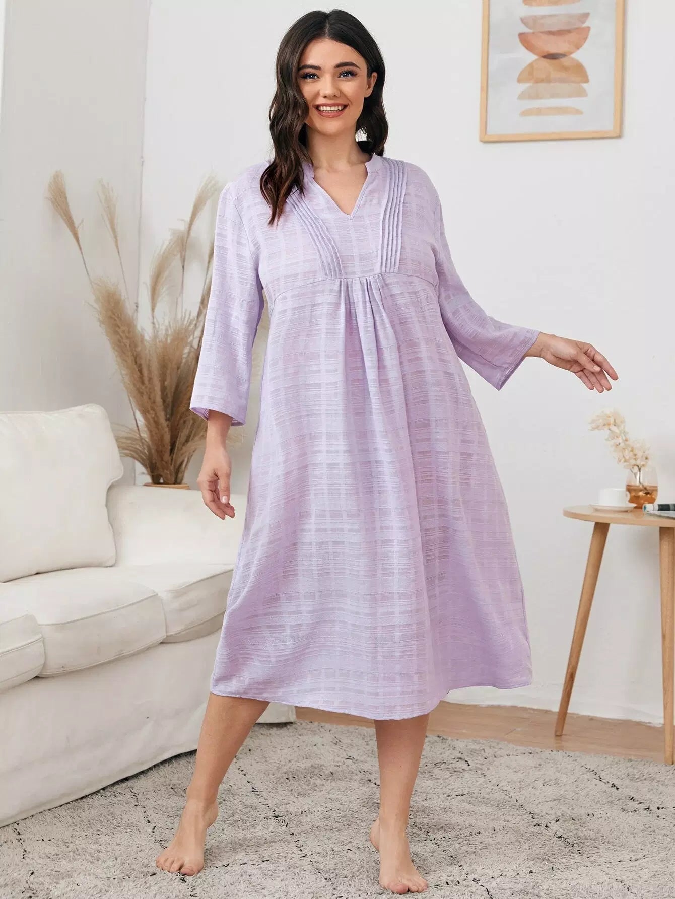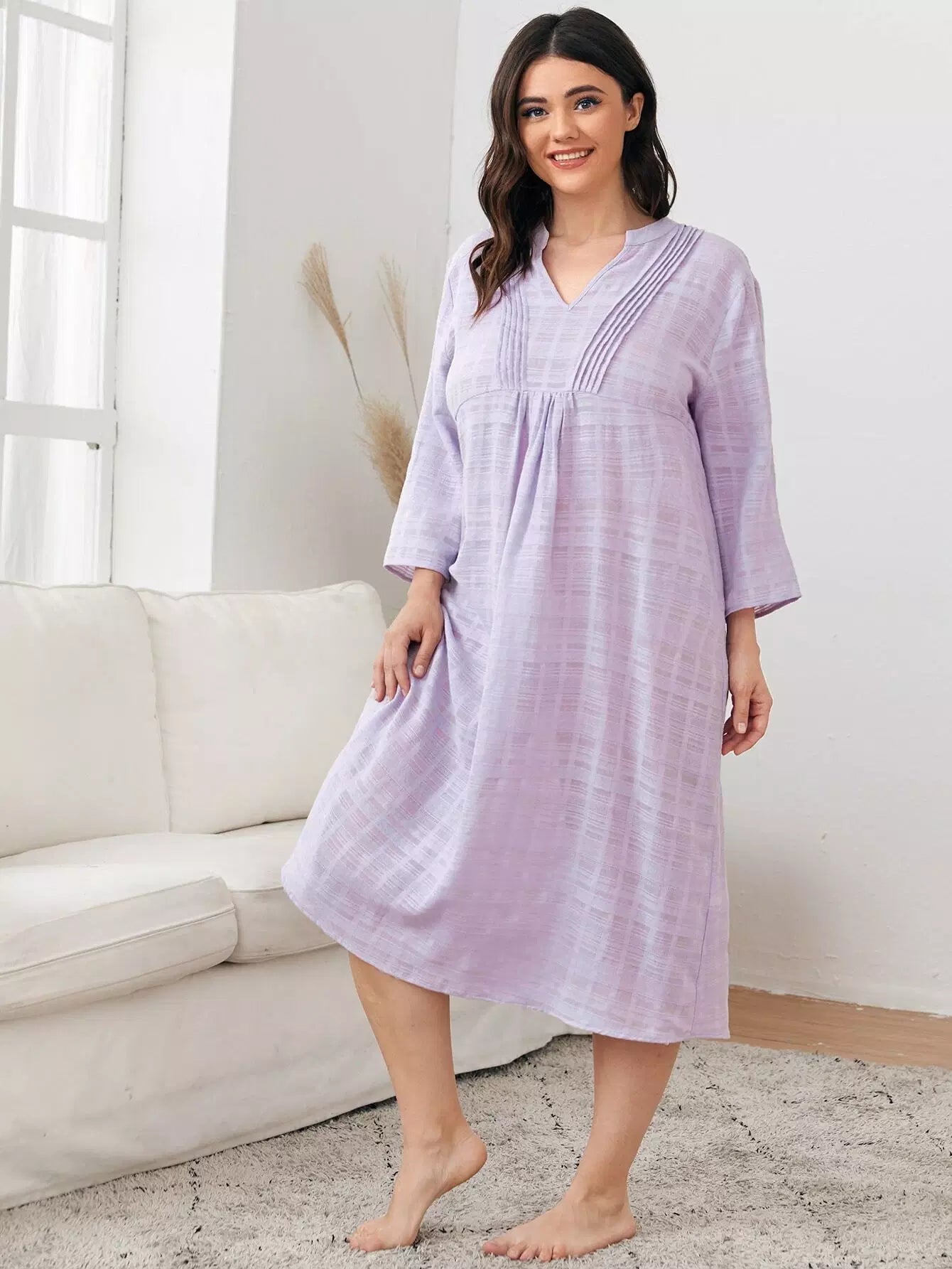 فستان نوم برقبة زائد بفتحة رقبة بليسه بتفاصيل زائدة