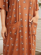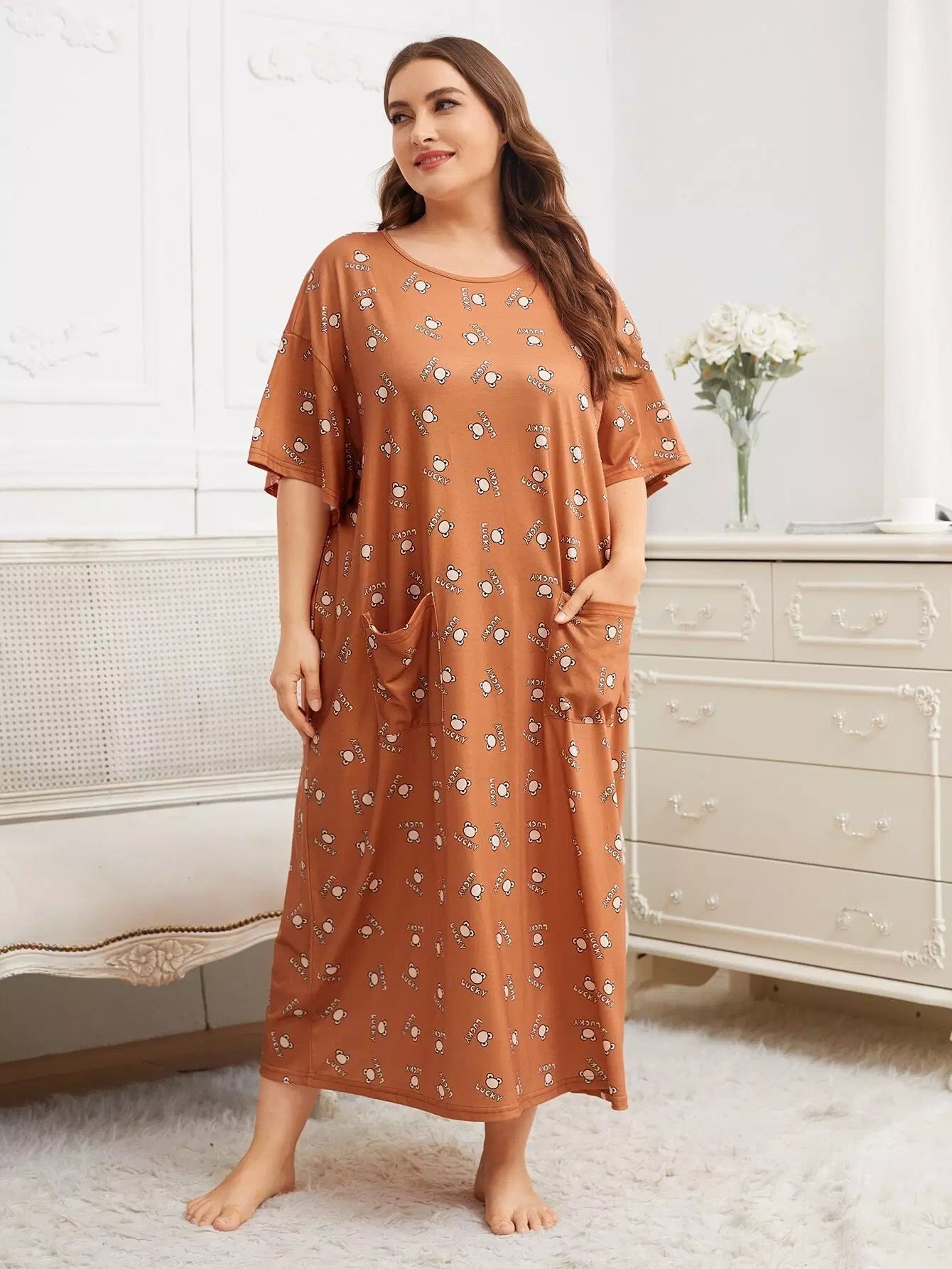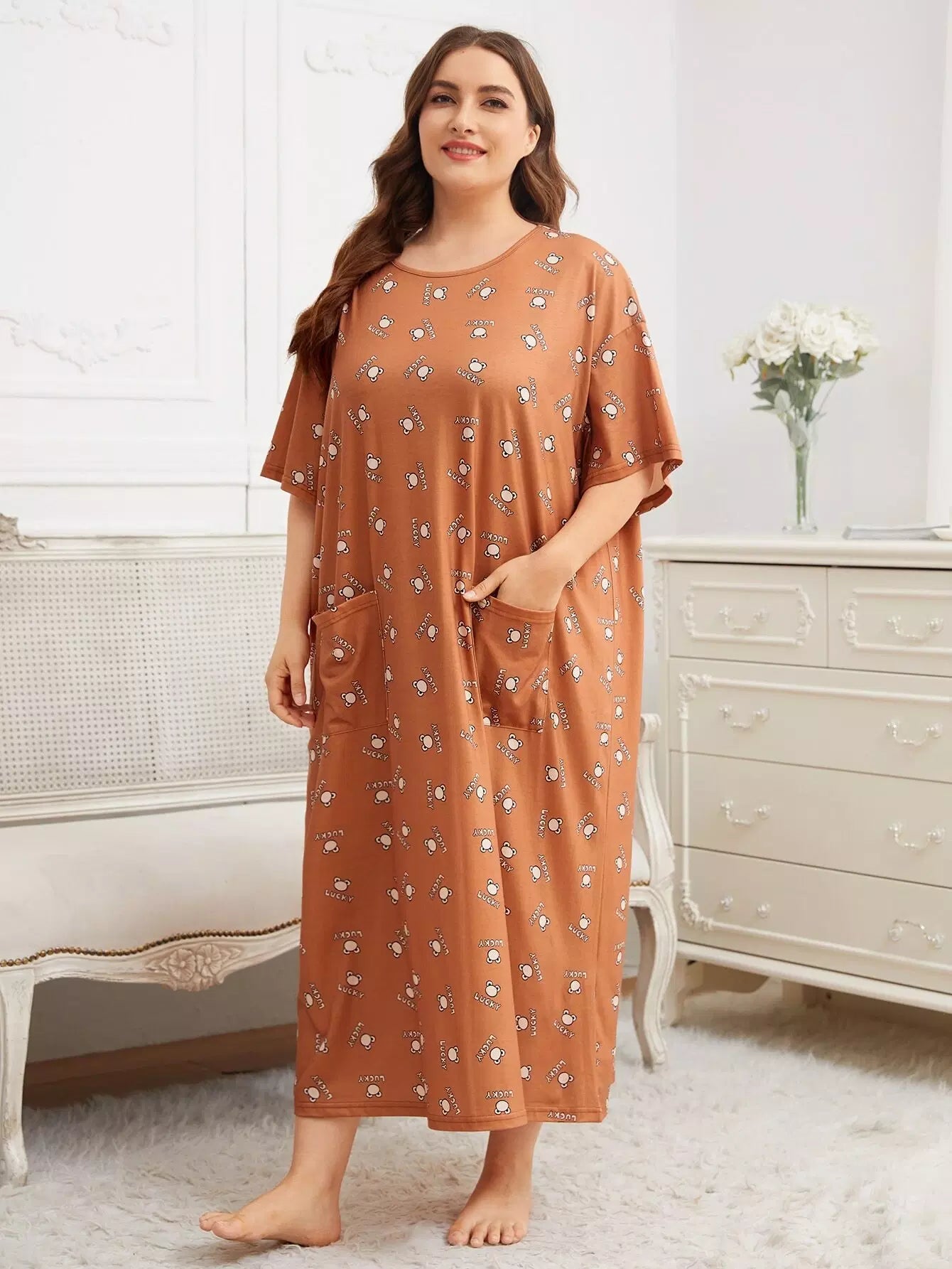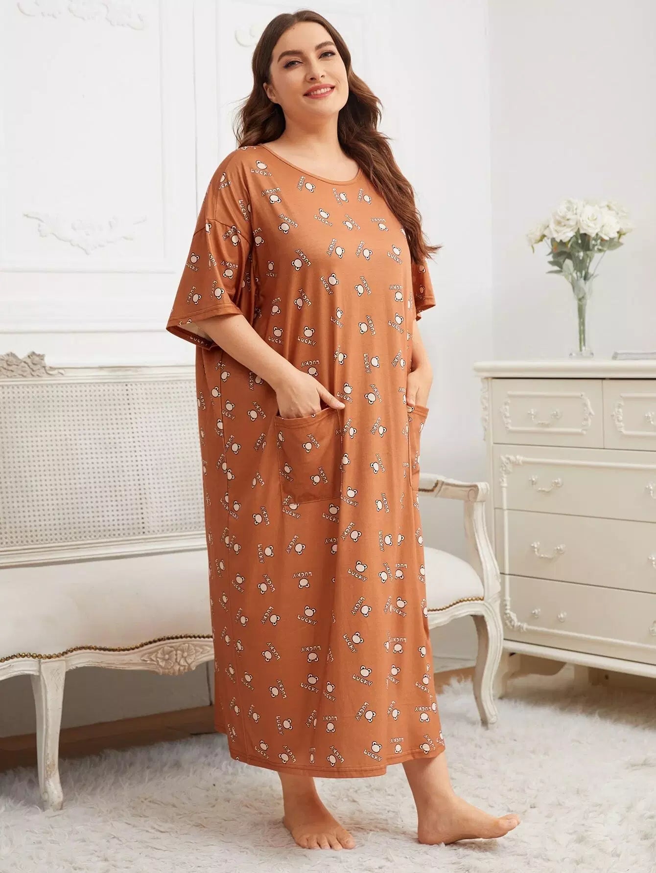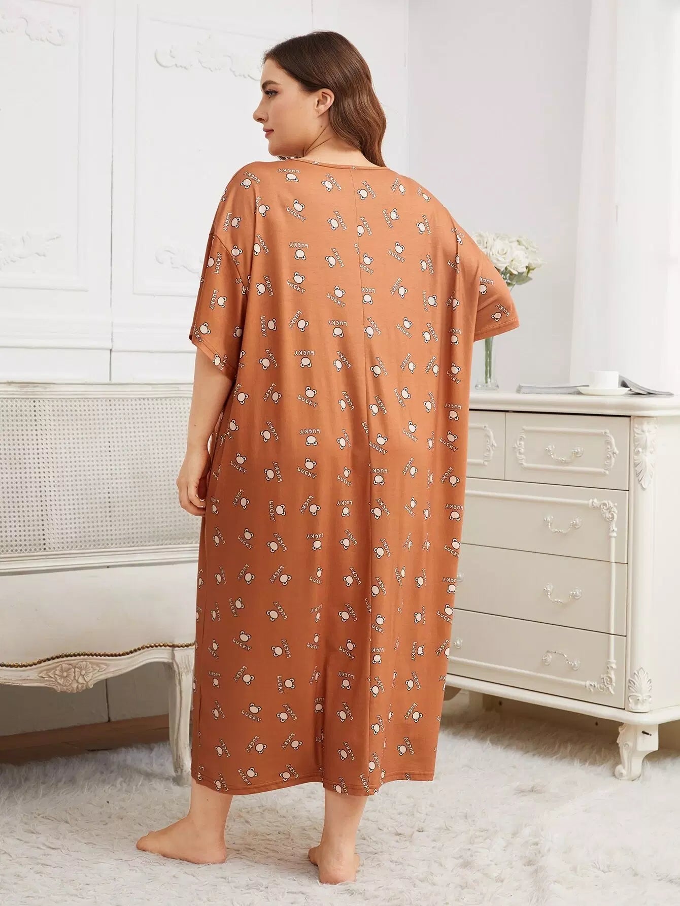 فستان نوم مزين بالكامل برسومات كرتونية ورسومات حروف زائد