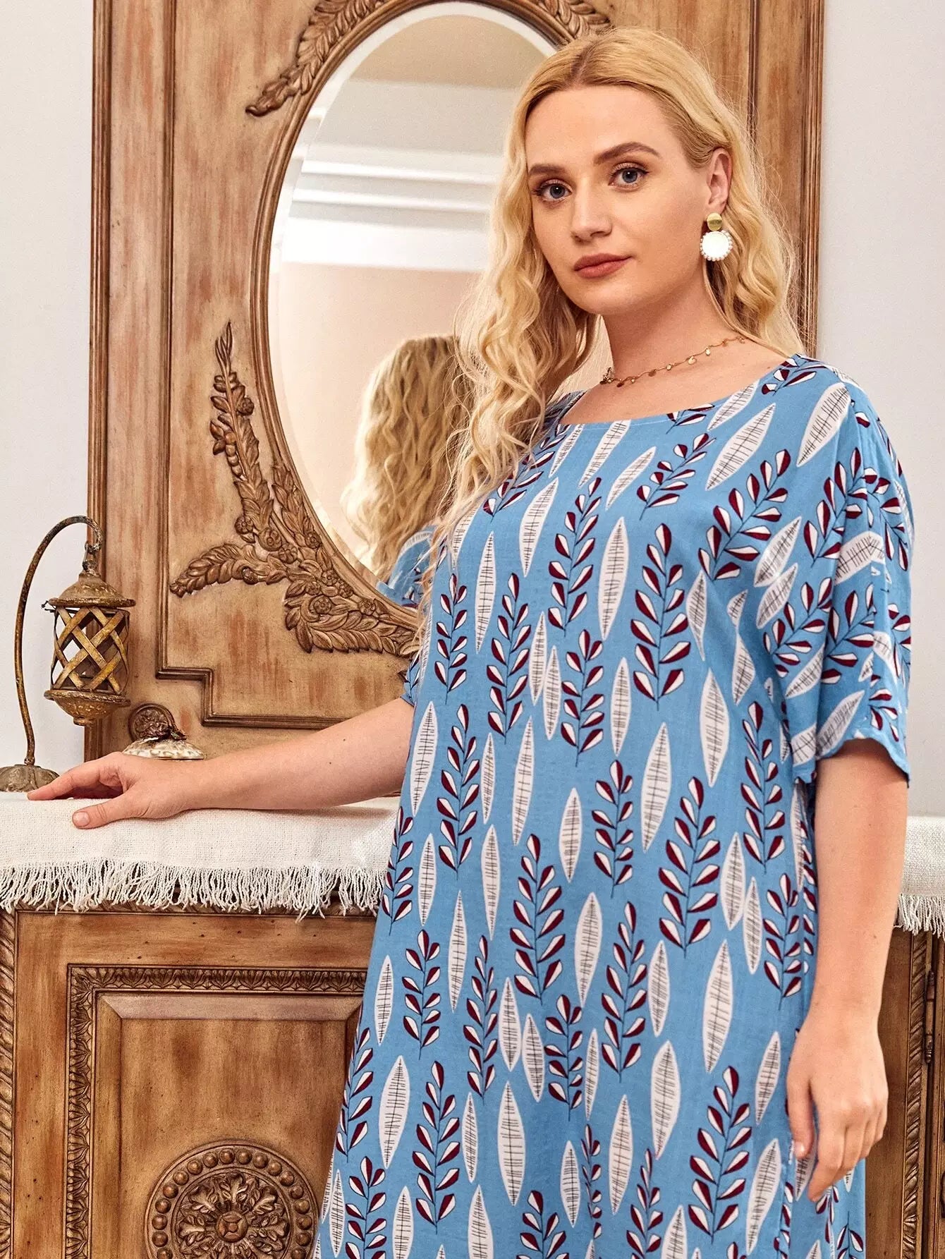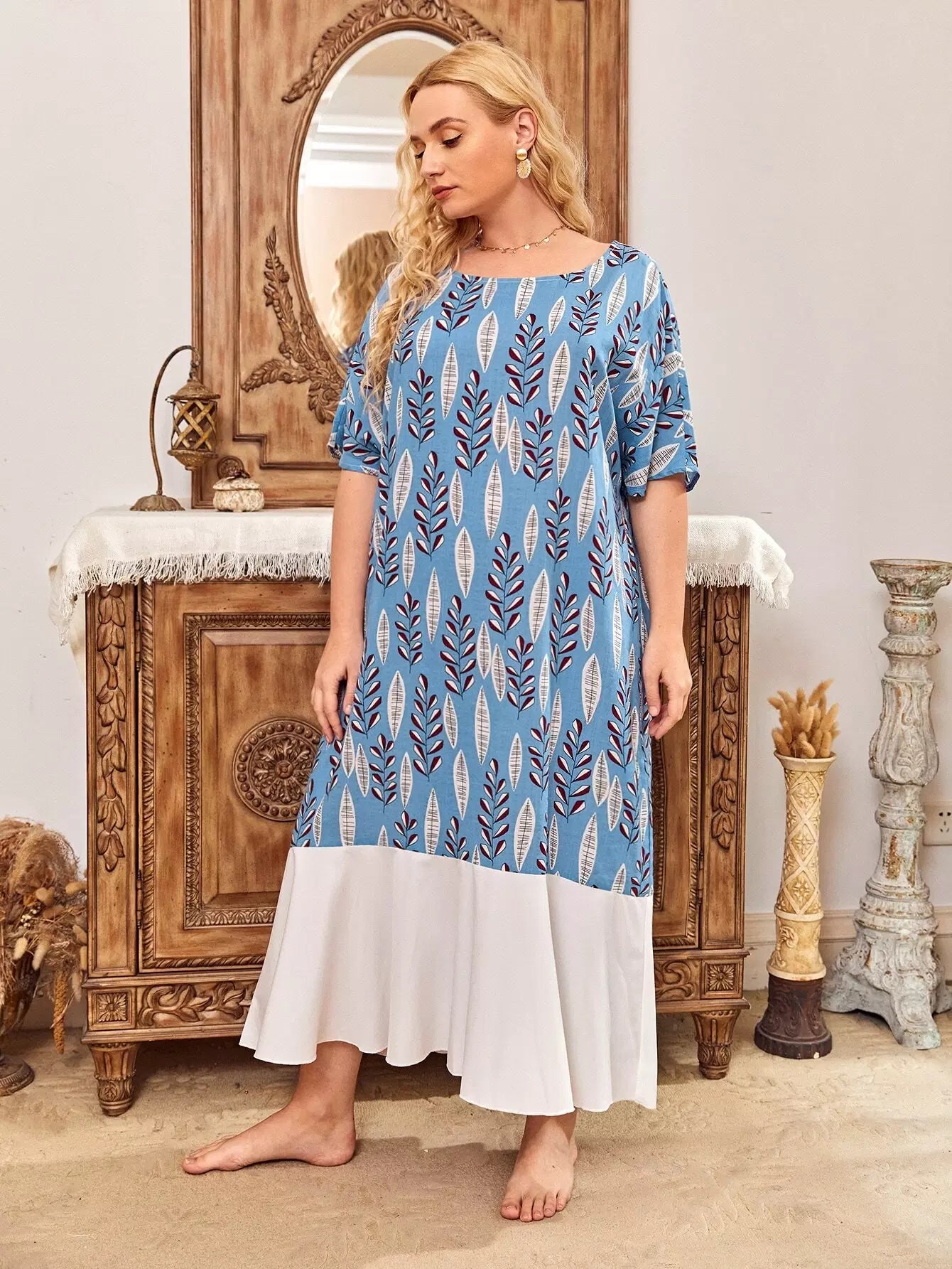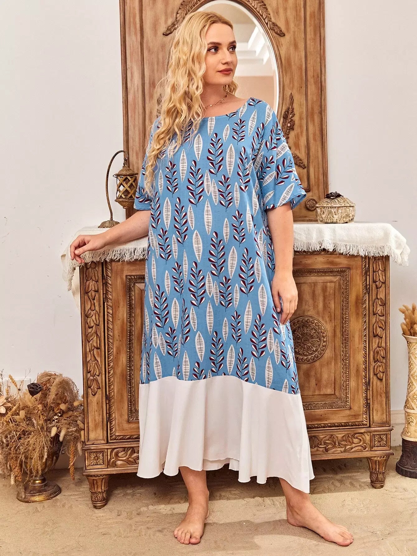 فستان ليلي بطبعة نباتات زائد كشكش بحافة مكشكشة
