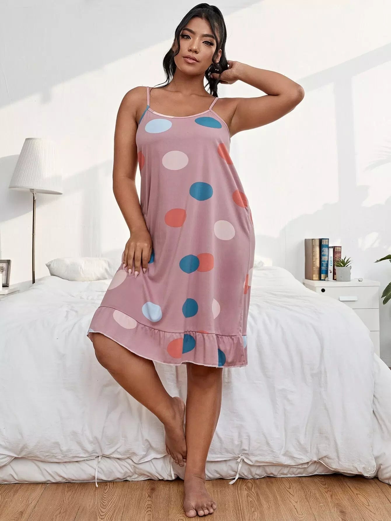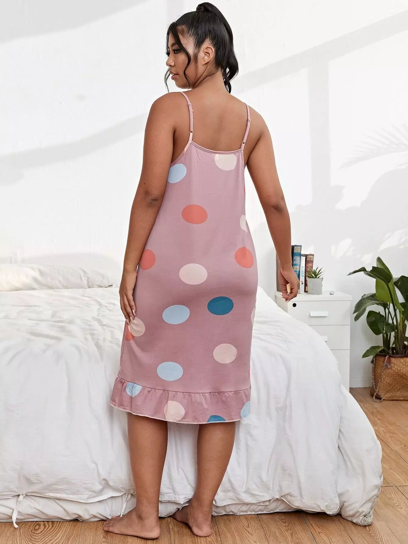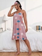فستان نوم كامي بحواف مكشكشة منقطة زائد وقناع للعينين