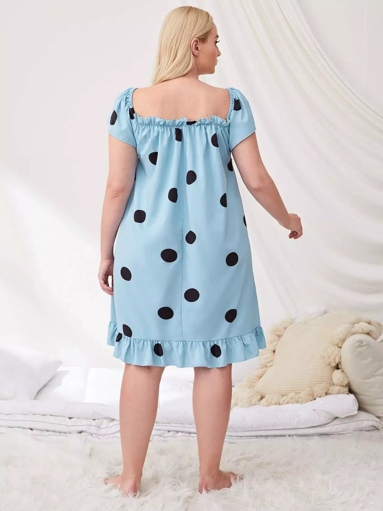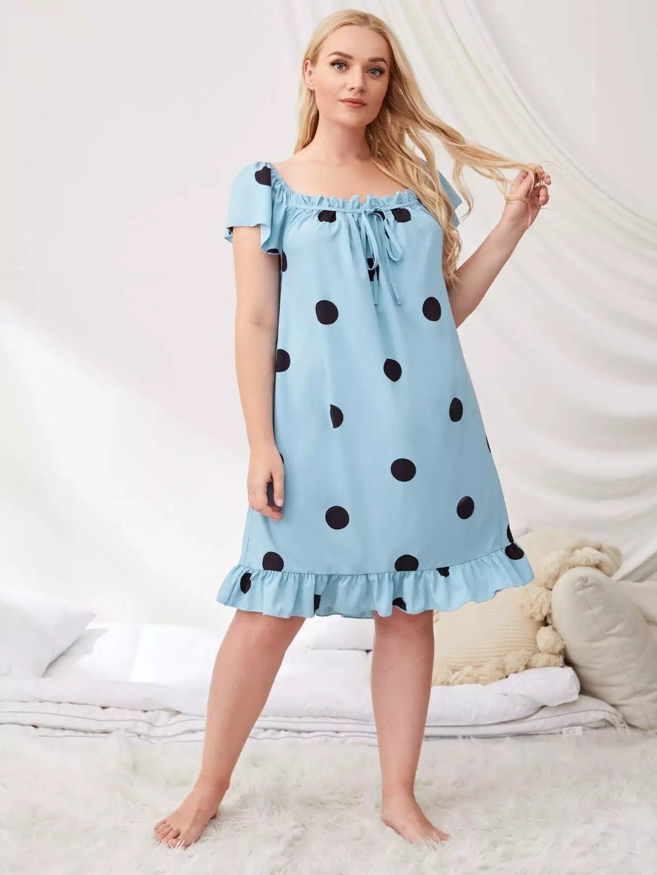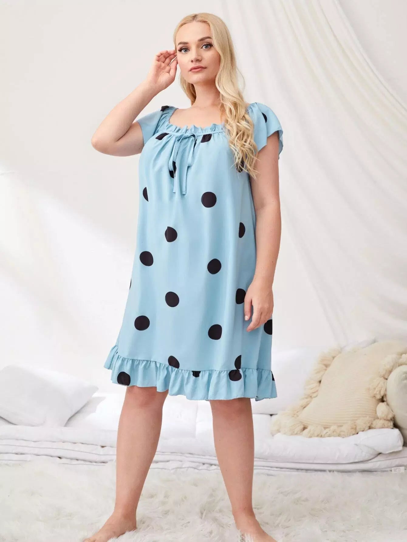 نحيف - مقاس كبير فستان نوم بحافة مكشكشة منقط