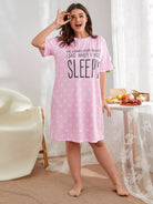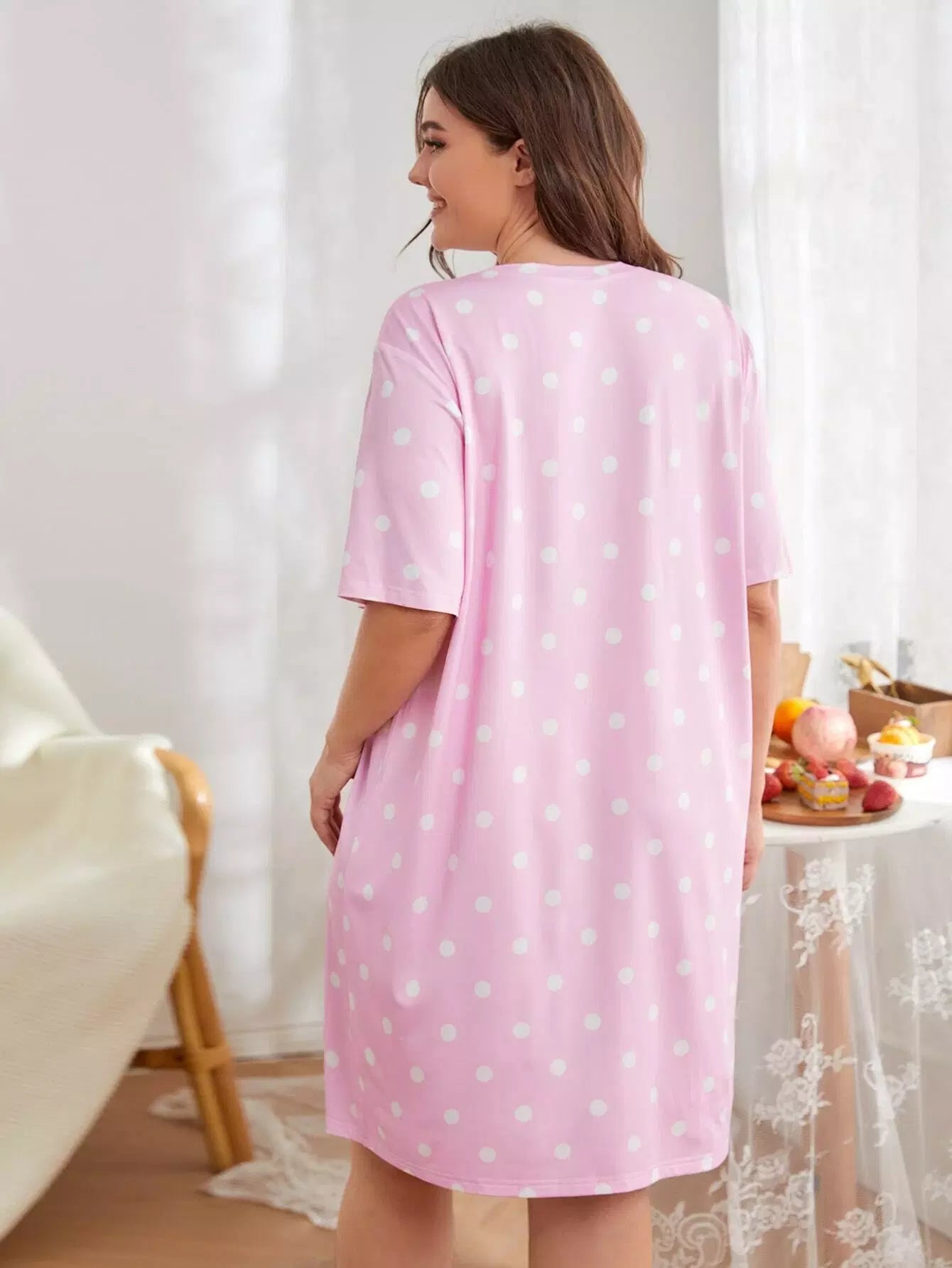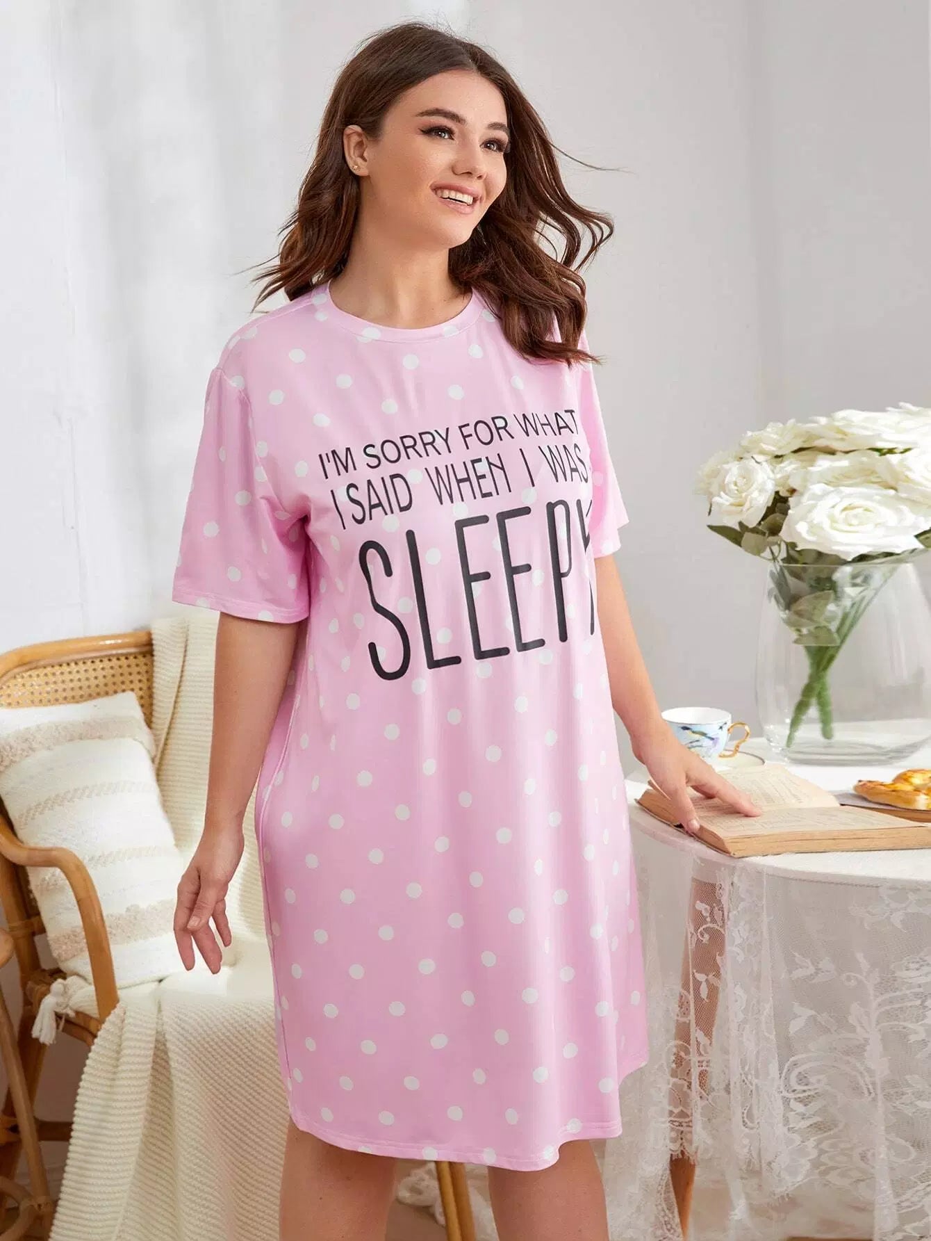 فستان نوم منقّط بنقوش وشعارات جرافيك زائد