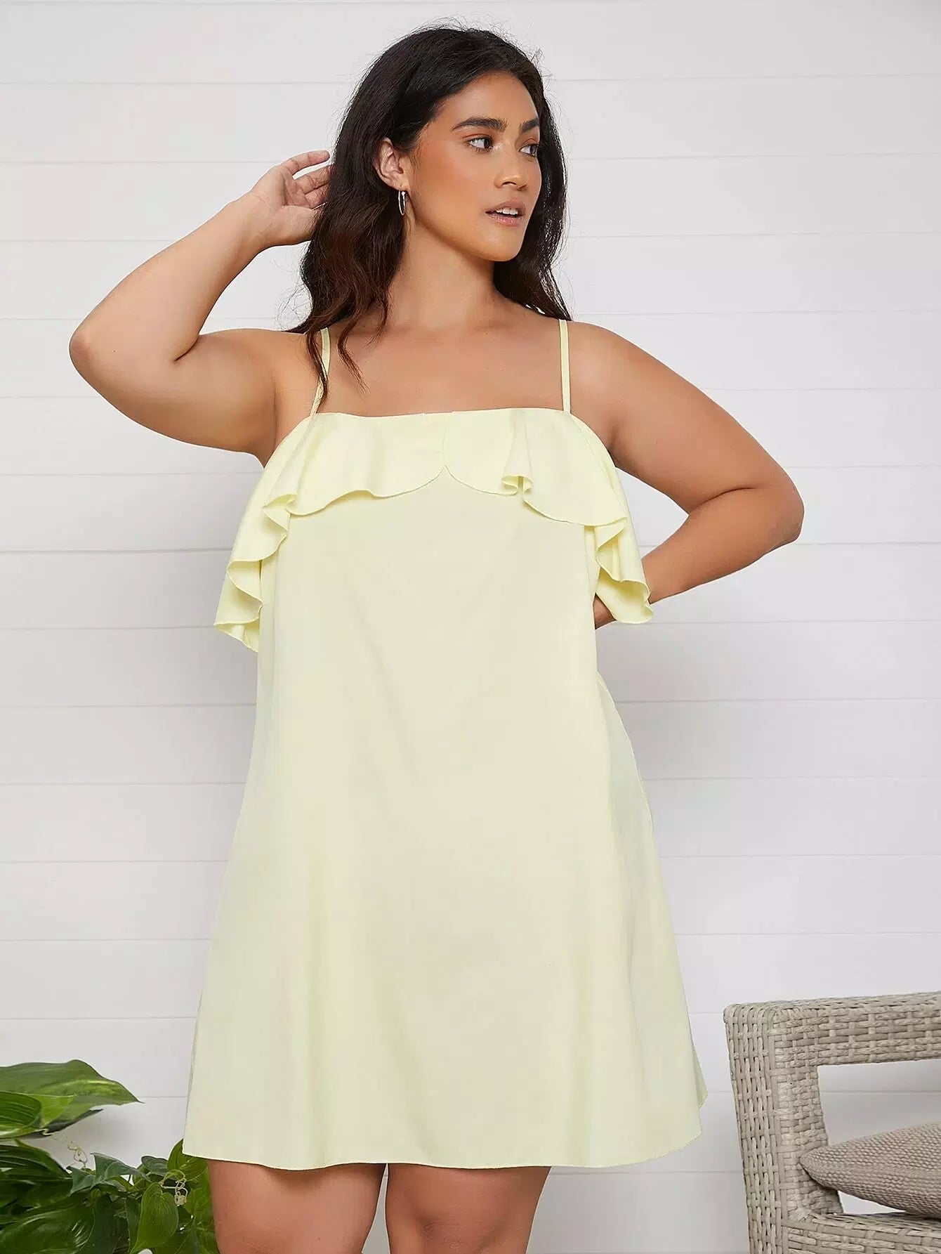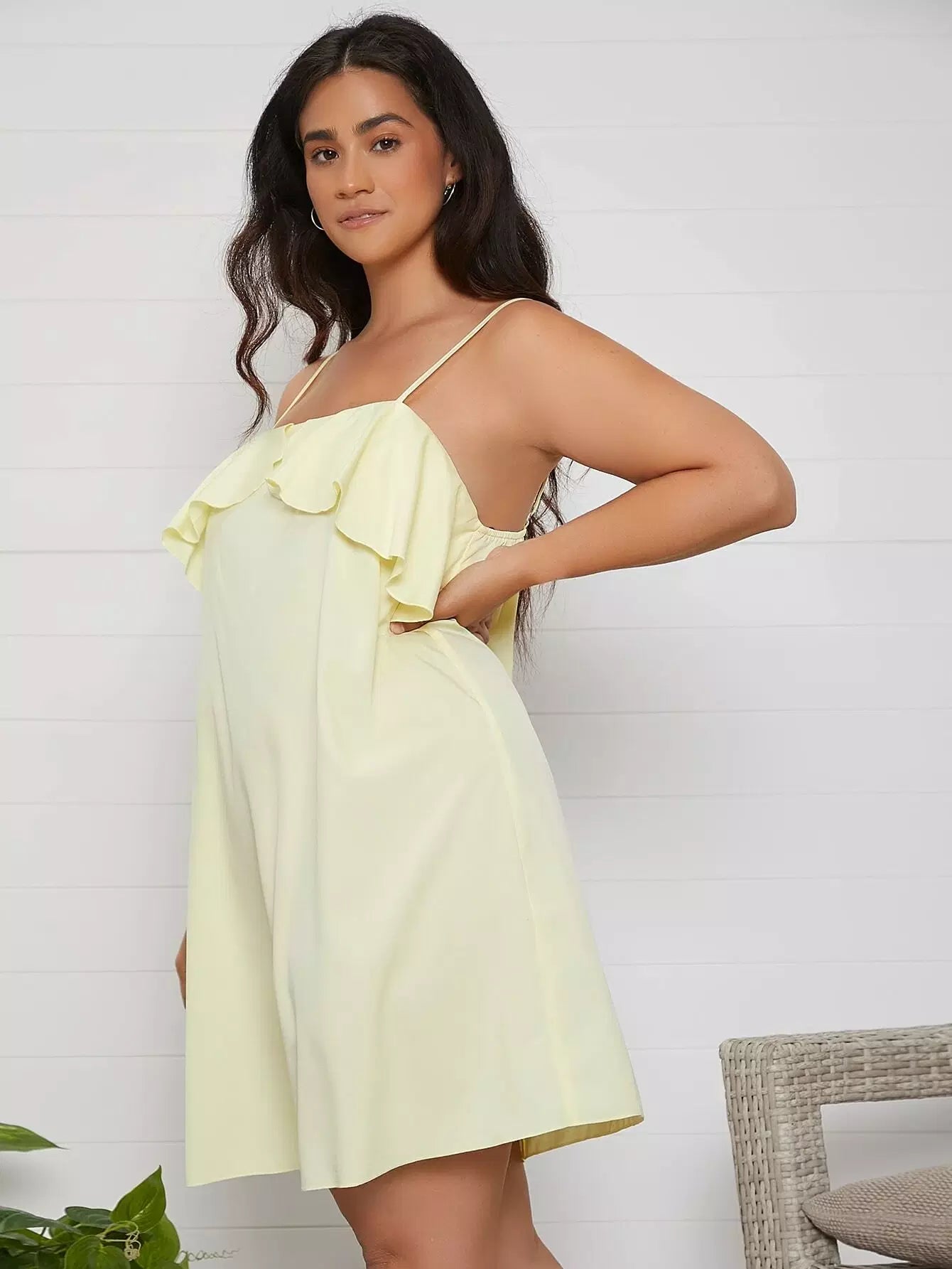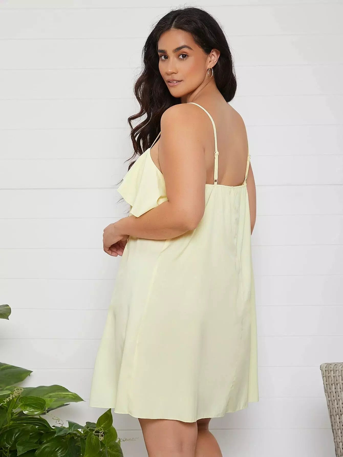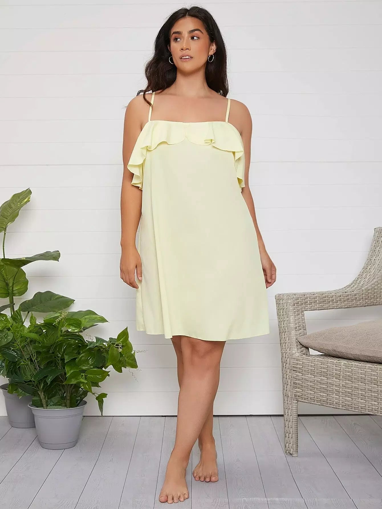 فستان نوم بحواف مكشكشة سادة مكشكشة زائدة