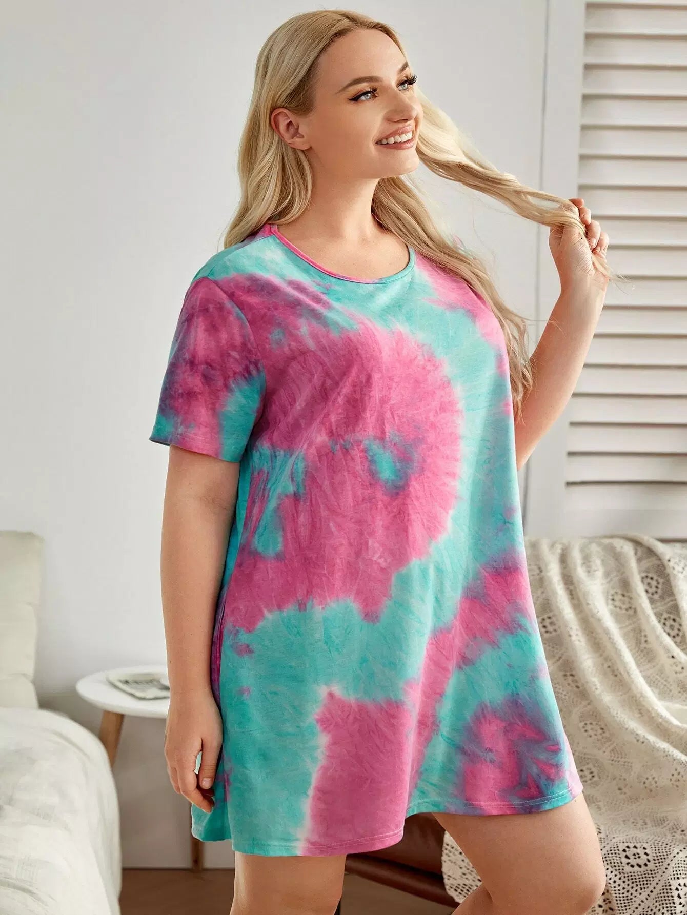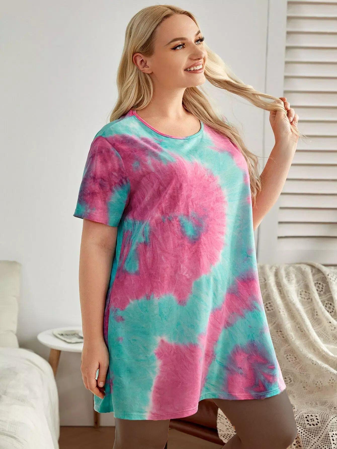 فستان ليلي مطبوع بصبغة زائد زائد