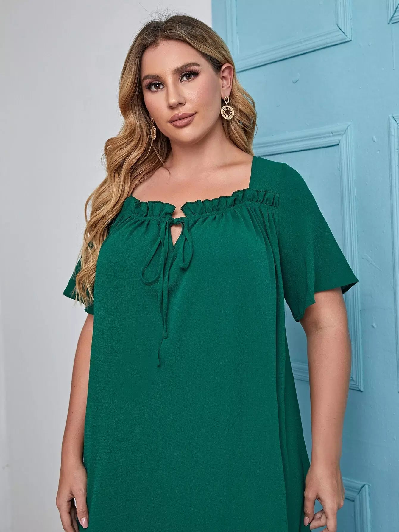 فستان نوم مزين برباط أمامي مزين بكشكش أمامي بلس