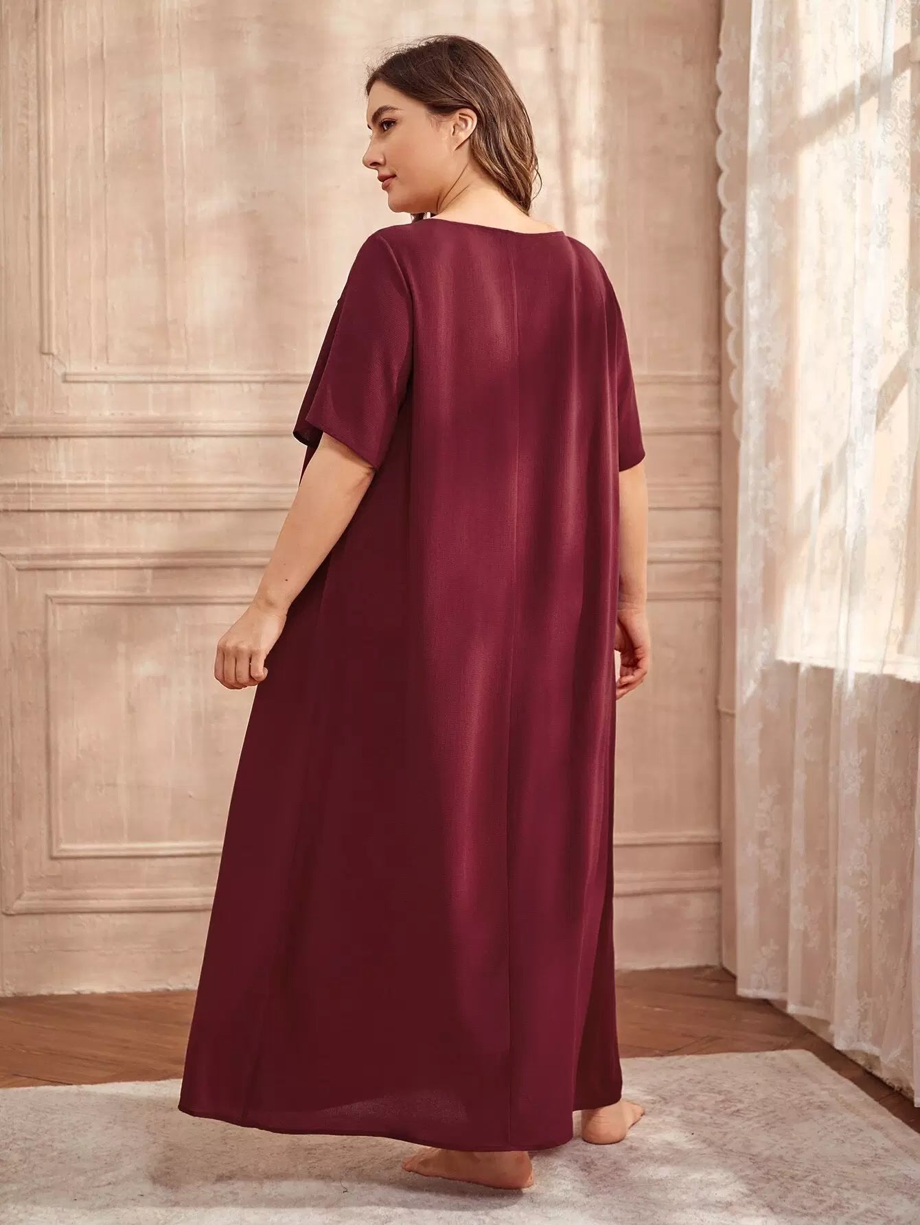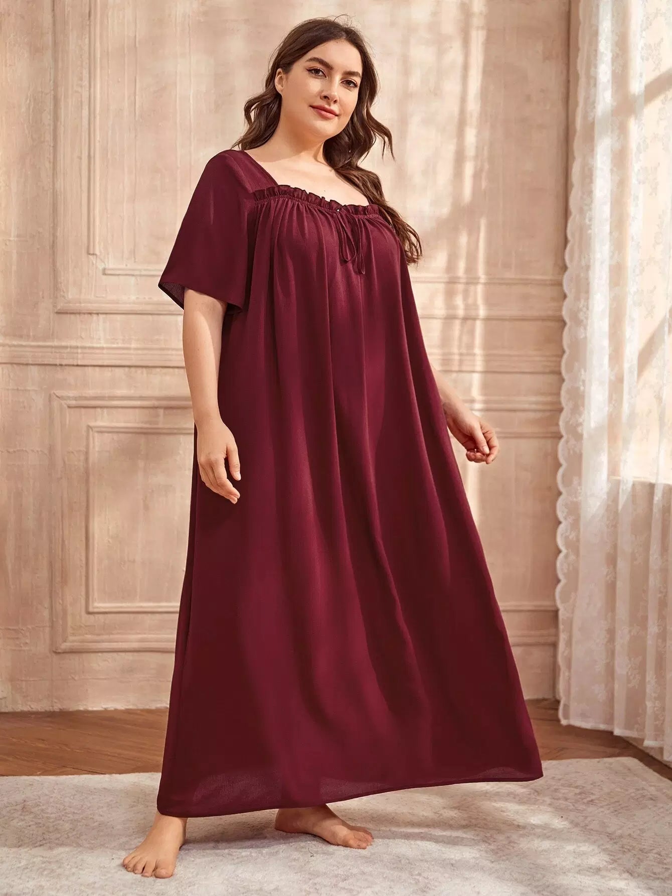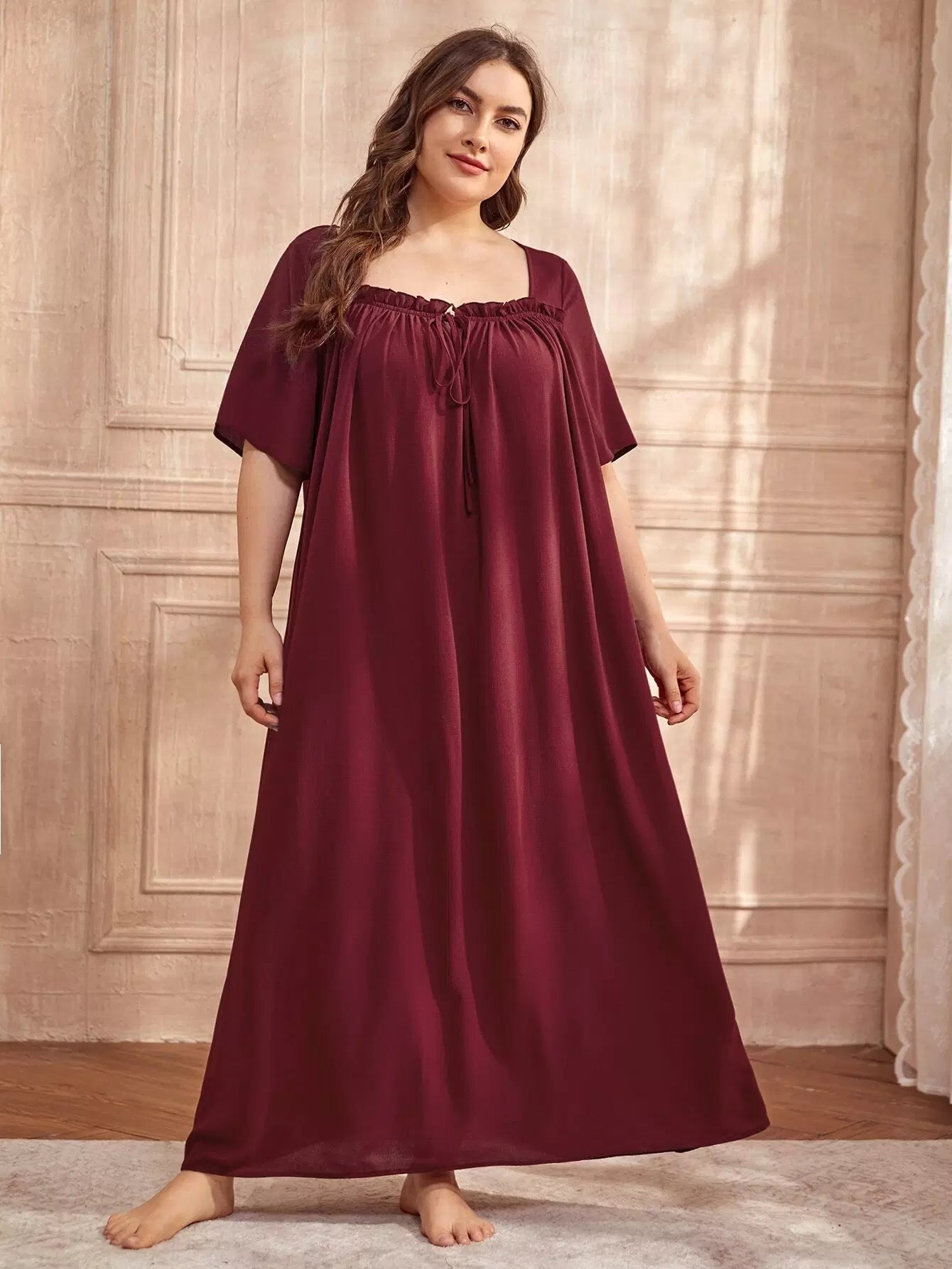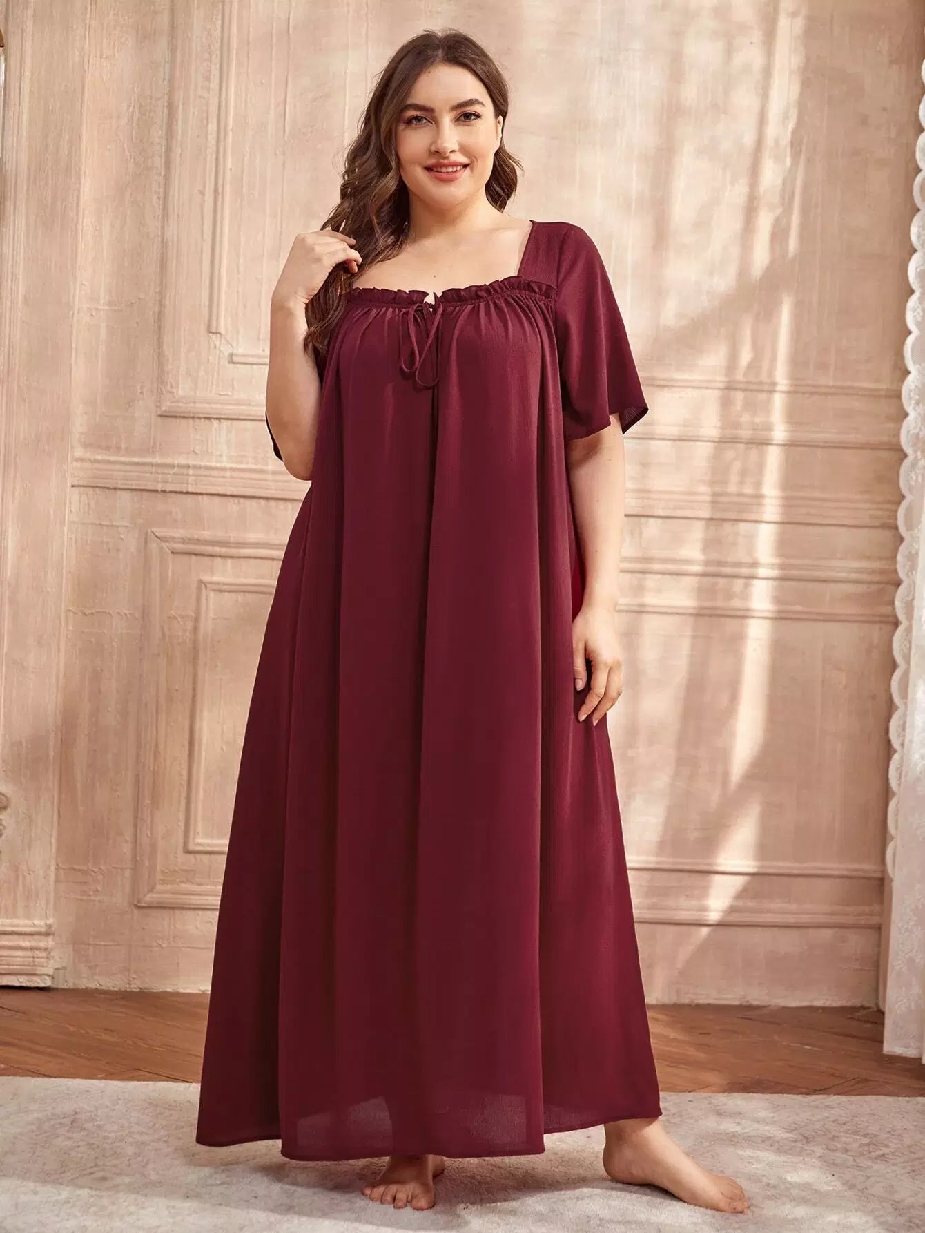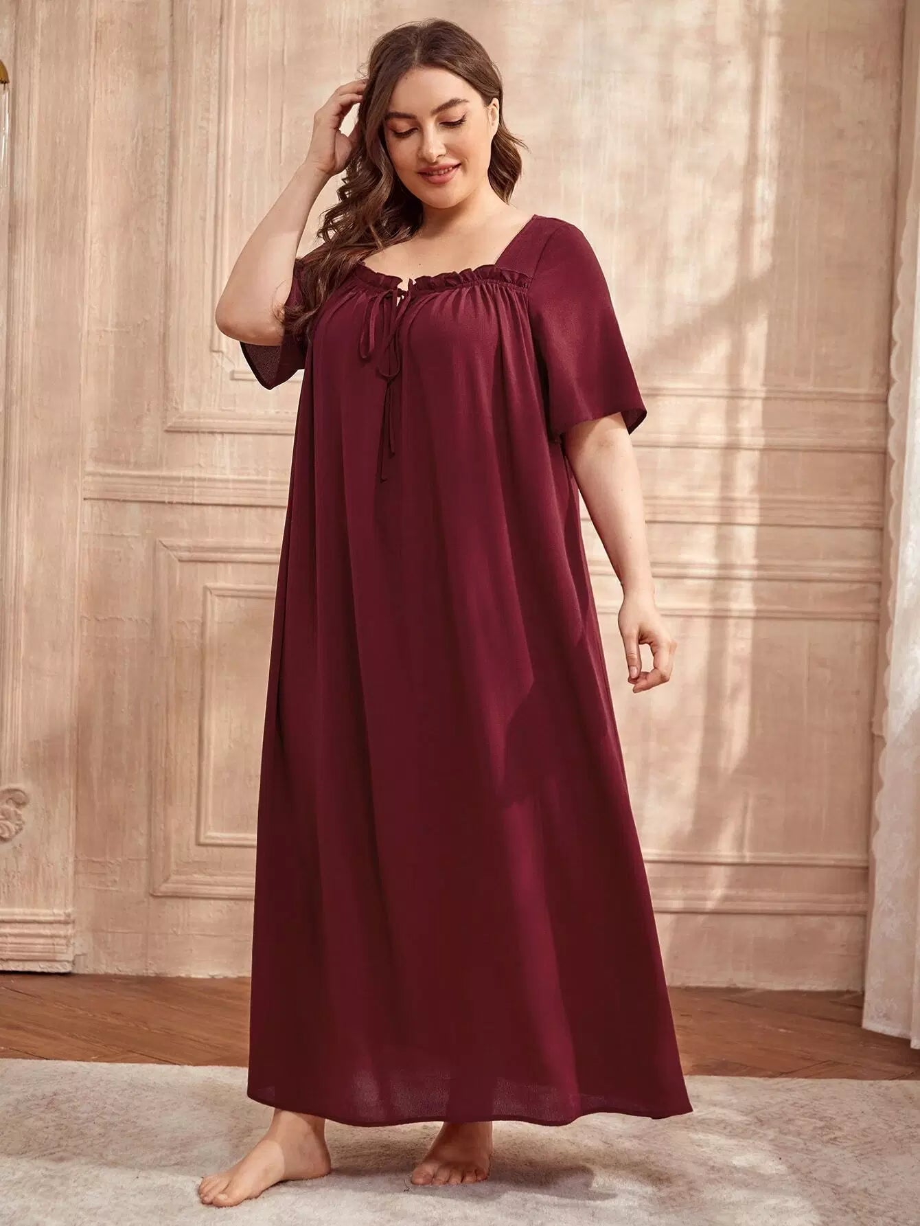 فستان نوم مزين برباط أمامي كشكش أمامي زائد