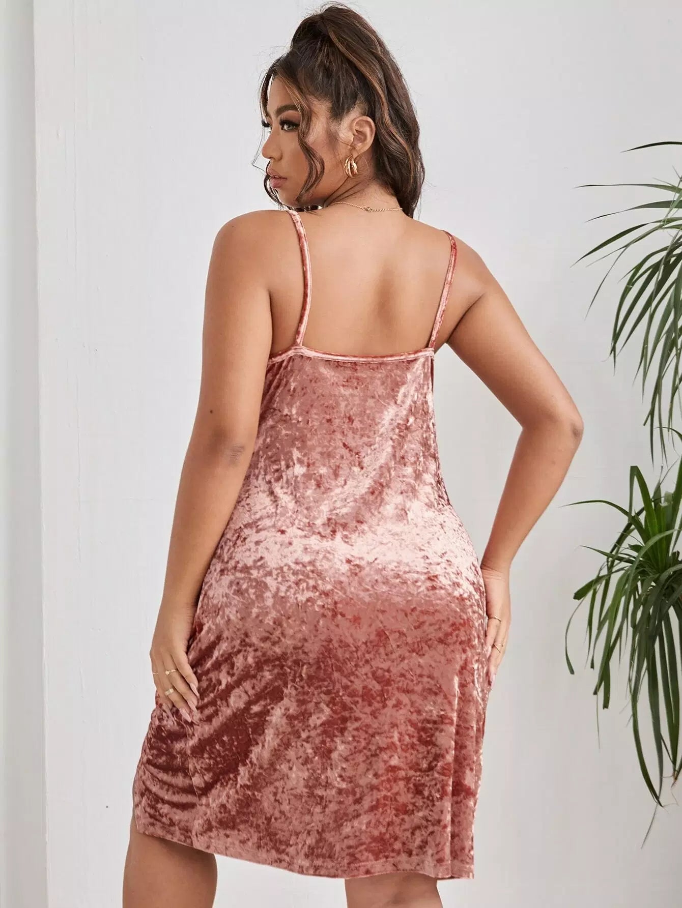 نحيف - مقاس كبير فستان نوم كامي بحاشية ملفوفة من المخمل