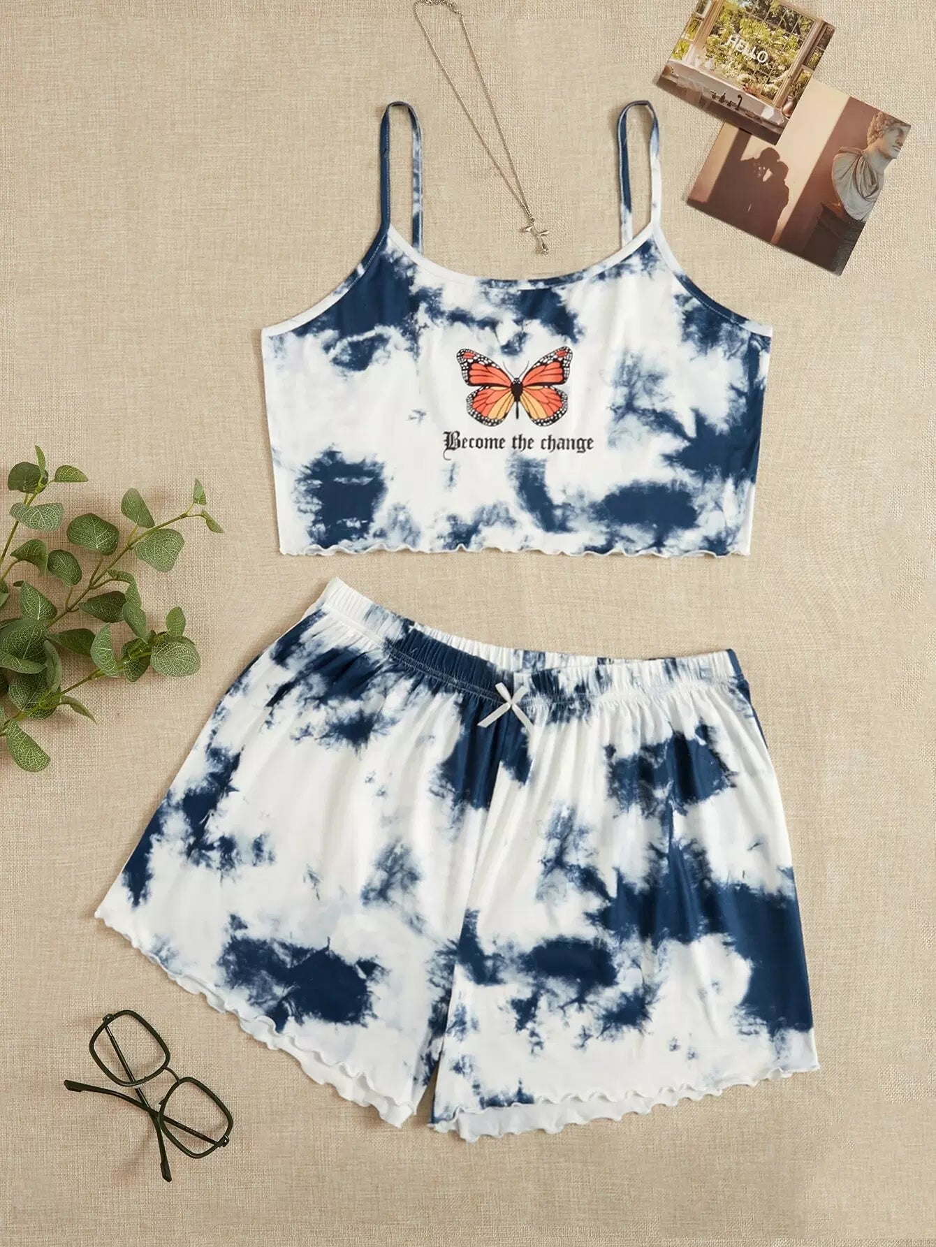 طقم بيجامة بطبعة فراشات زائد بحواف خس