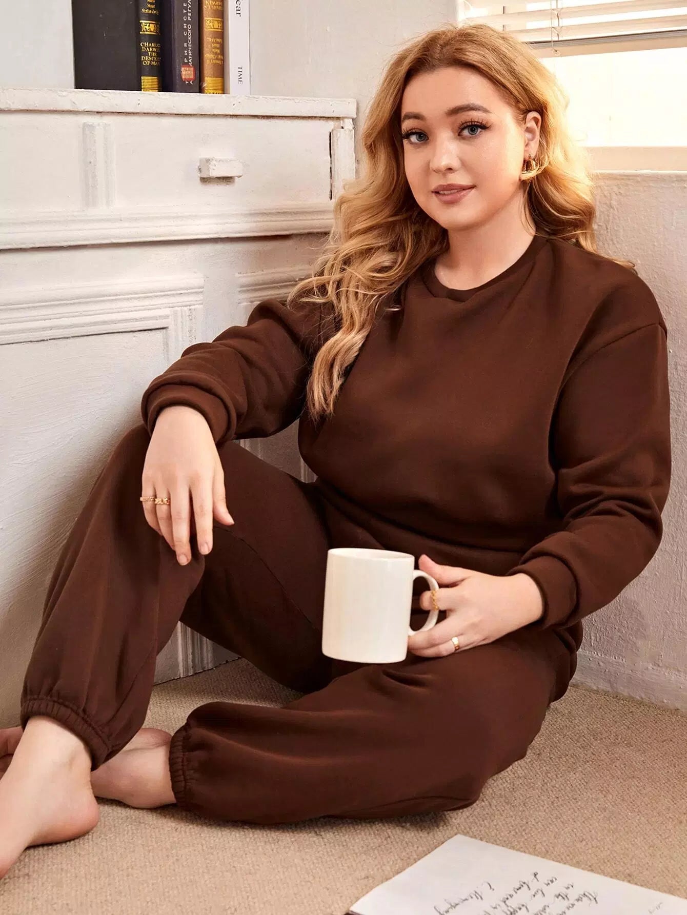 طقم بيجامة بدون أكتاف منسدلة زائد
