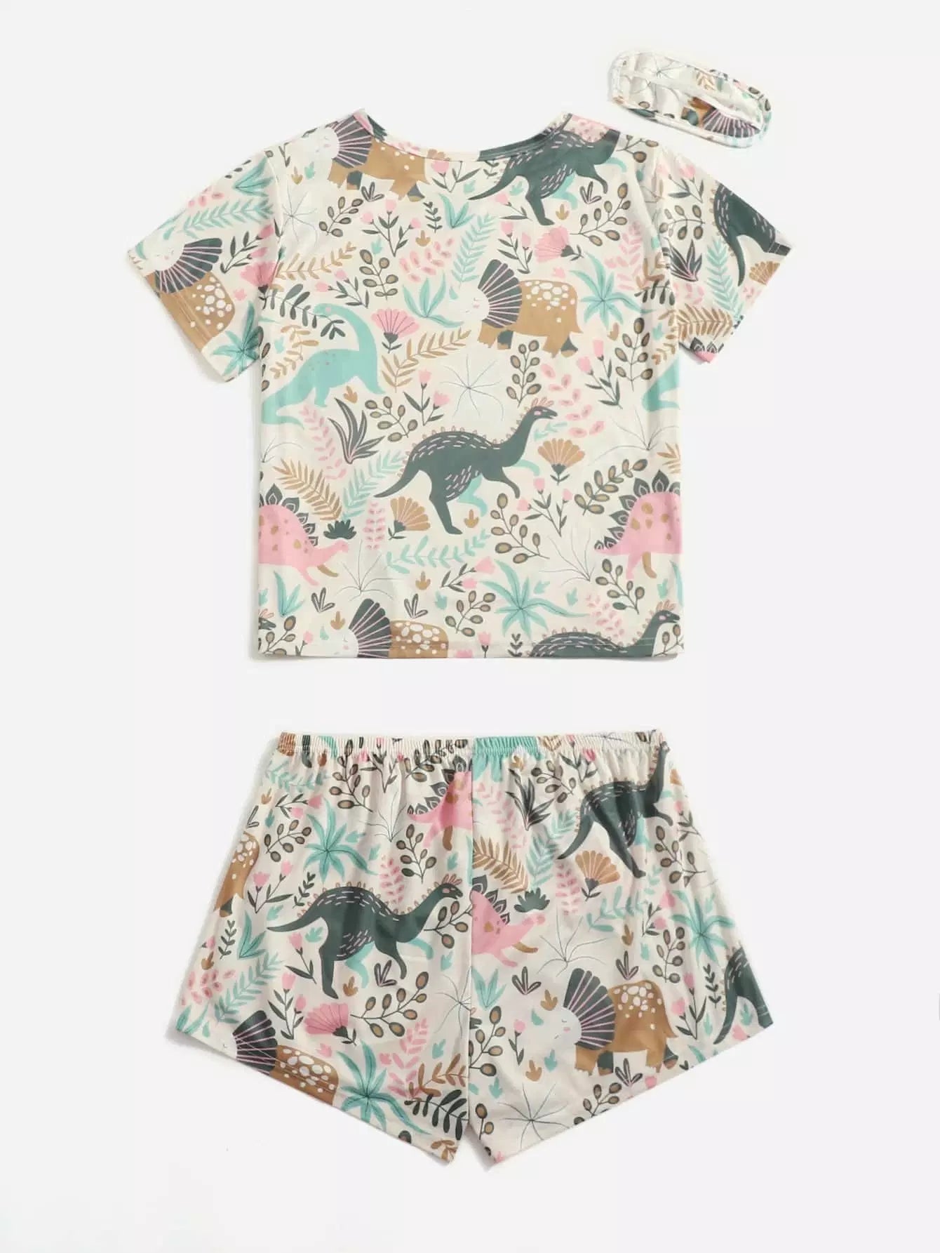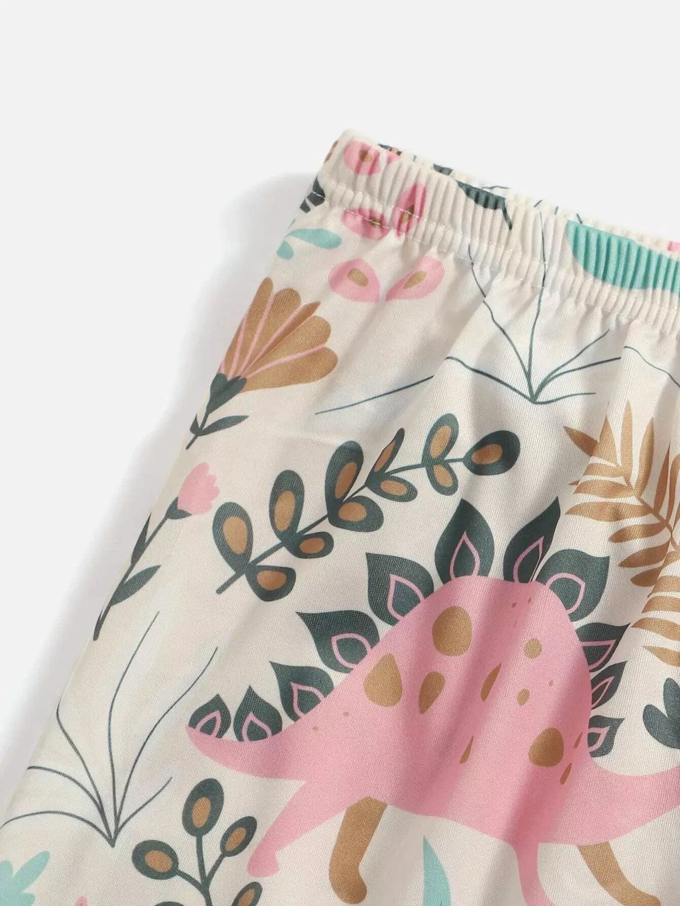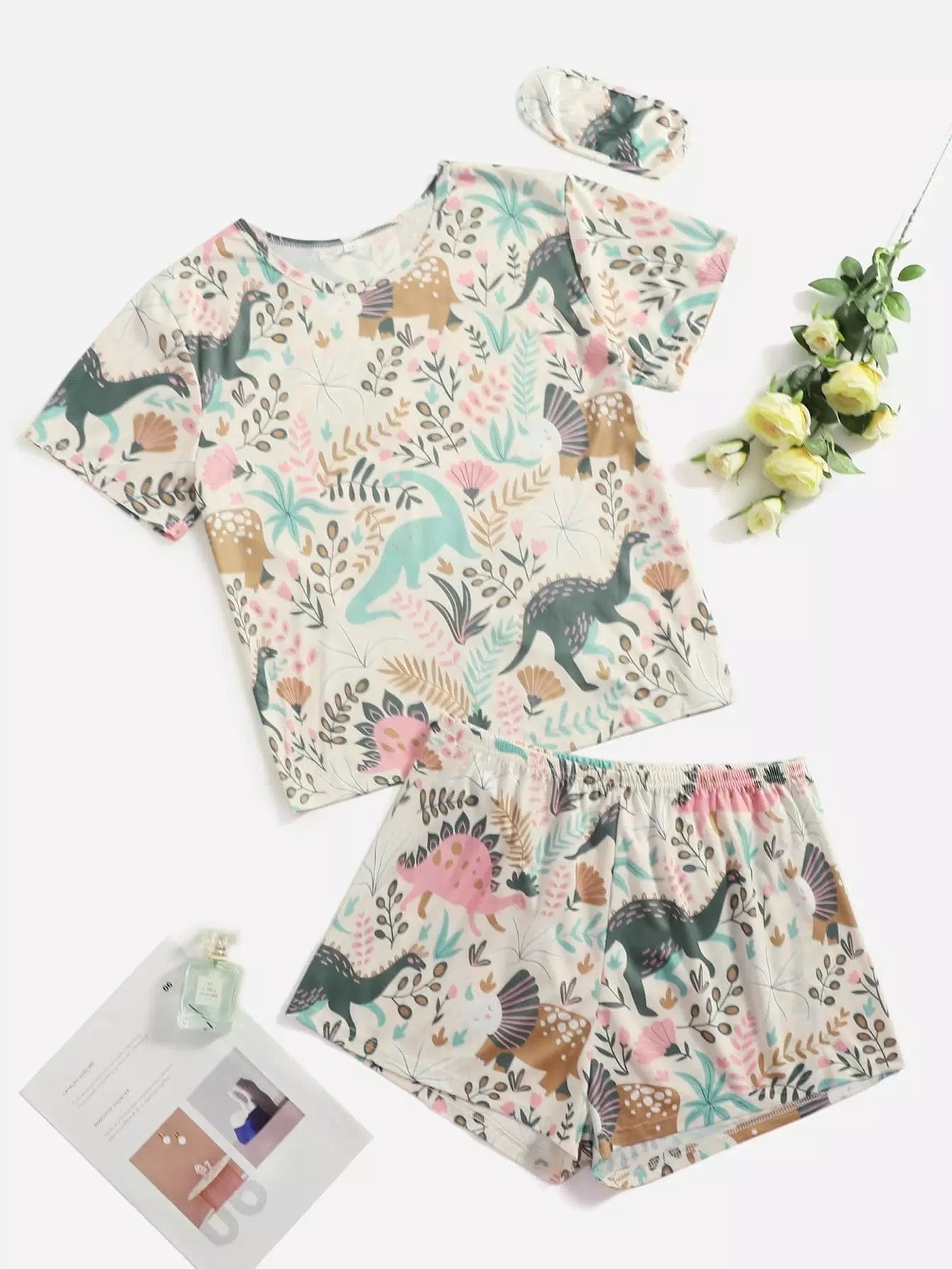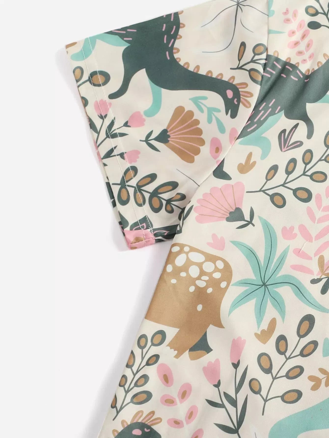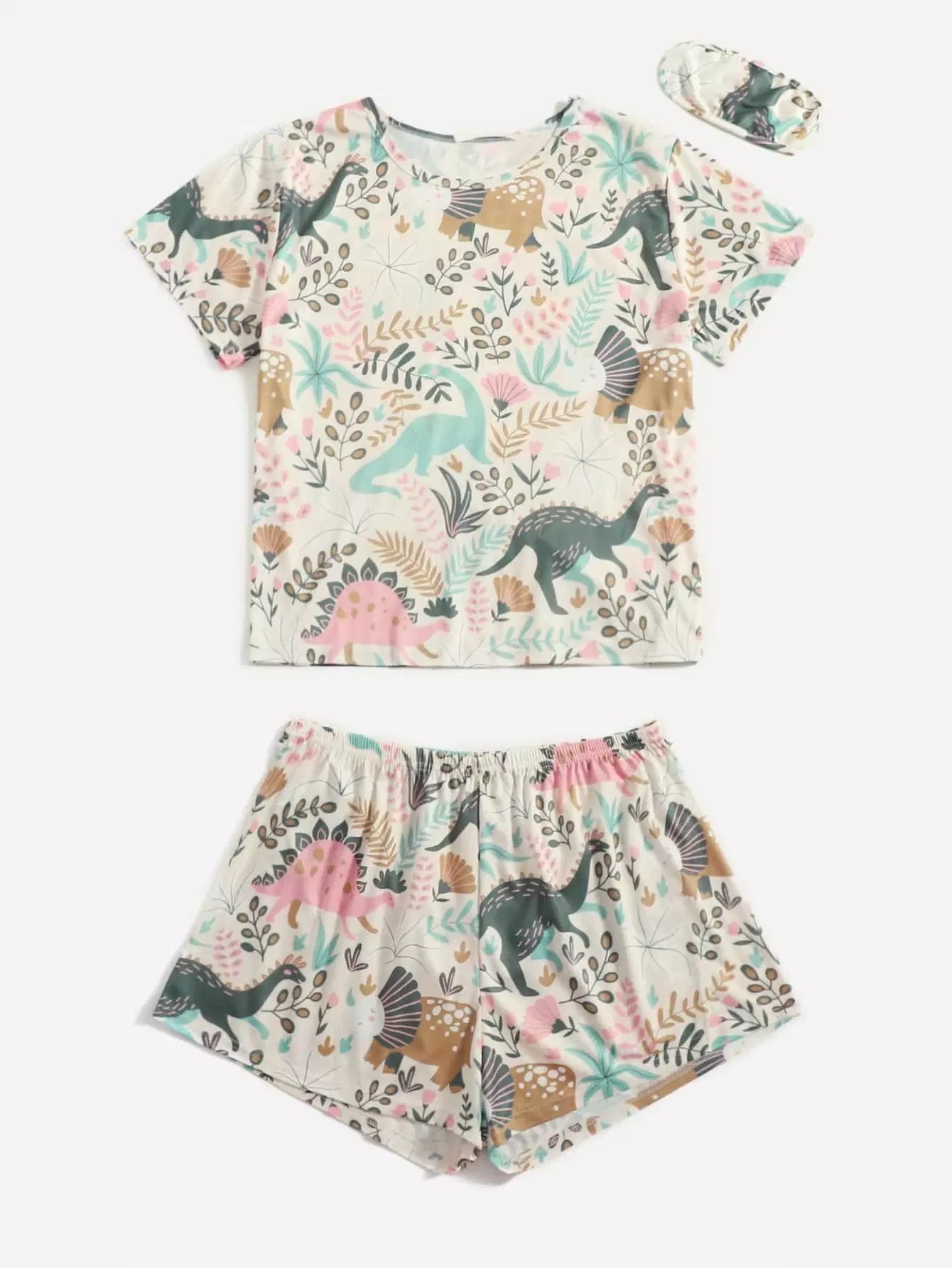 طقم بيجامة بطبعة نباتات وديناصور زائد
