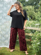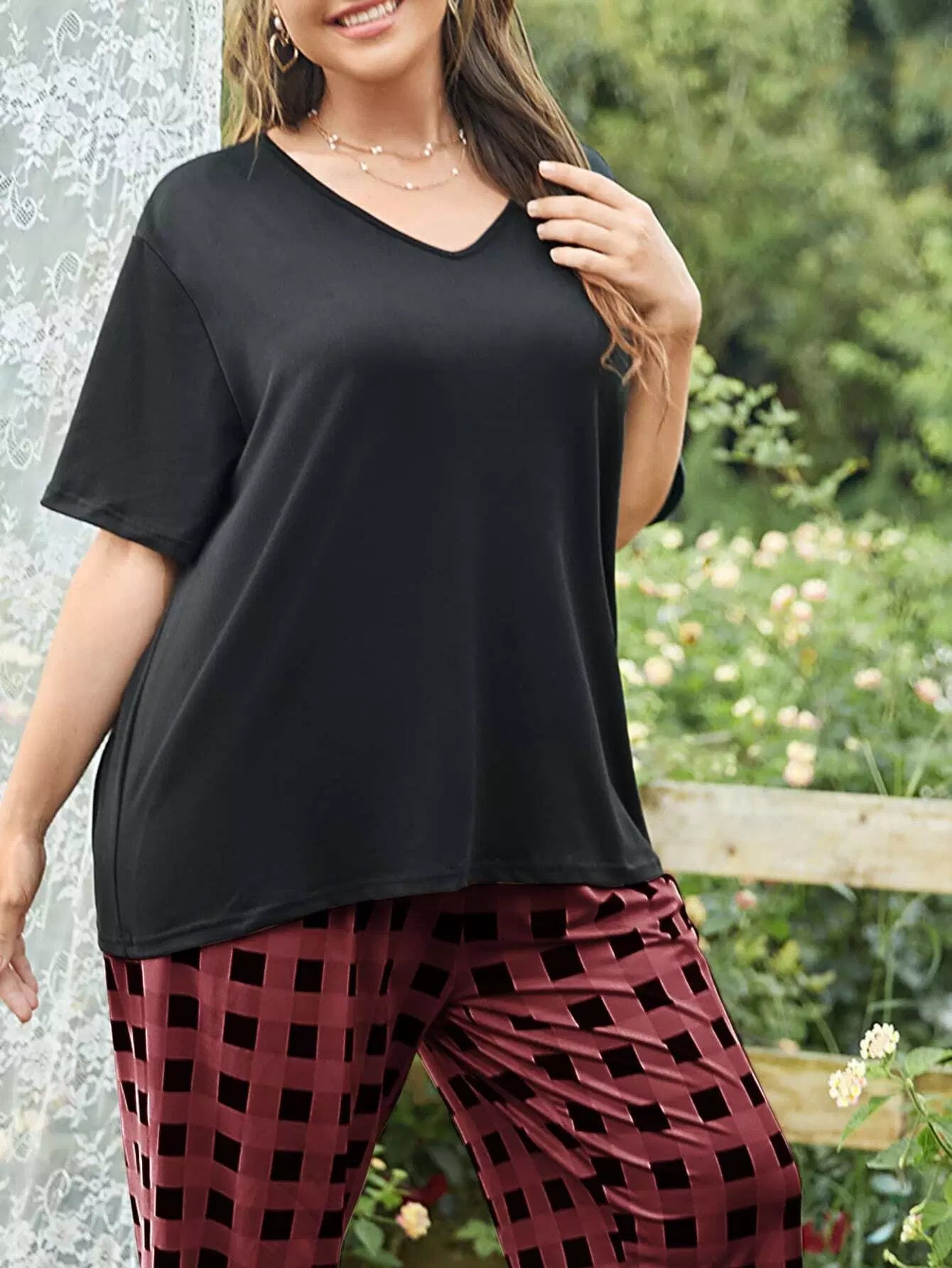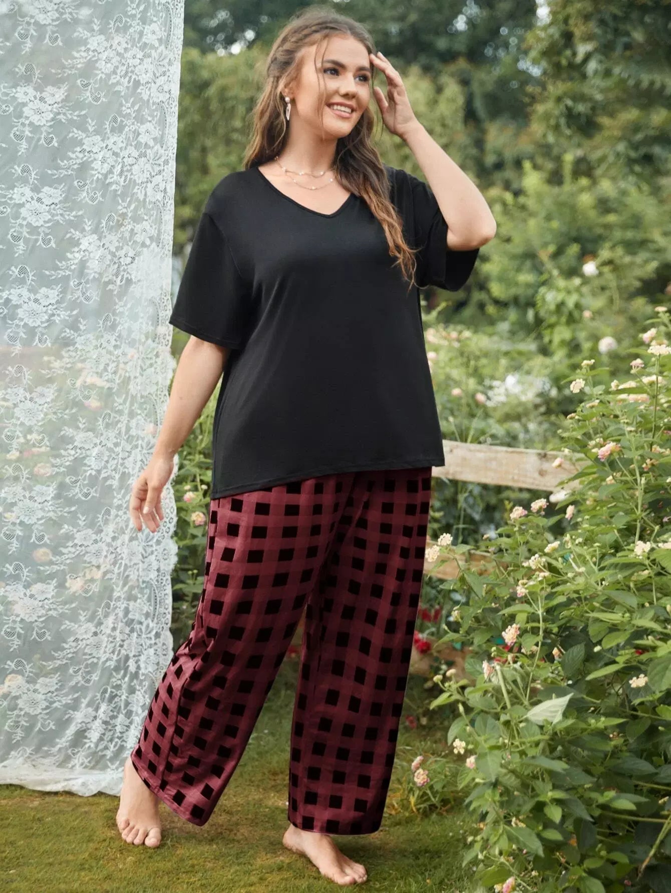طقم بيجاما بقميص سادة مع بنطلون قطني بلس سادة مع بنطلون قطني