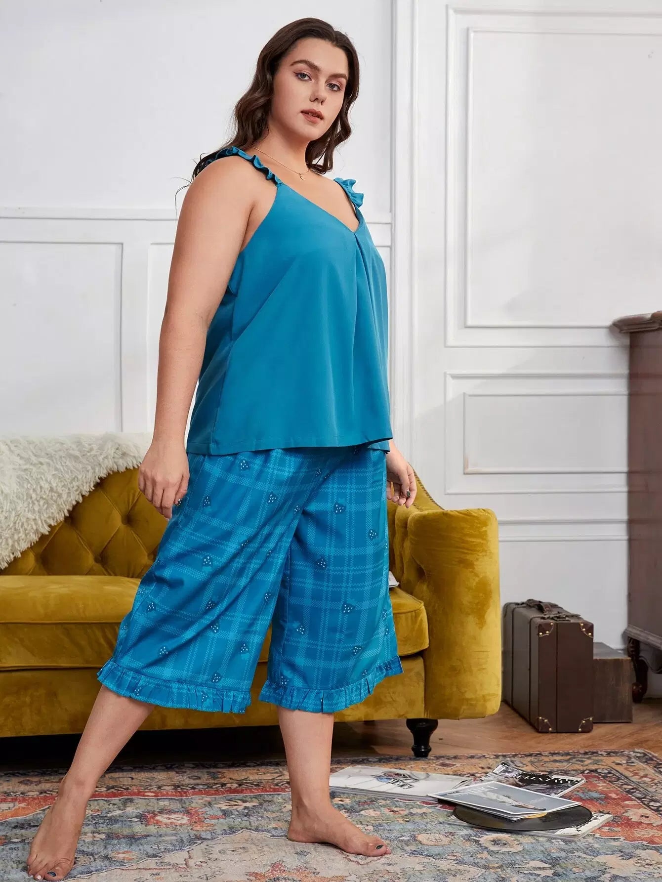 طقم بيجامة بيجامة بطبعة فراولة بطبعة فراولة زائد كشكش