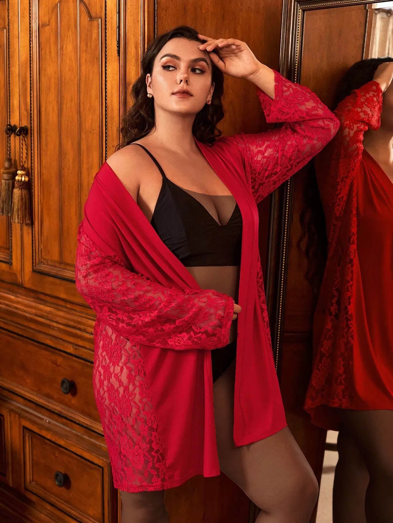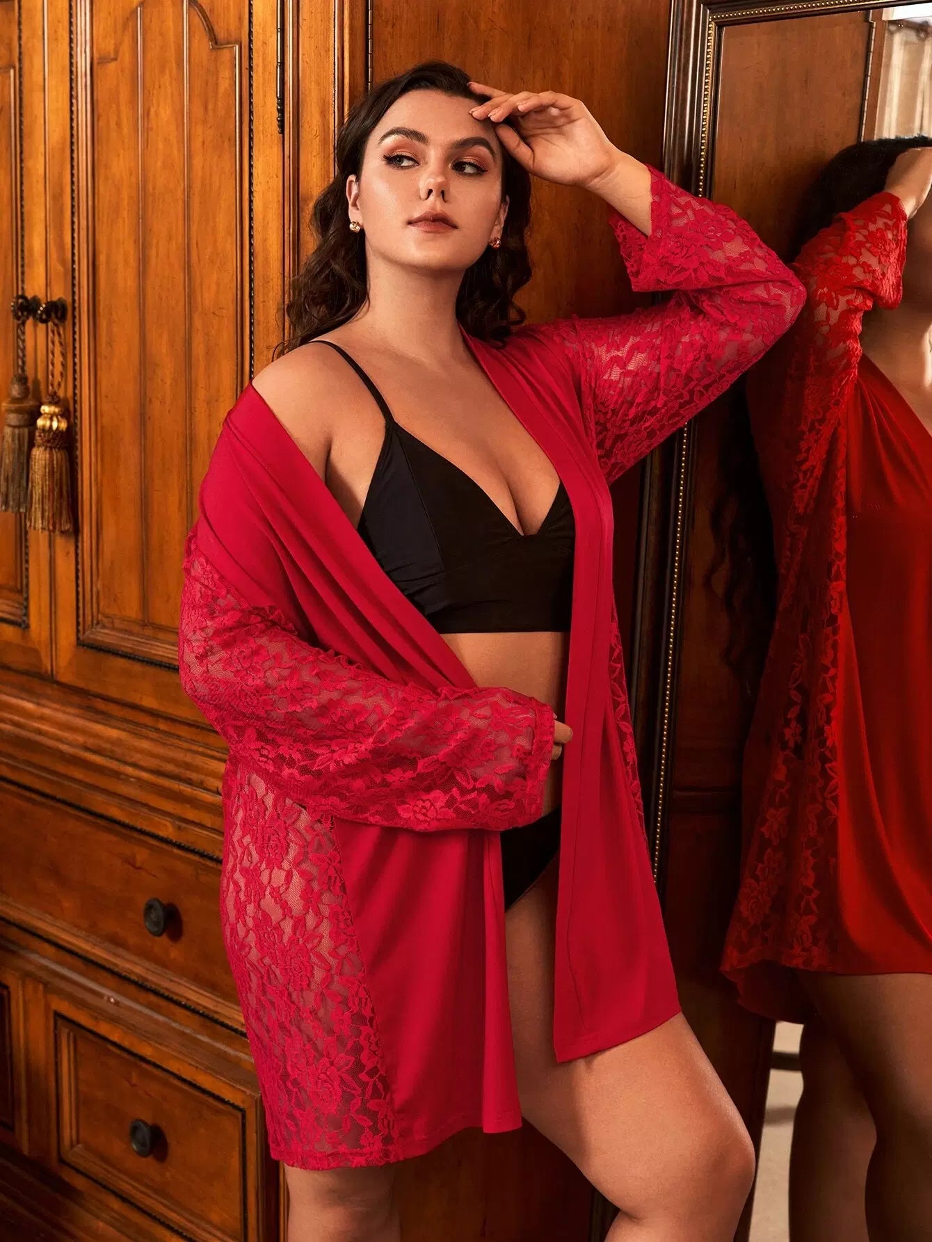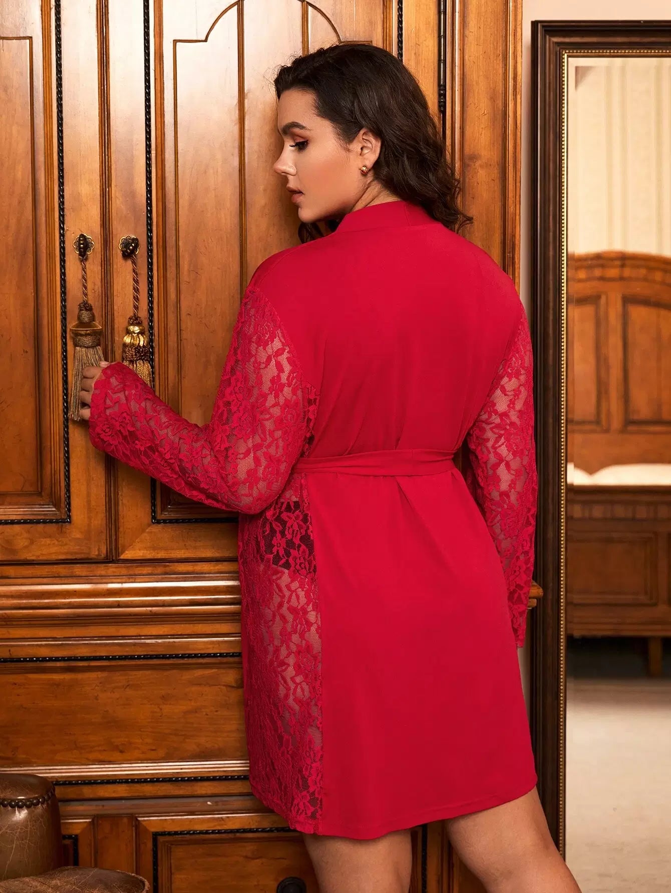 بالإضافة إلى 1 قطعة رداء دانتيل بدون حزام