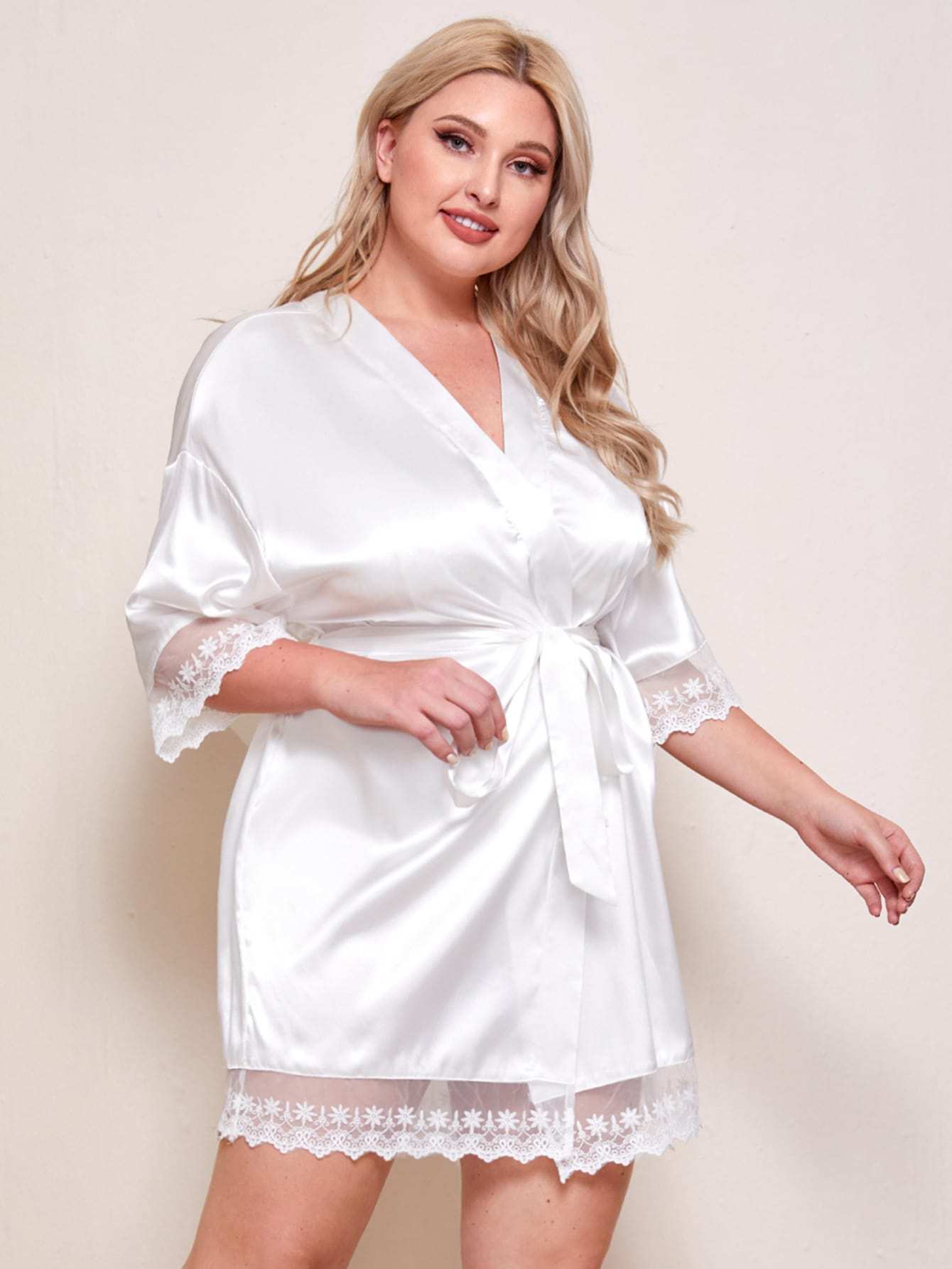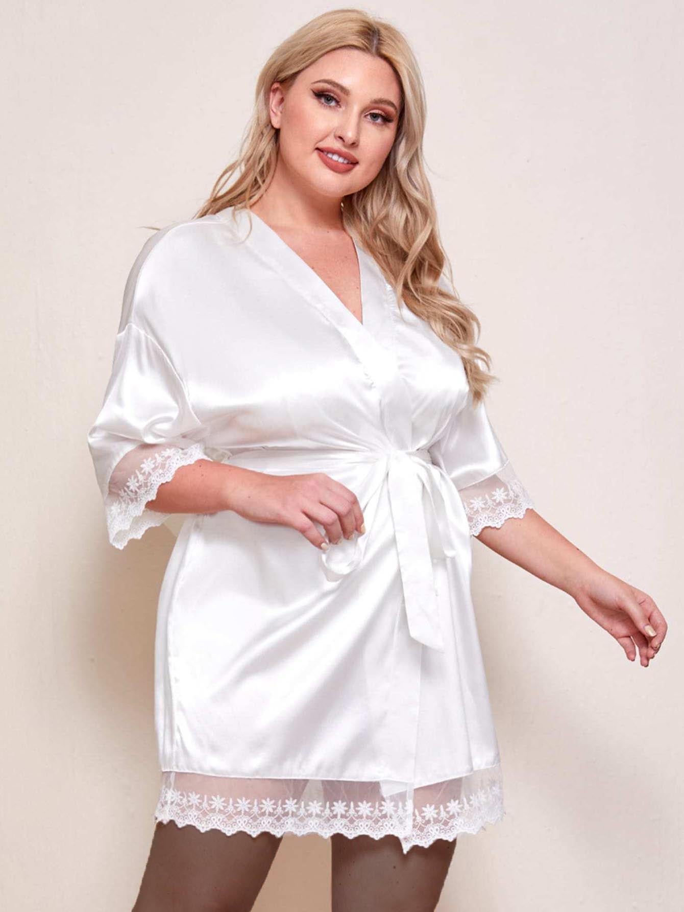 نحيف - مقاس كبير التطريز شبكة حافة مربوط رداء الساتان