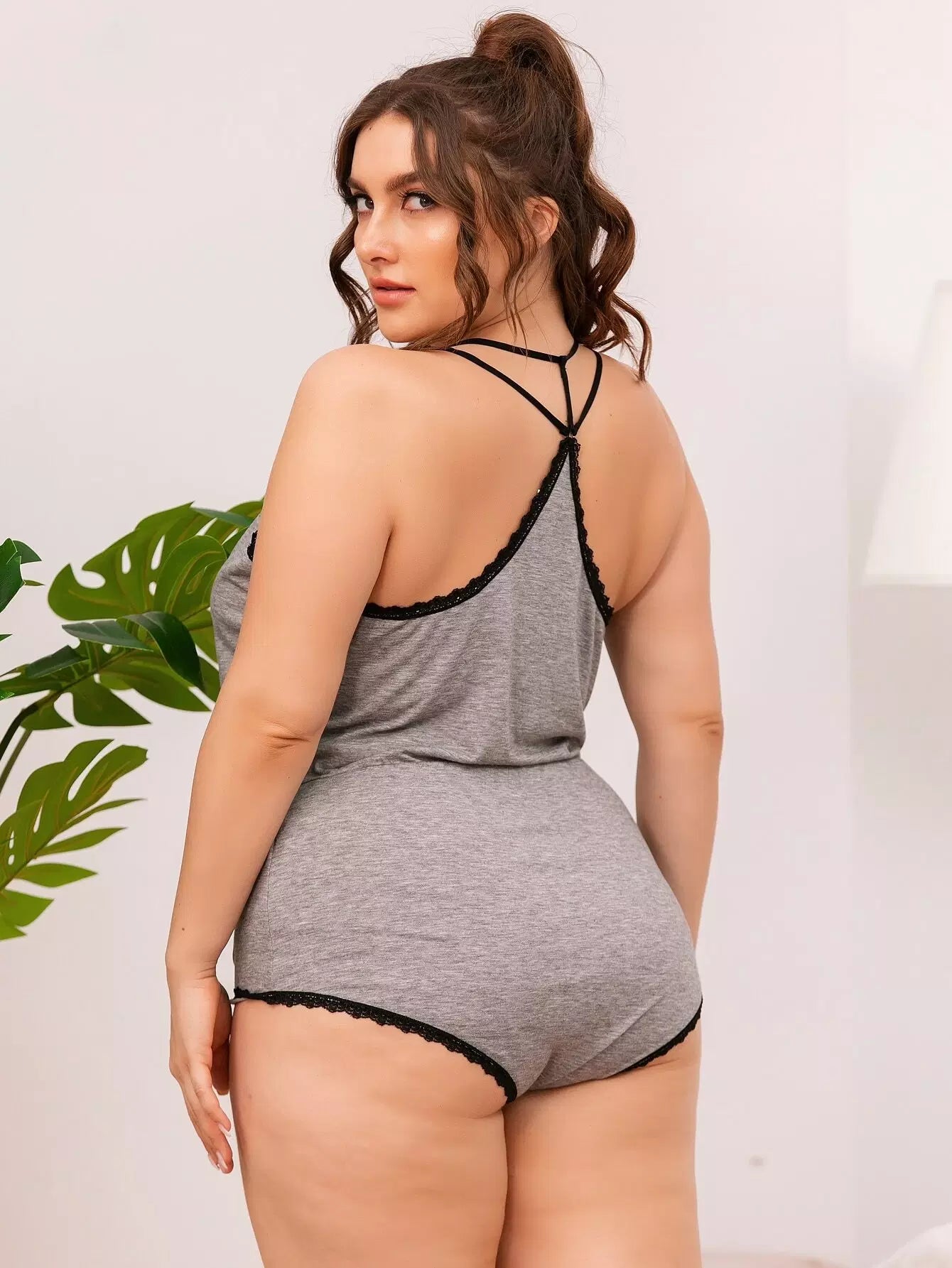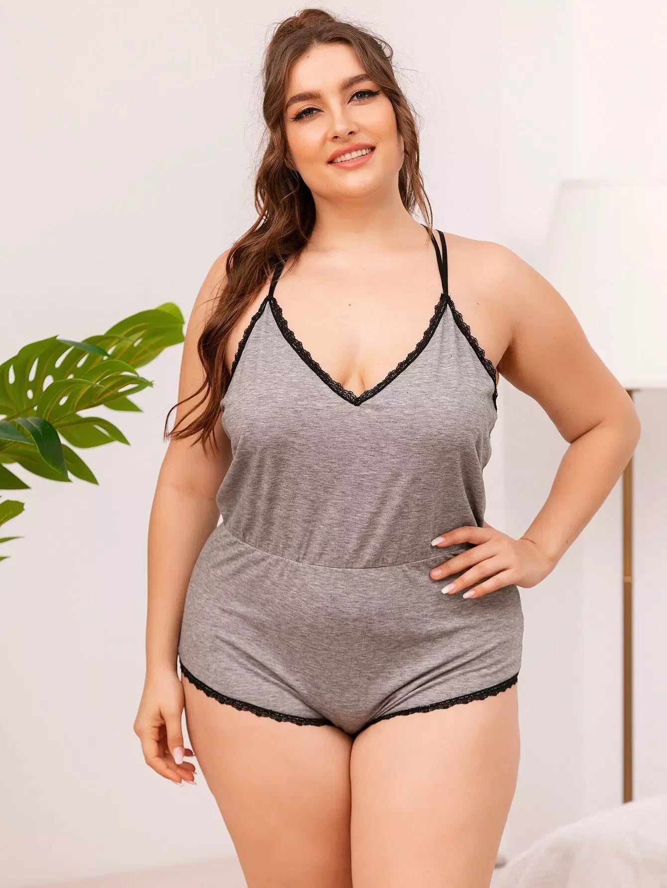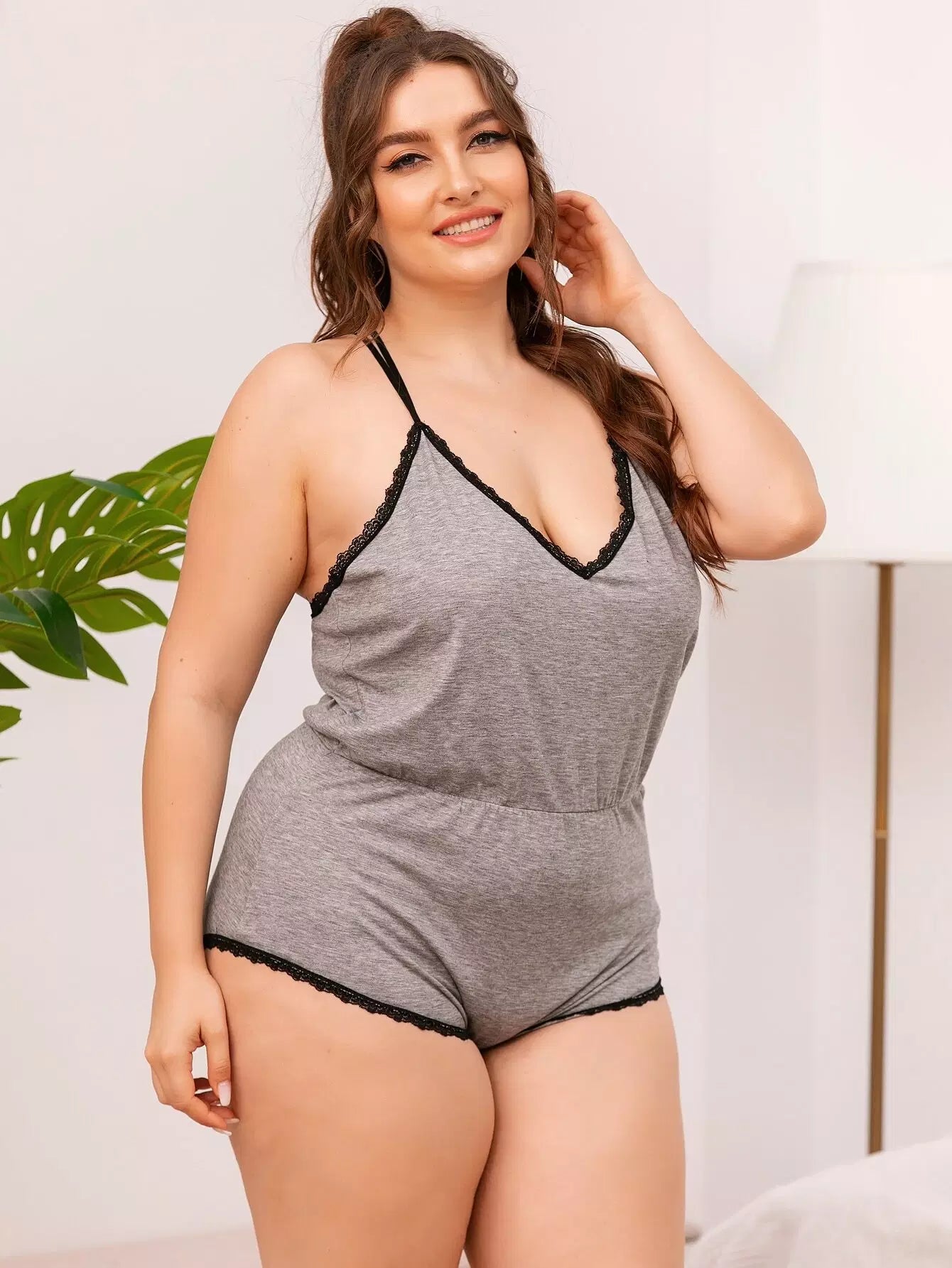 نحيف - مقاس كبير رومبير للنوم بأشرطة من الدانتيل بلون متباين