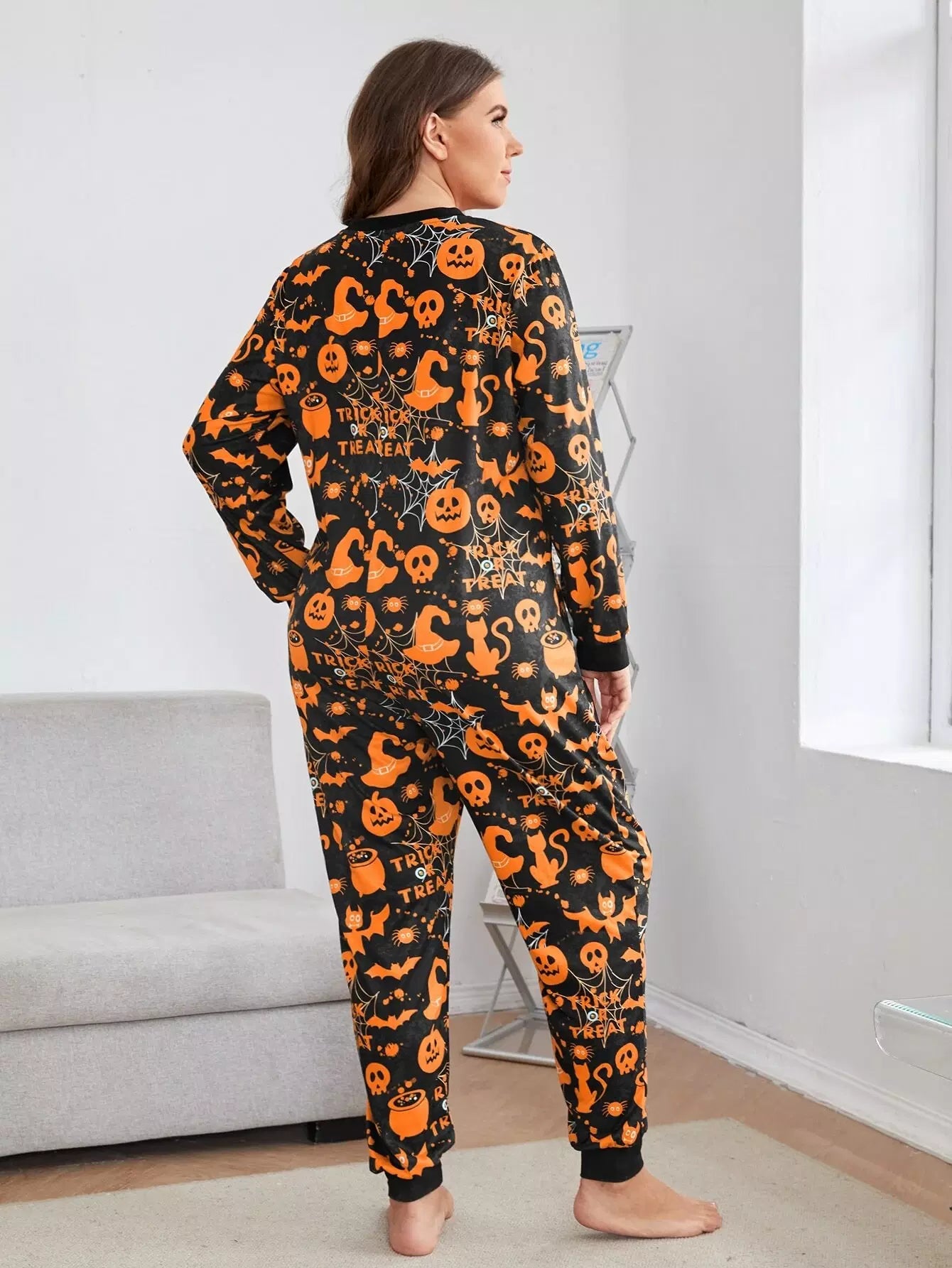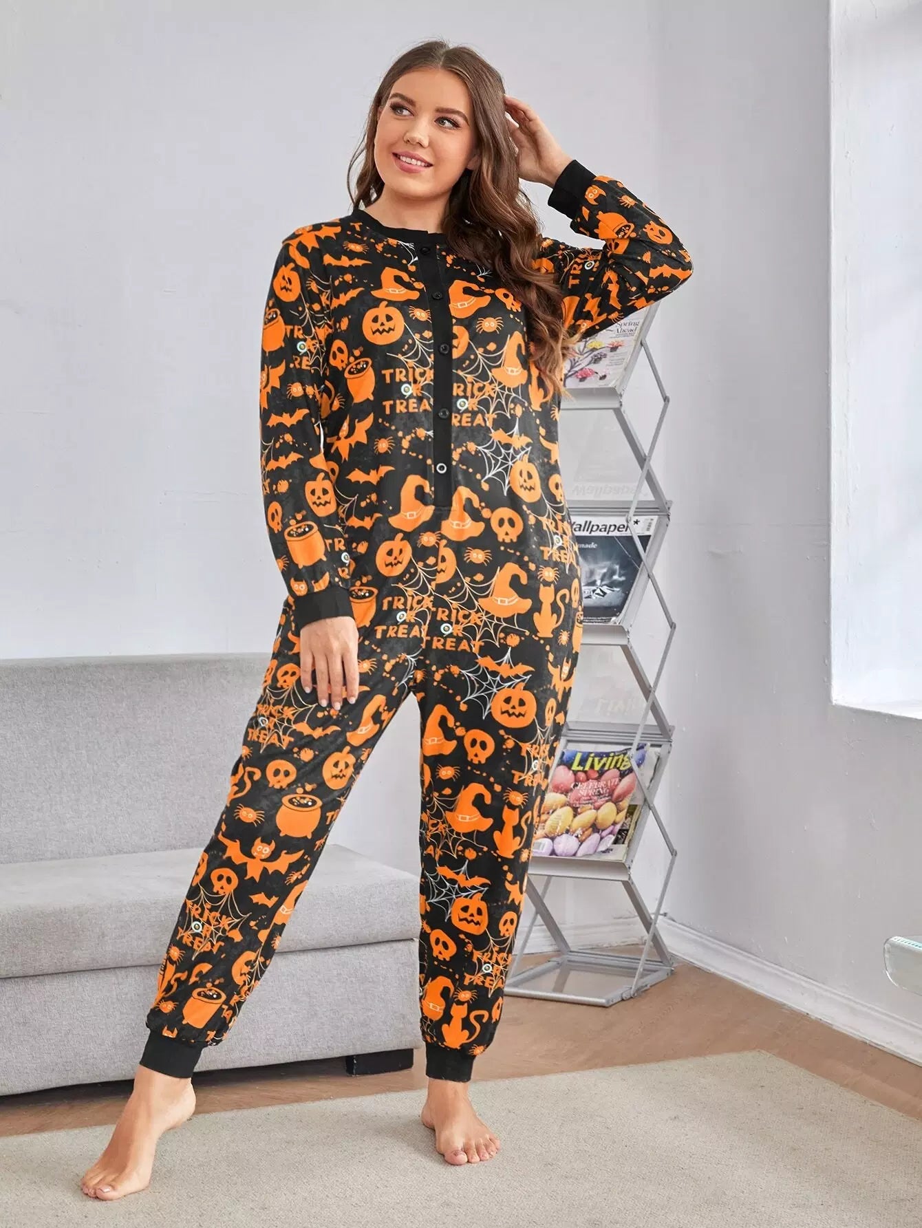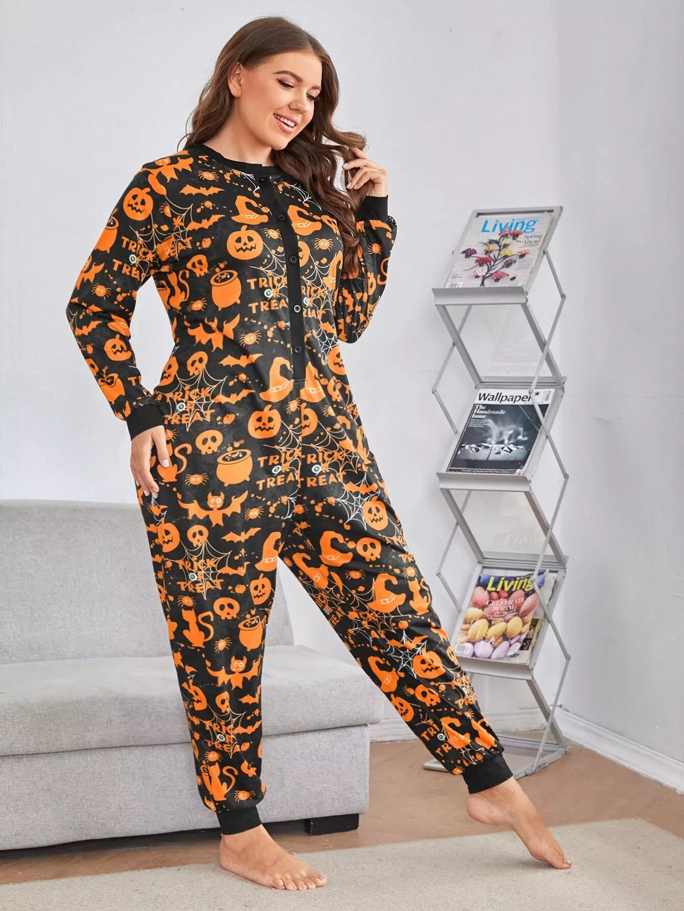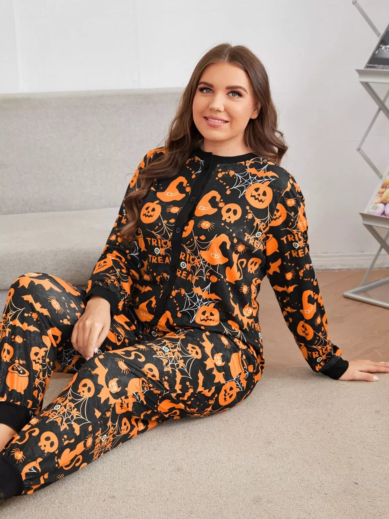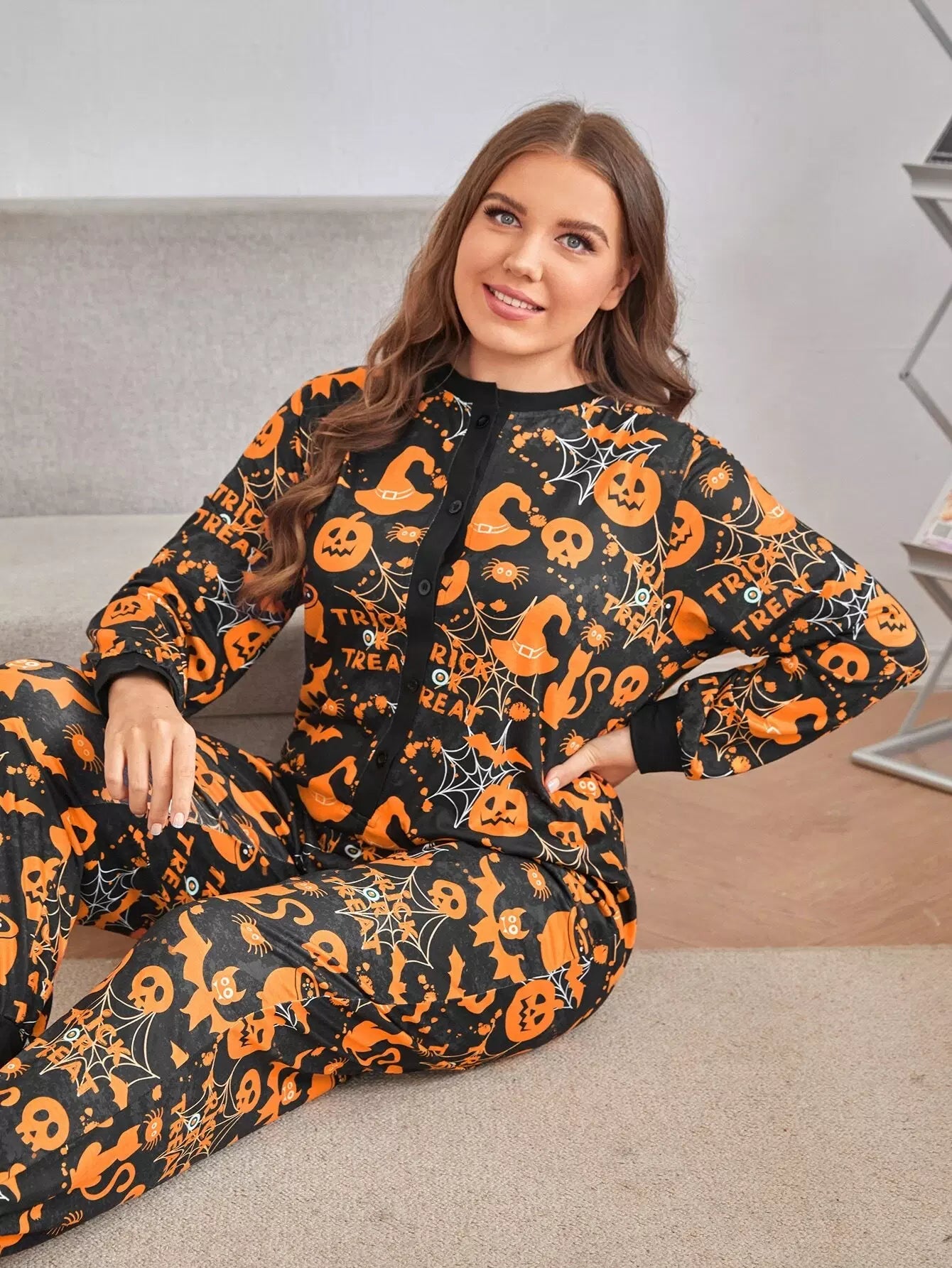 نحيف - مقاس كبير بذلة نوم بأزرار أمامية مطبوعة للهالوين