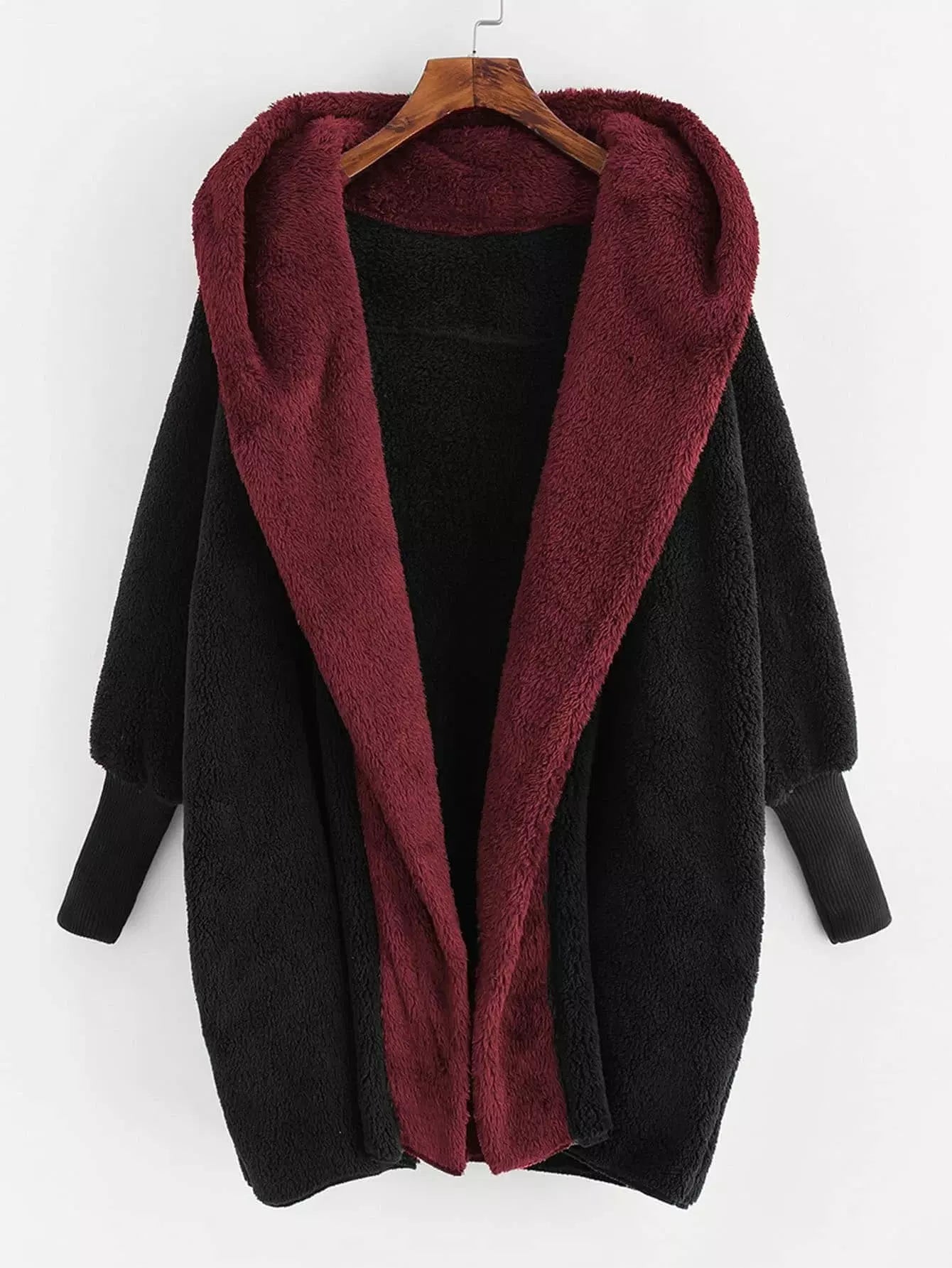 معطف بقلنسوة مفتوحة من الأمام مفتوح من الأمام