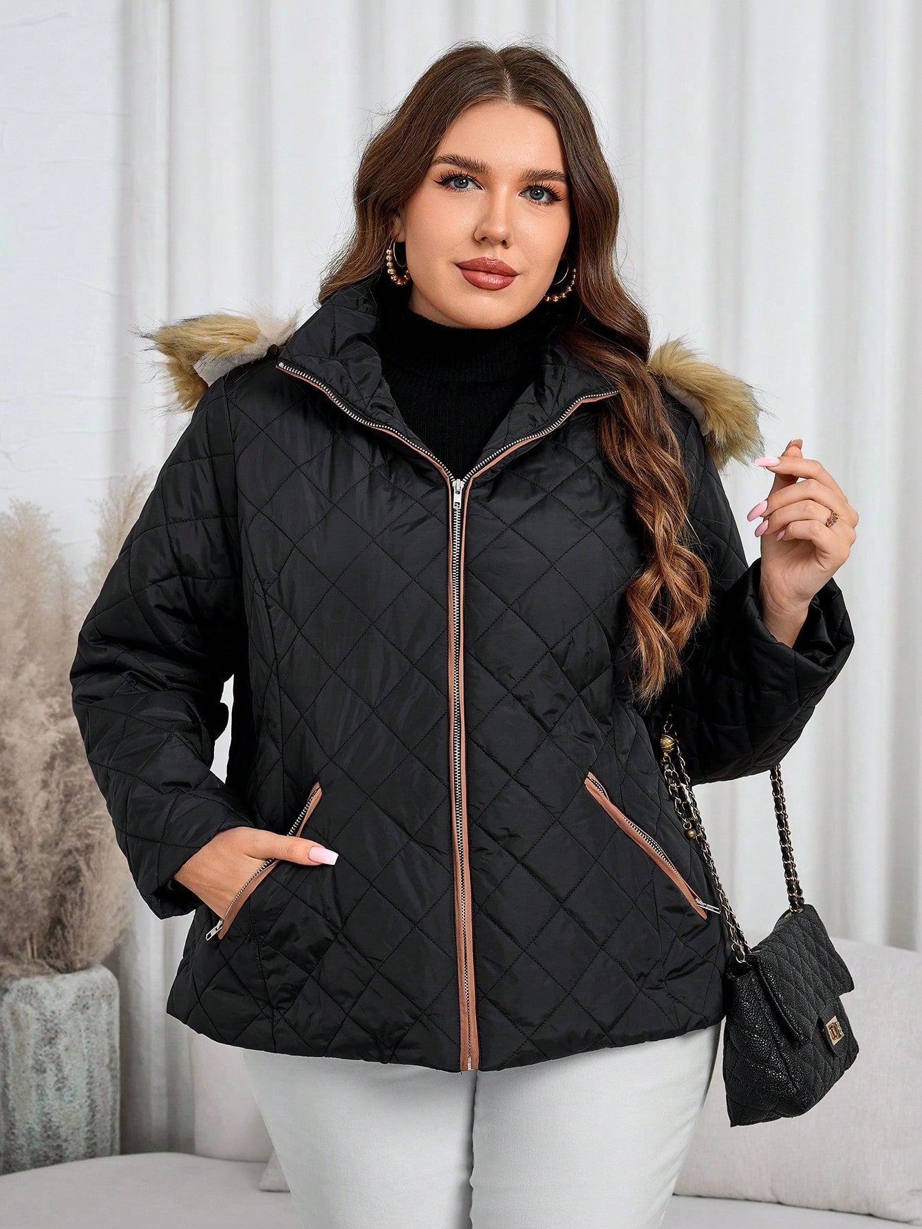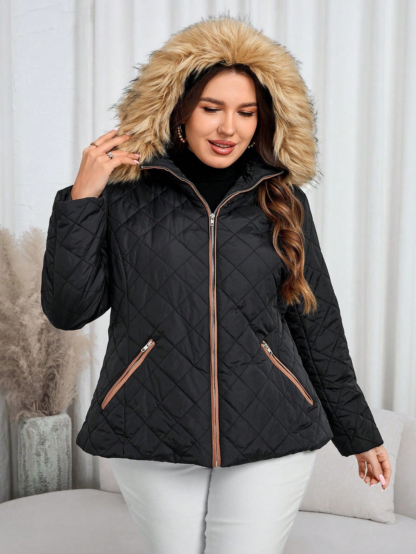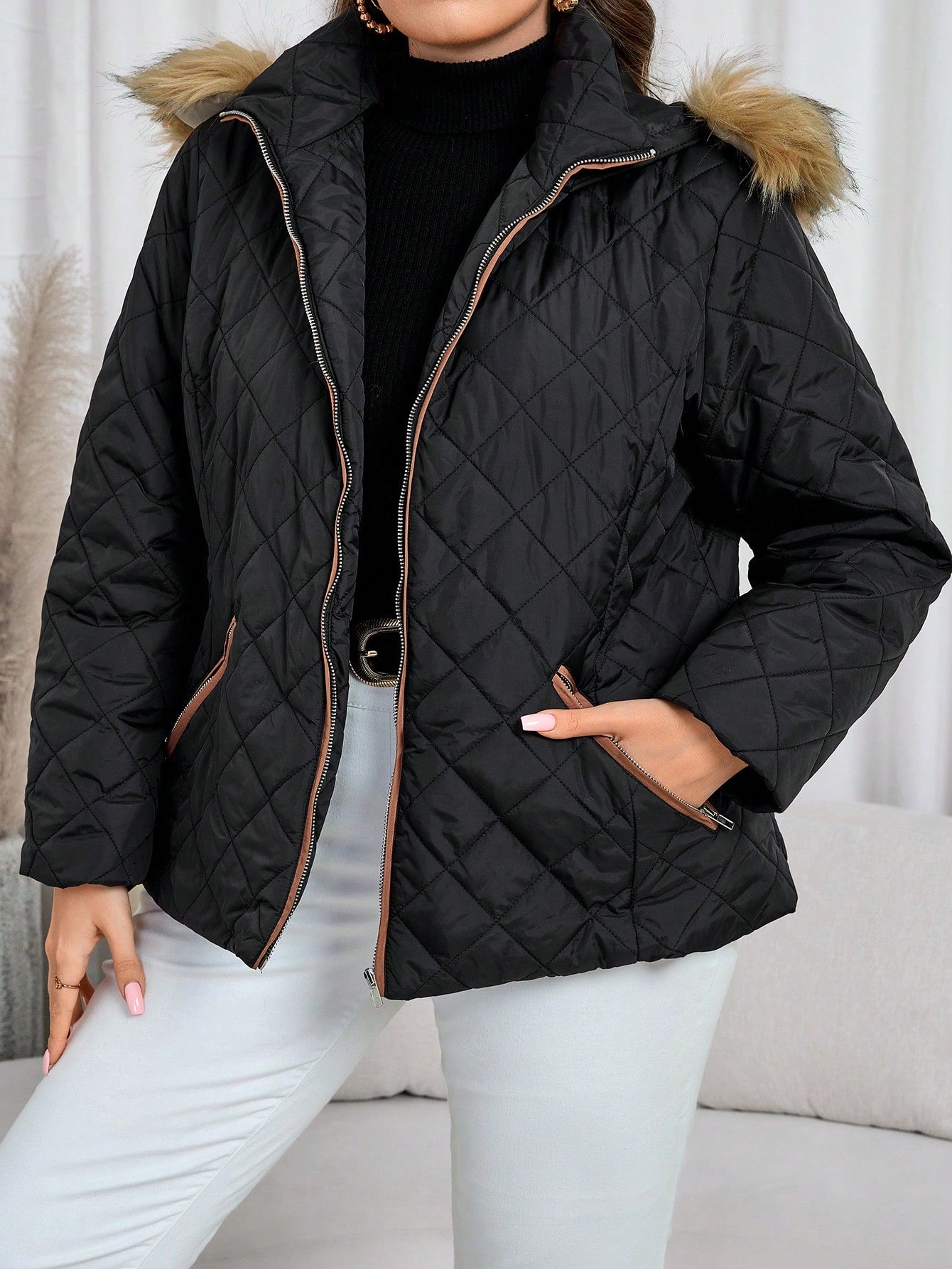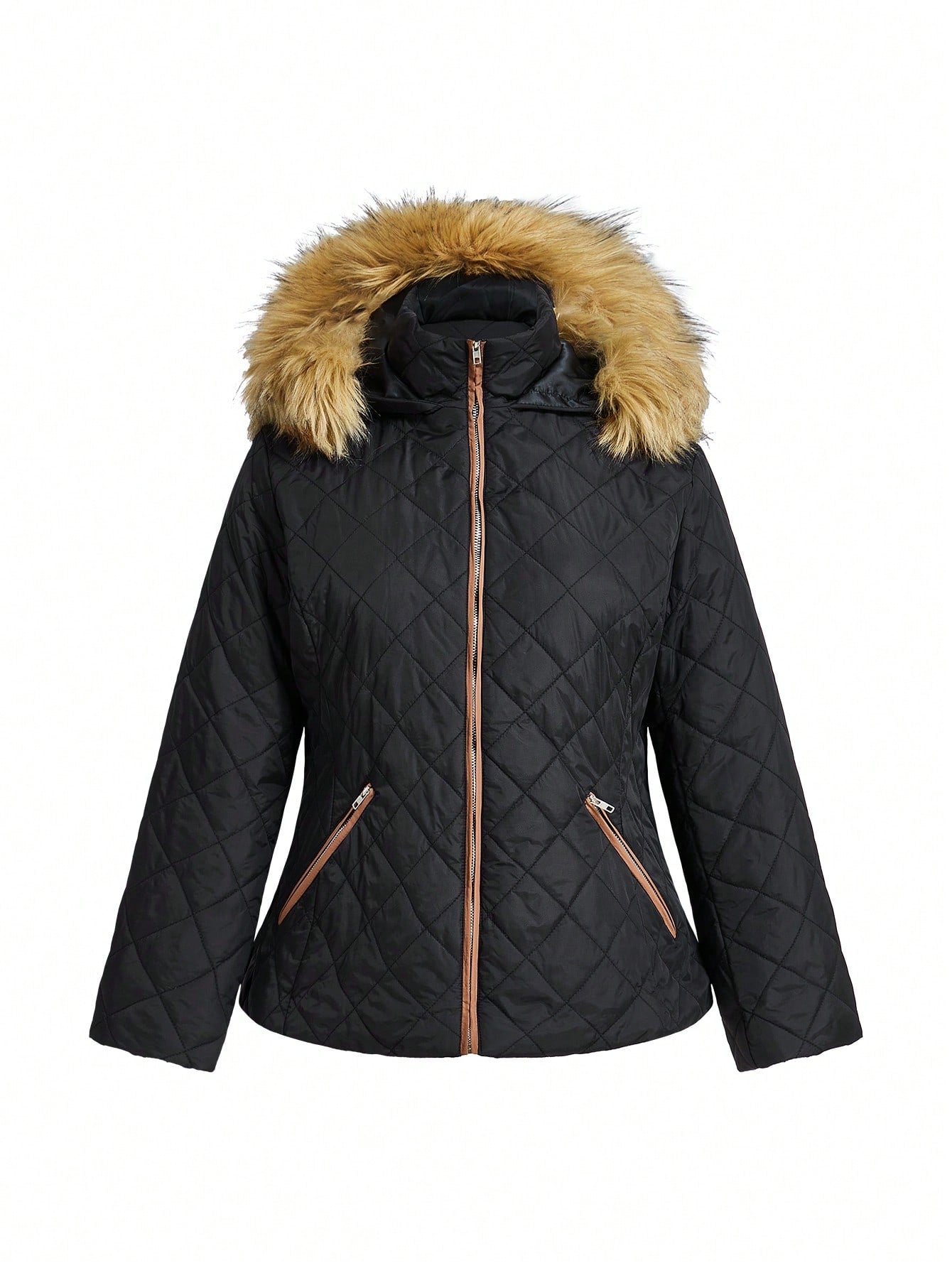 Clasi Plus Size Women's Fleece Hooded Long Sleeve Quilted Coat, Winter Clothes