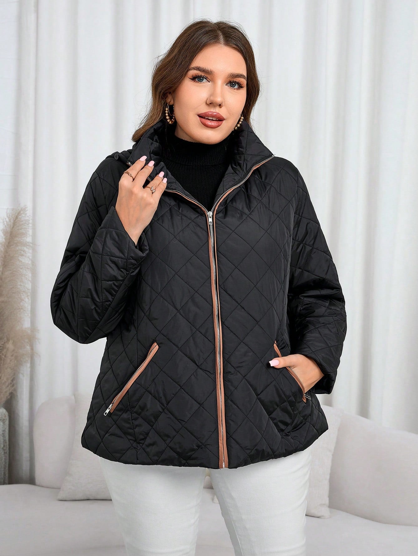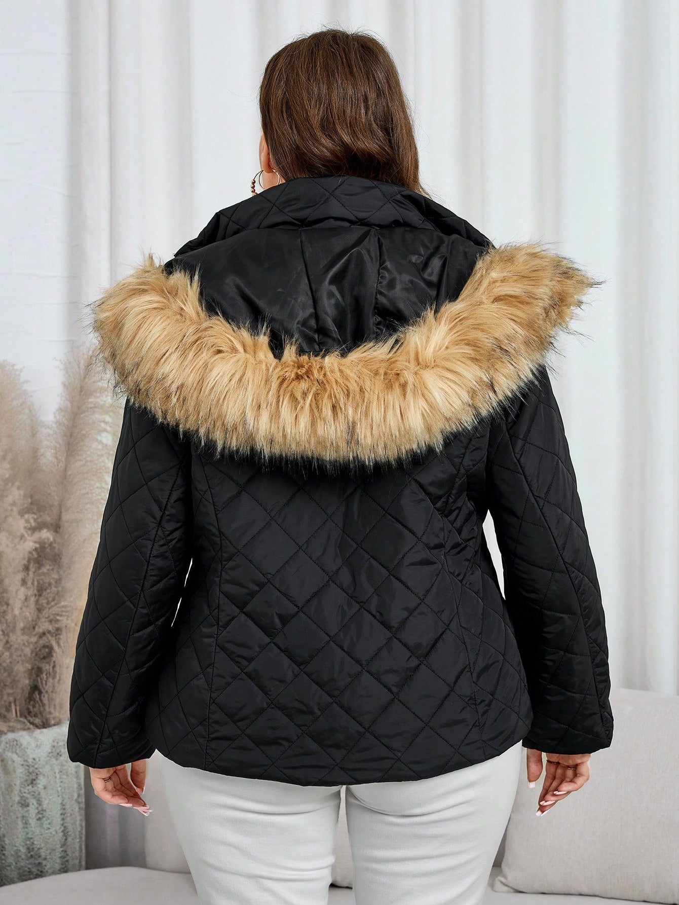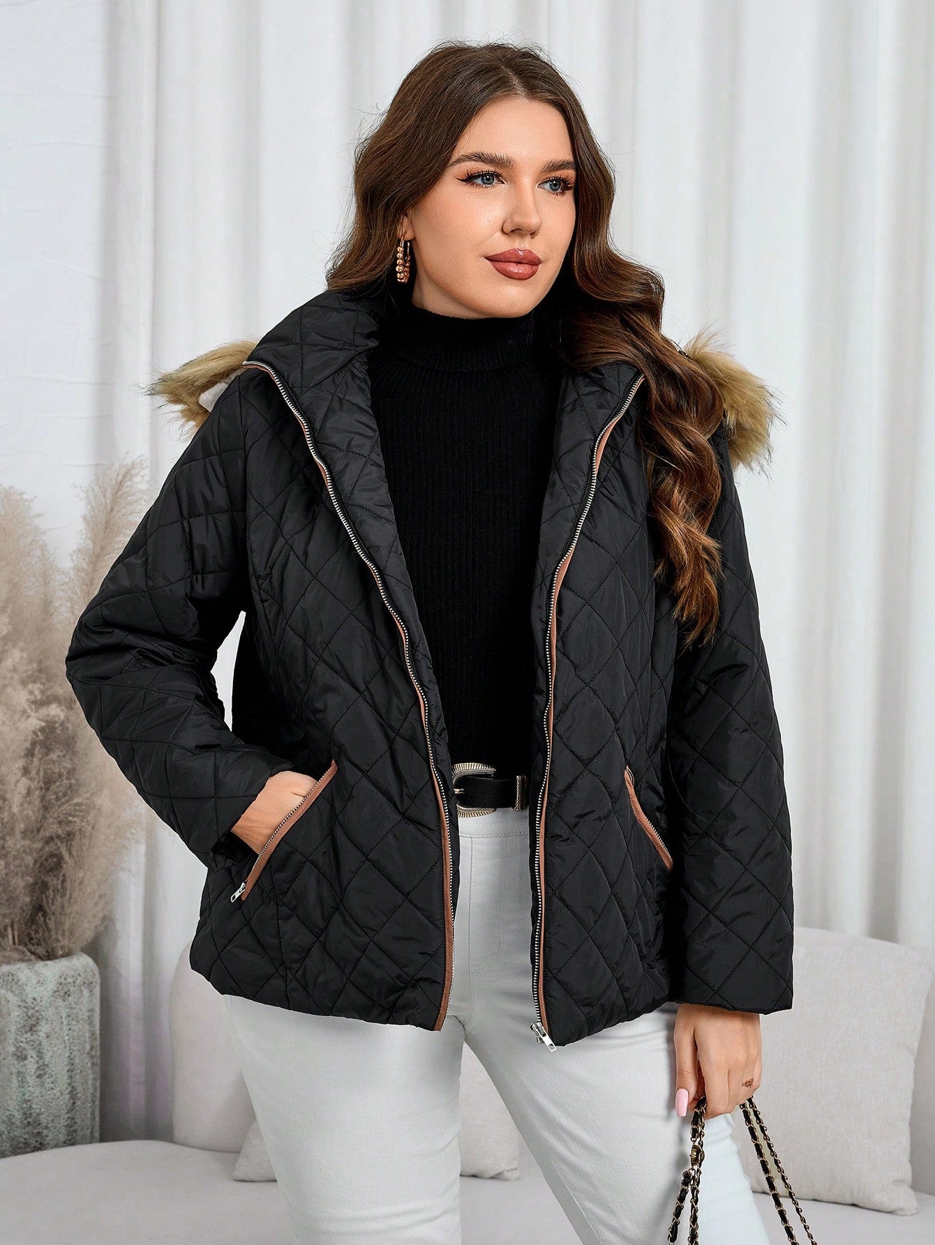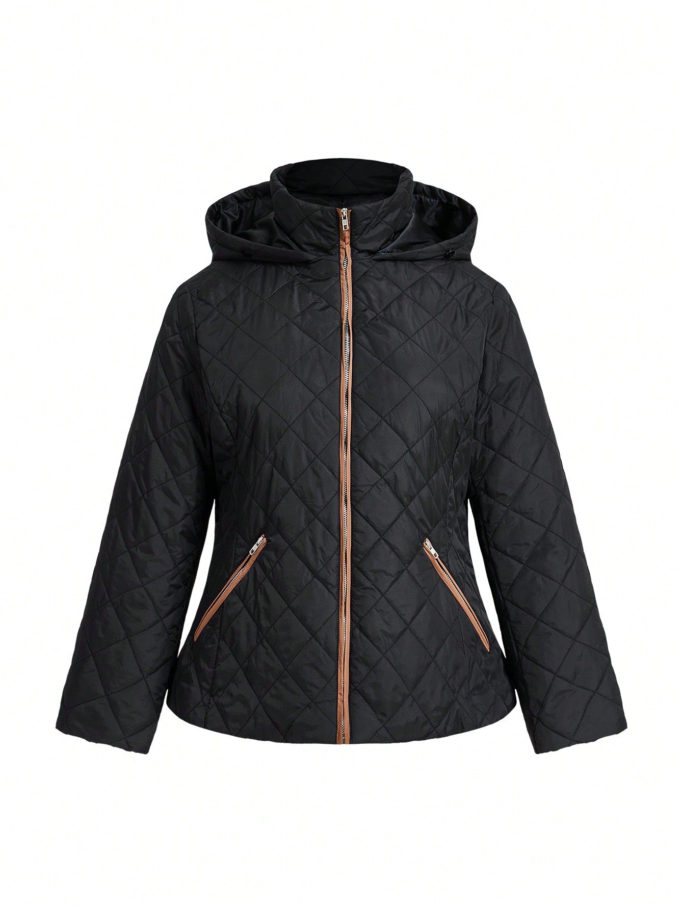 Clasi Plus Size Women's Fleece Hooded Long Sleeve Quilted Coat, Winter Clothes