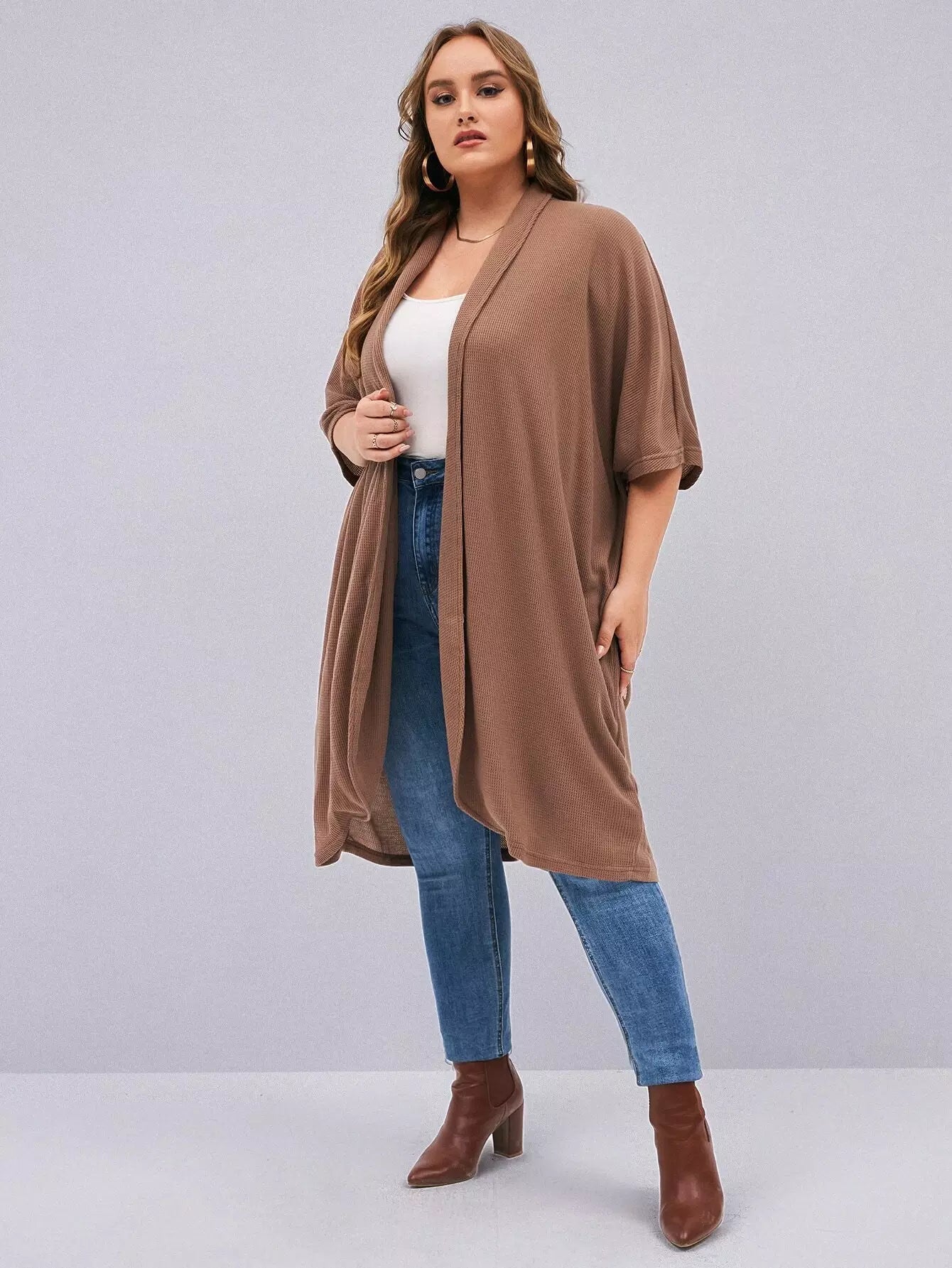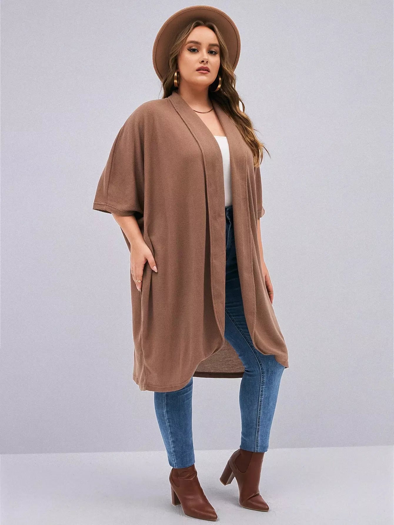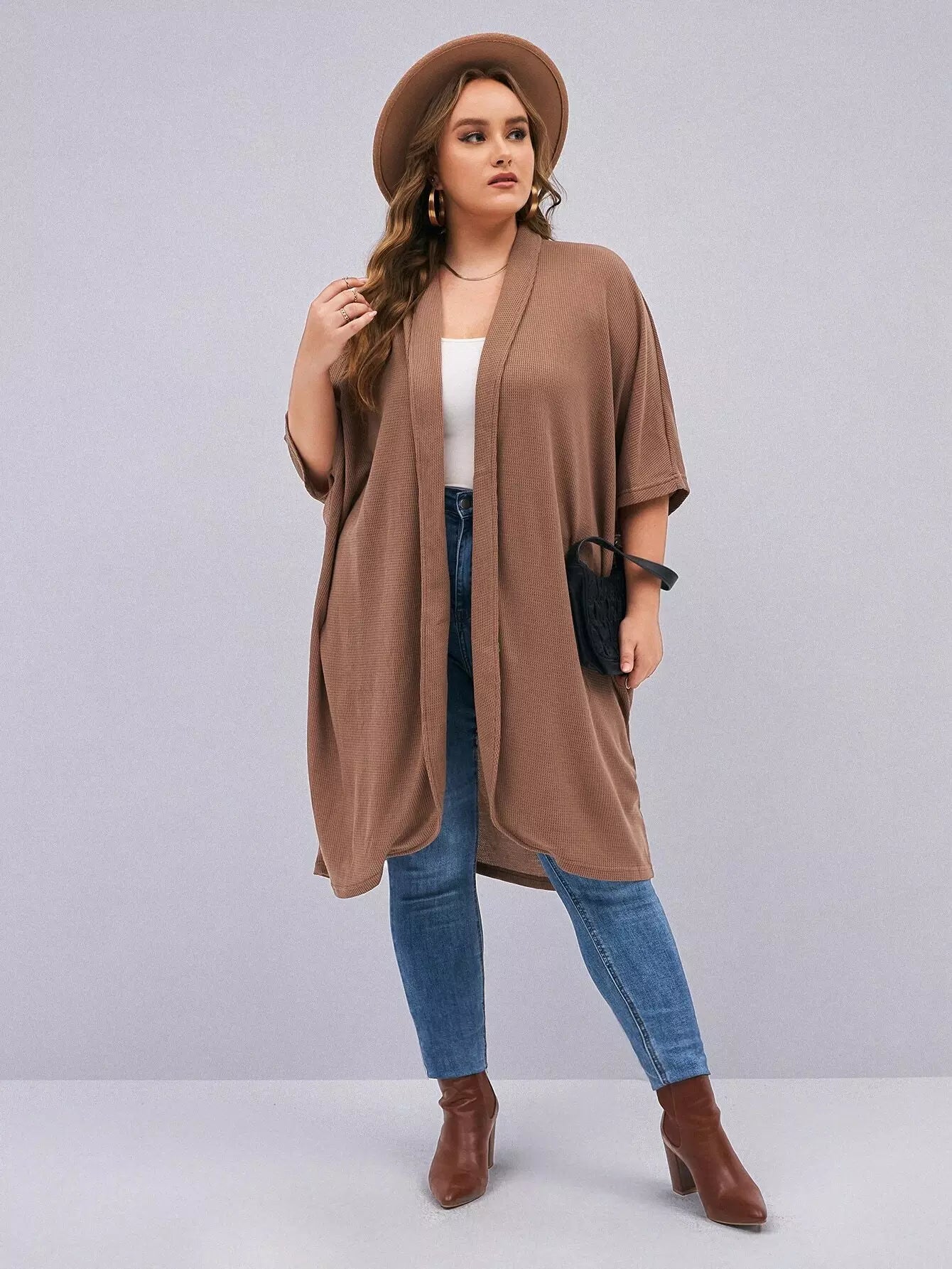 معطف بأكمام بلاس باتوينغ مفتوح من الأمام