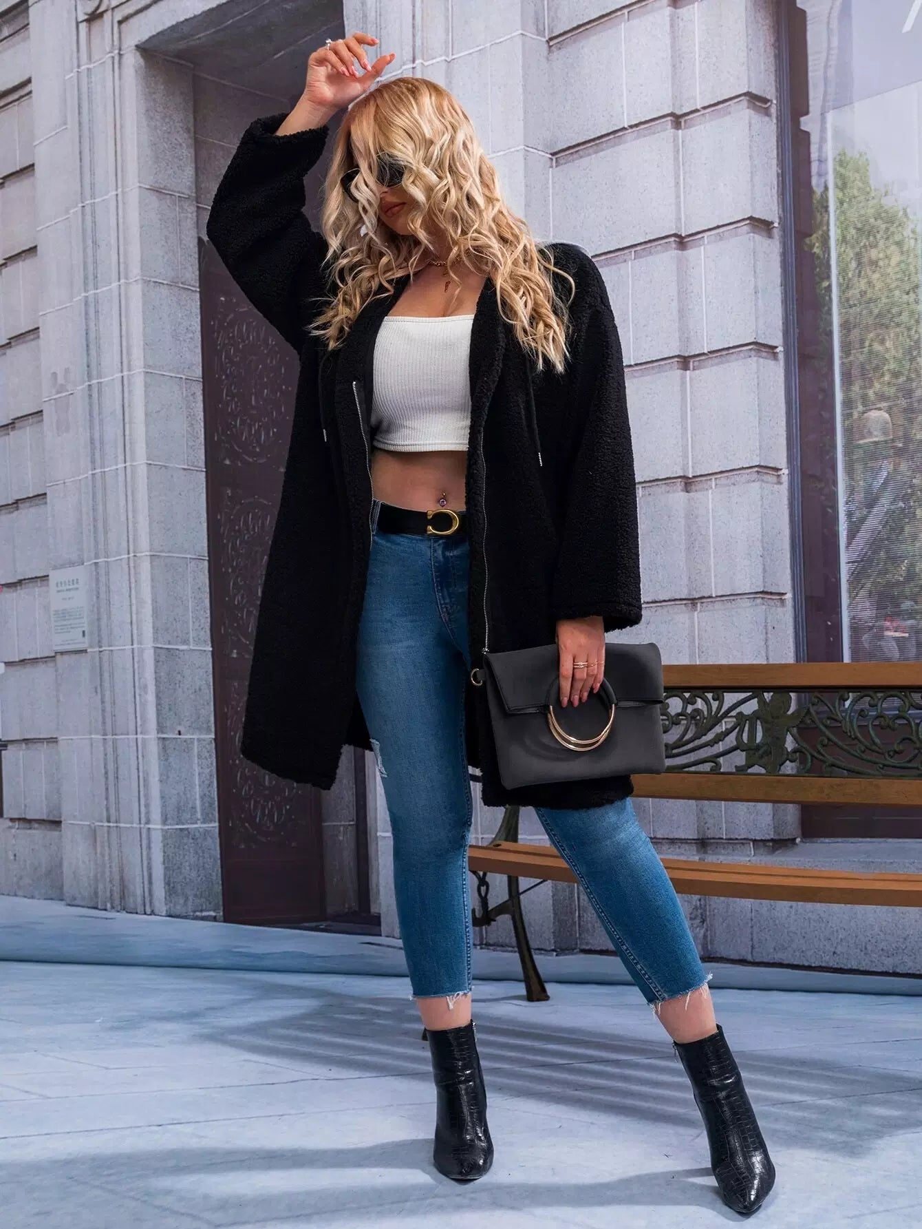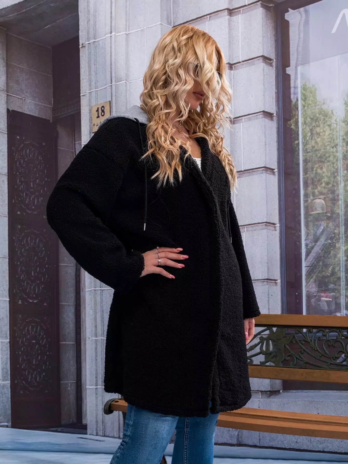 معطف بقلنسوة برباط بغطاء للرأس زائد