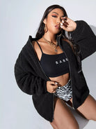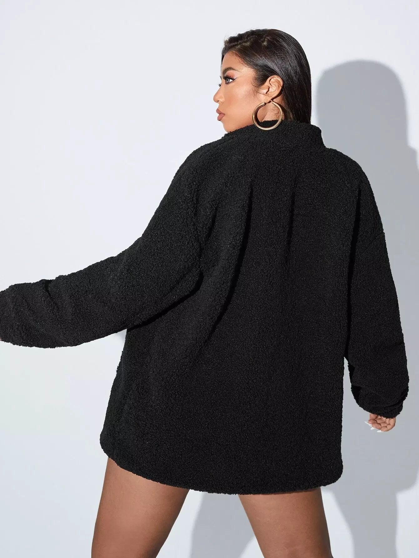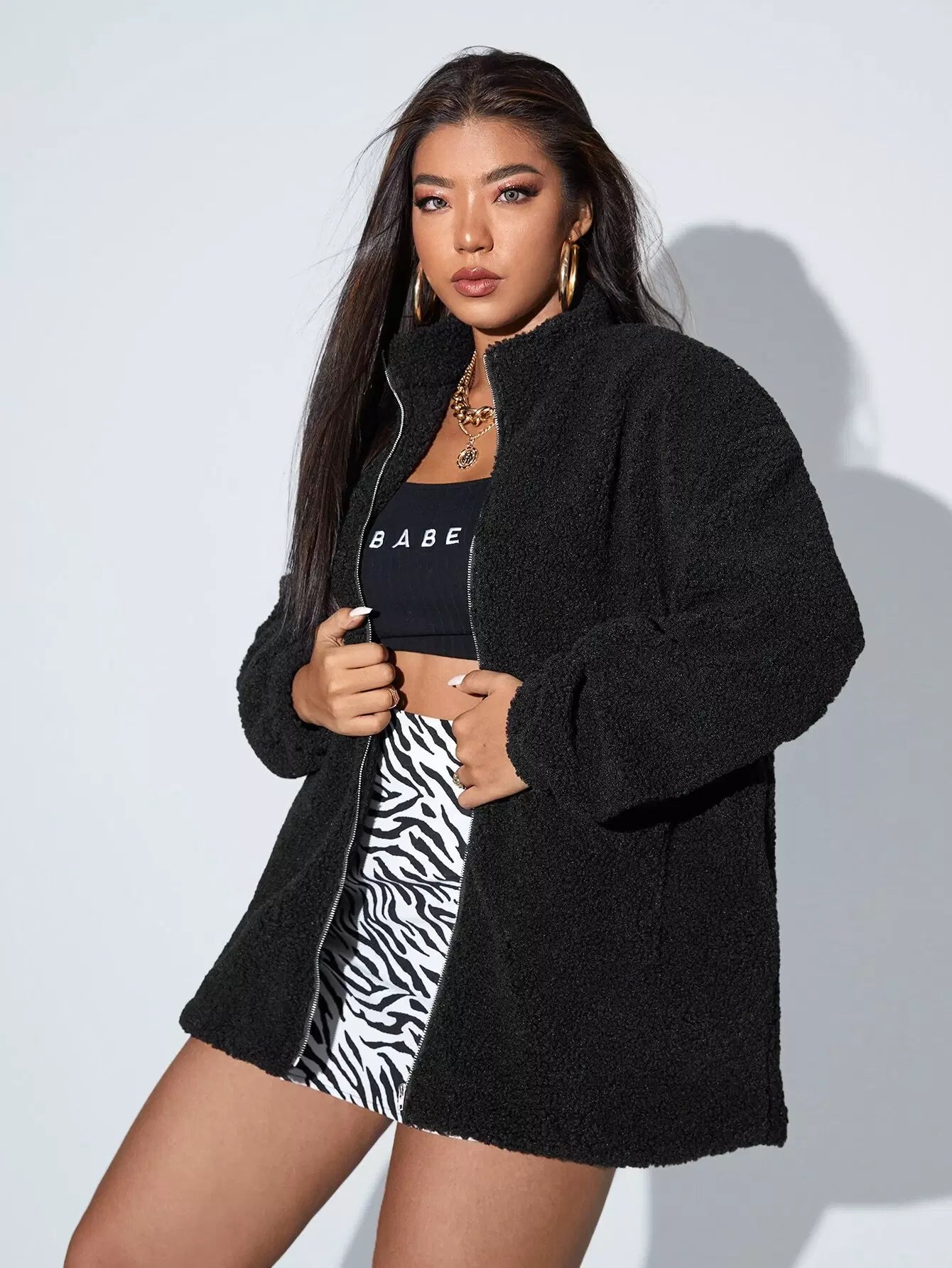 معطف تيدي منسدل الكتف بسحاب فوق الكتف