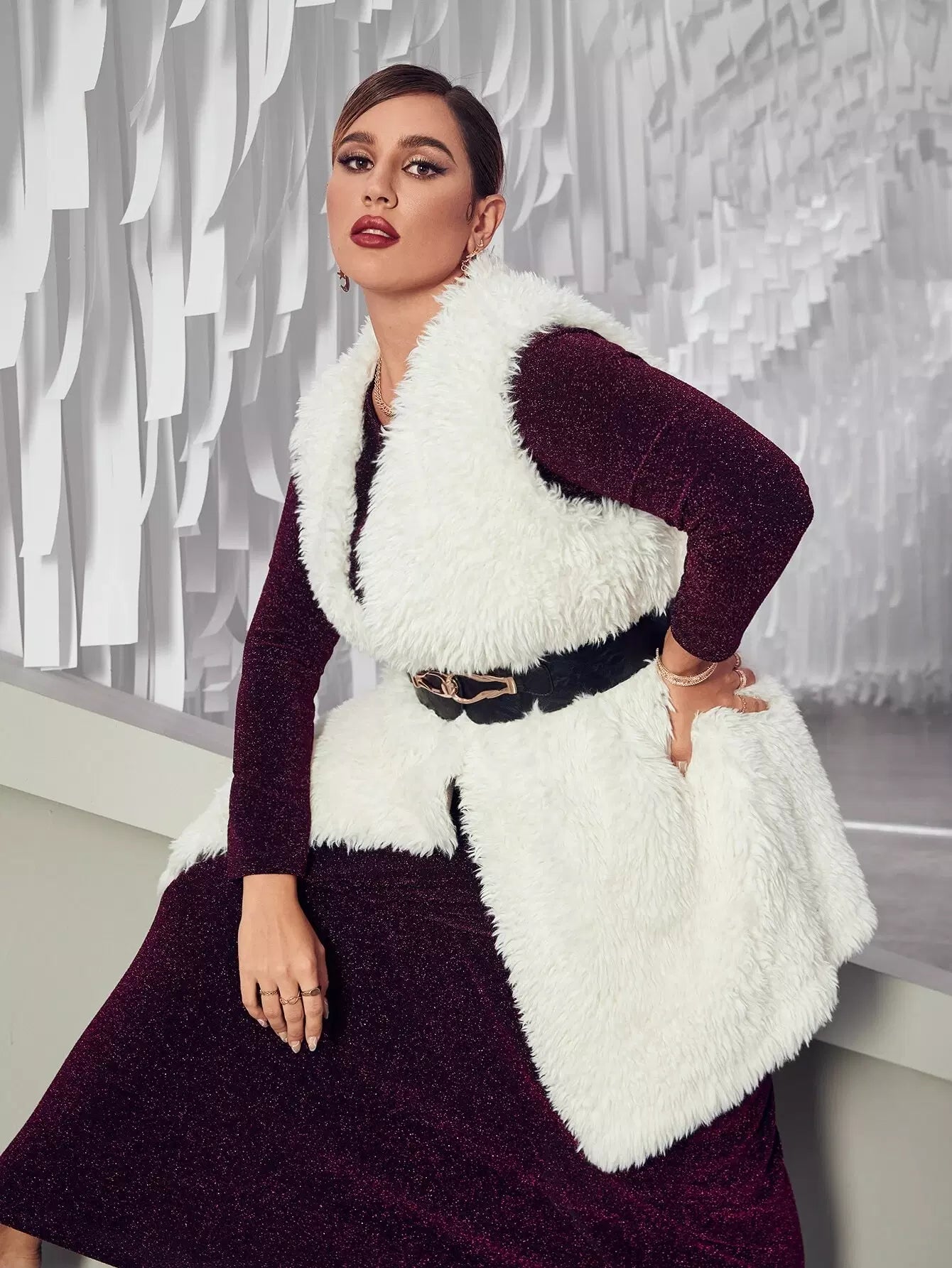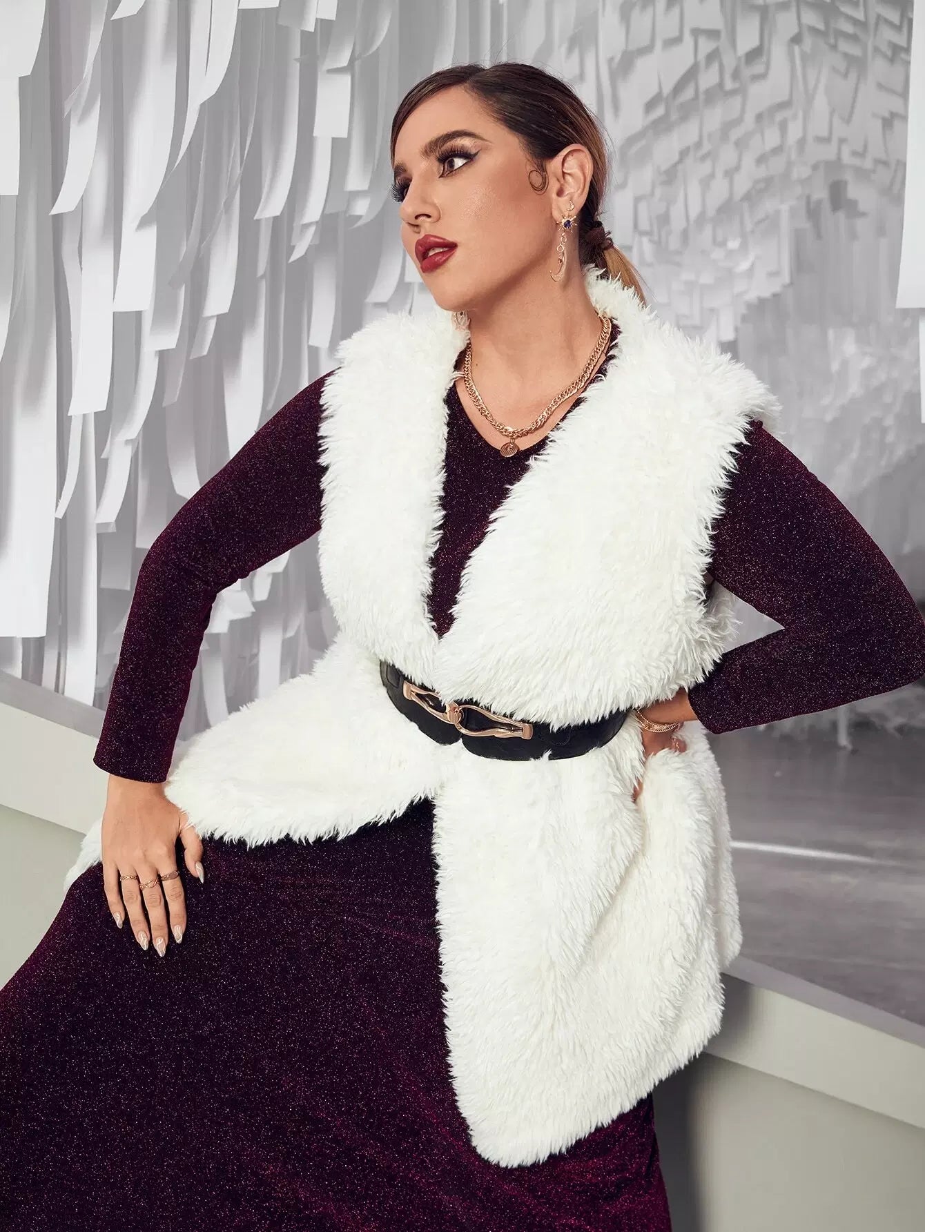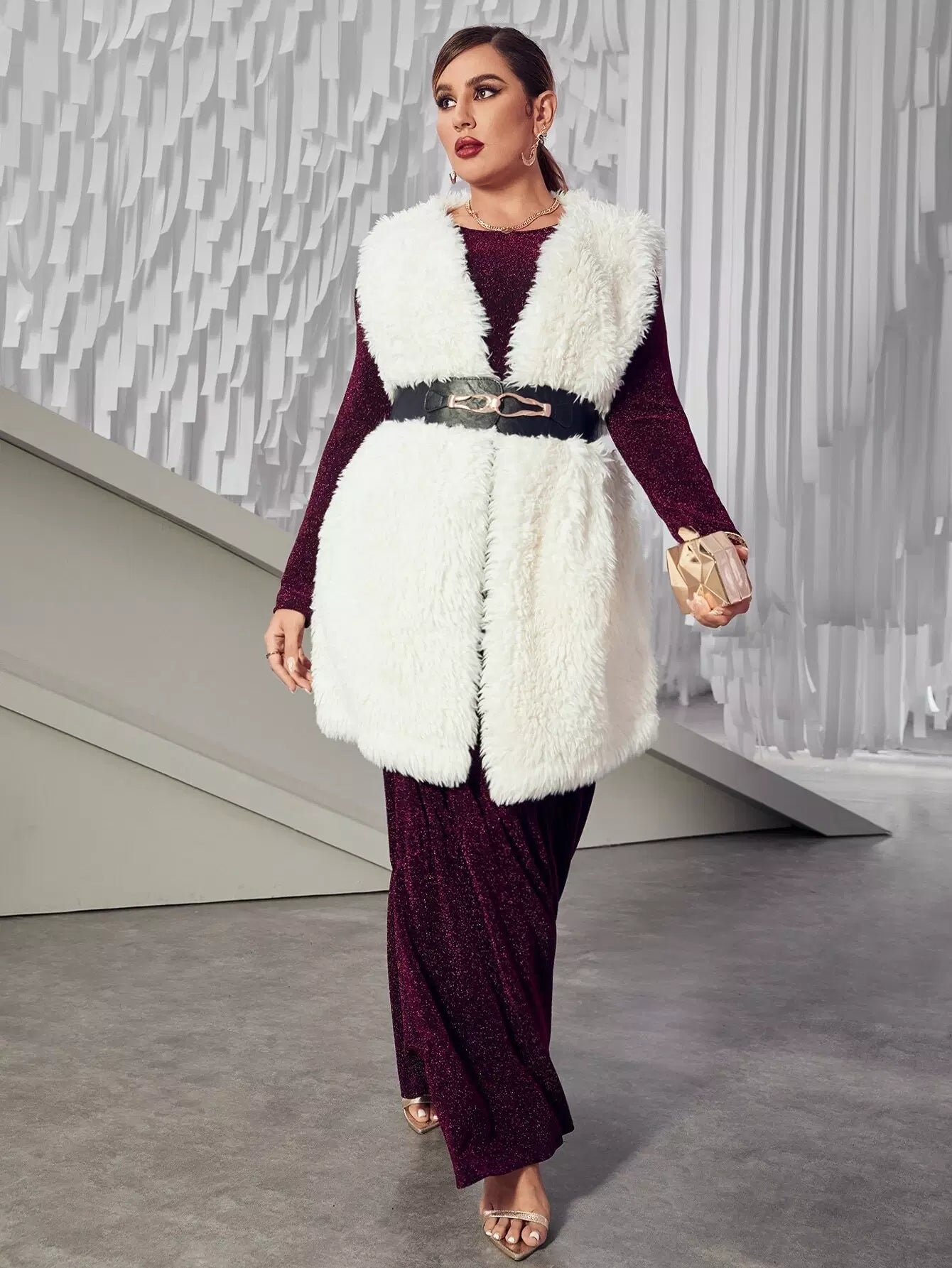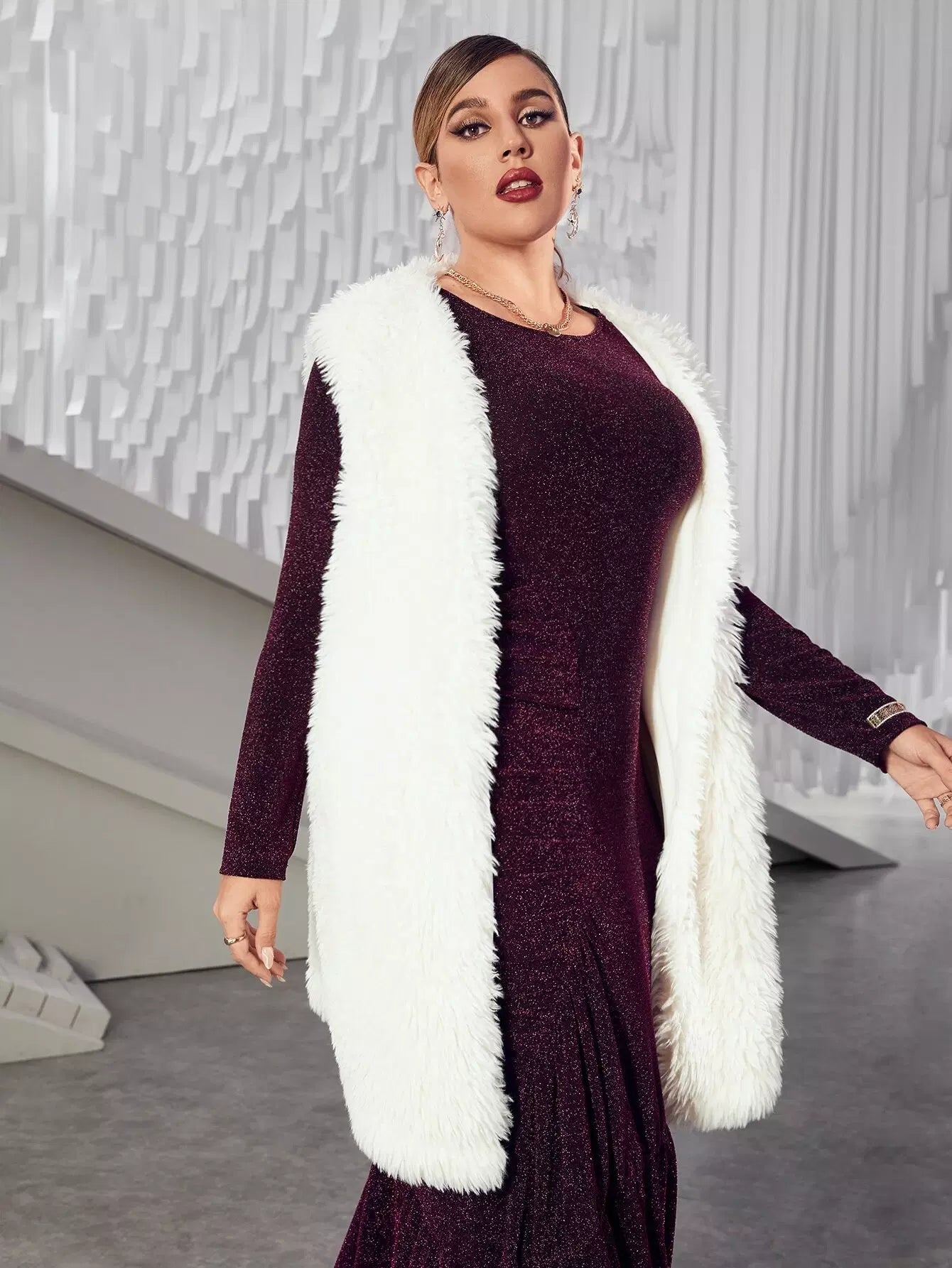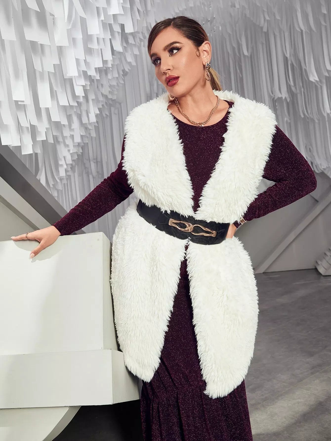 بالإضافة إلى معطف تيدي مفتوح من الأمام بدون أكمام وبدون حزام