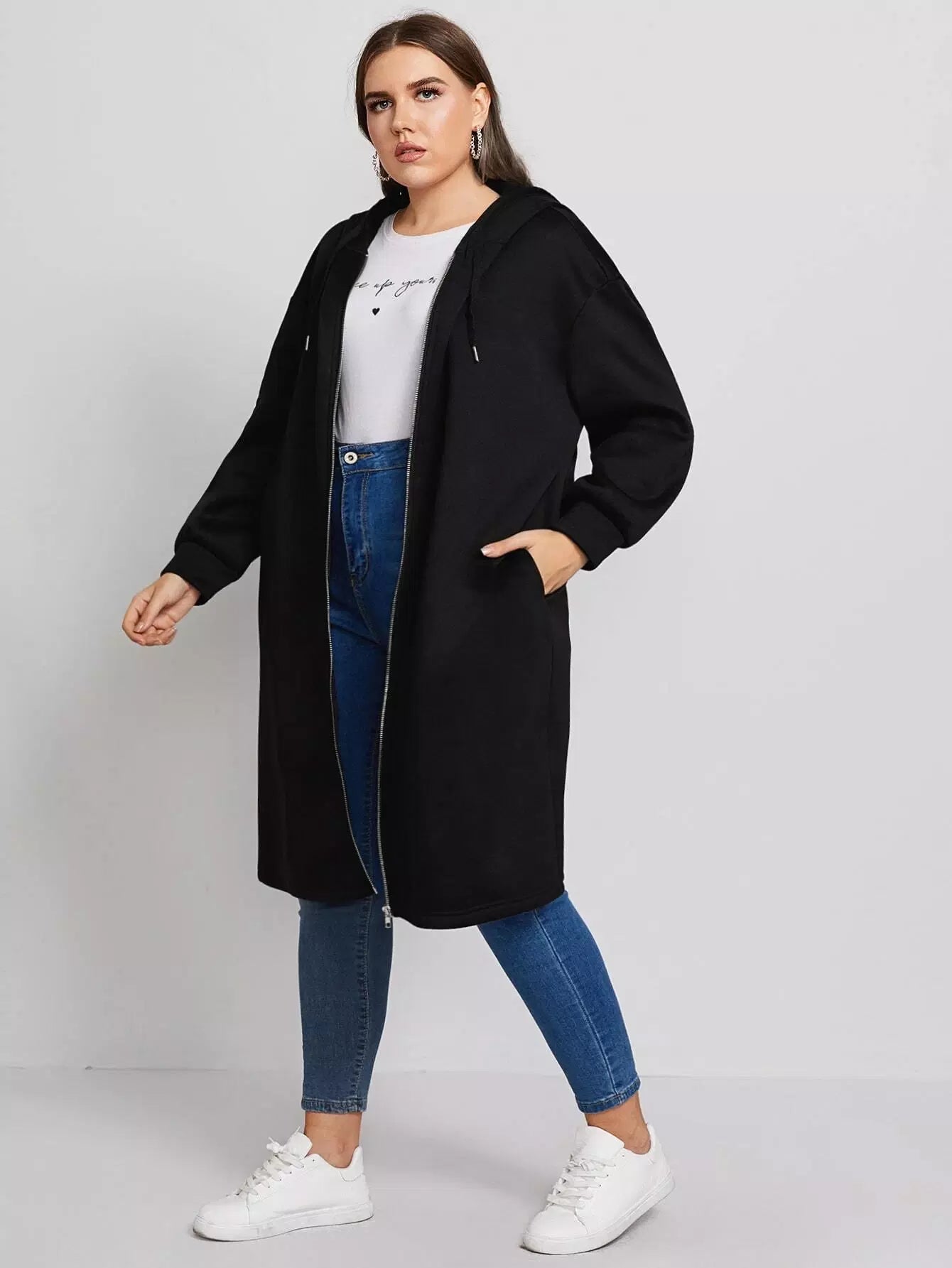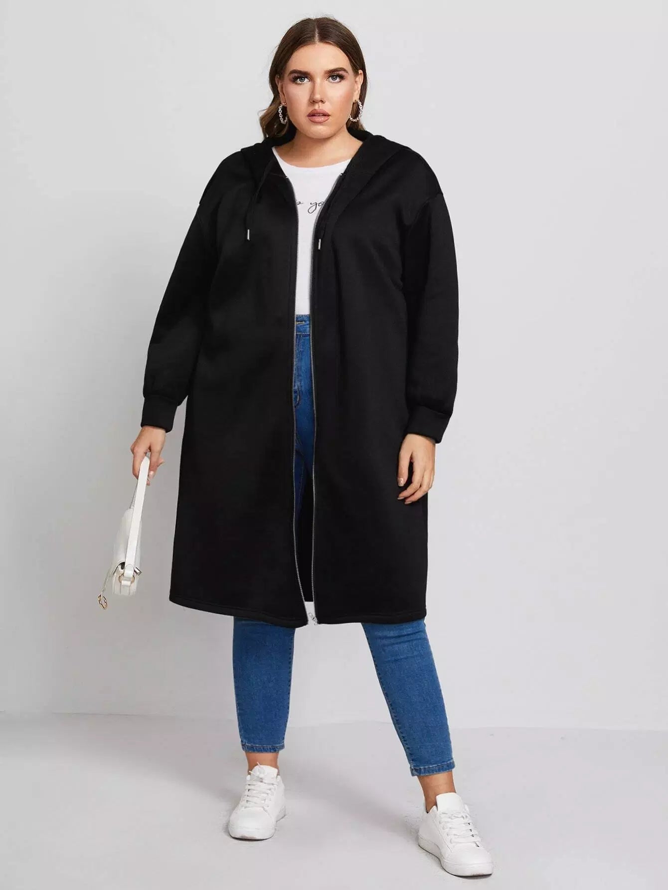 نحيف - مقاس كبير الصلبة الرباط الرمز البريدي معطف مقنع