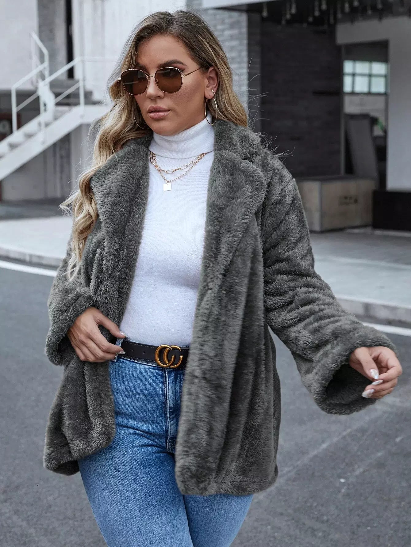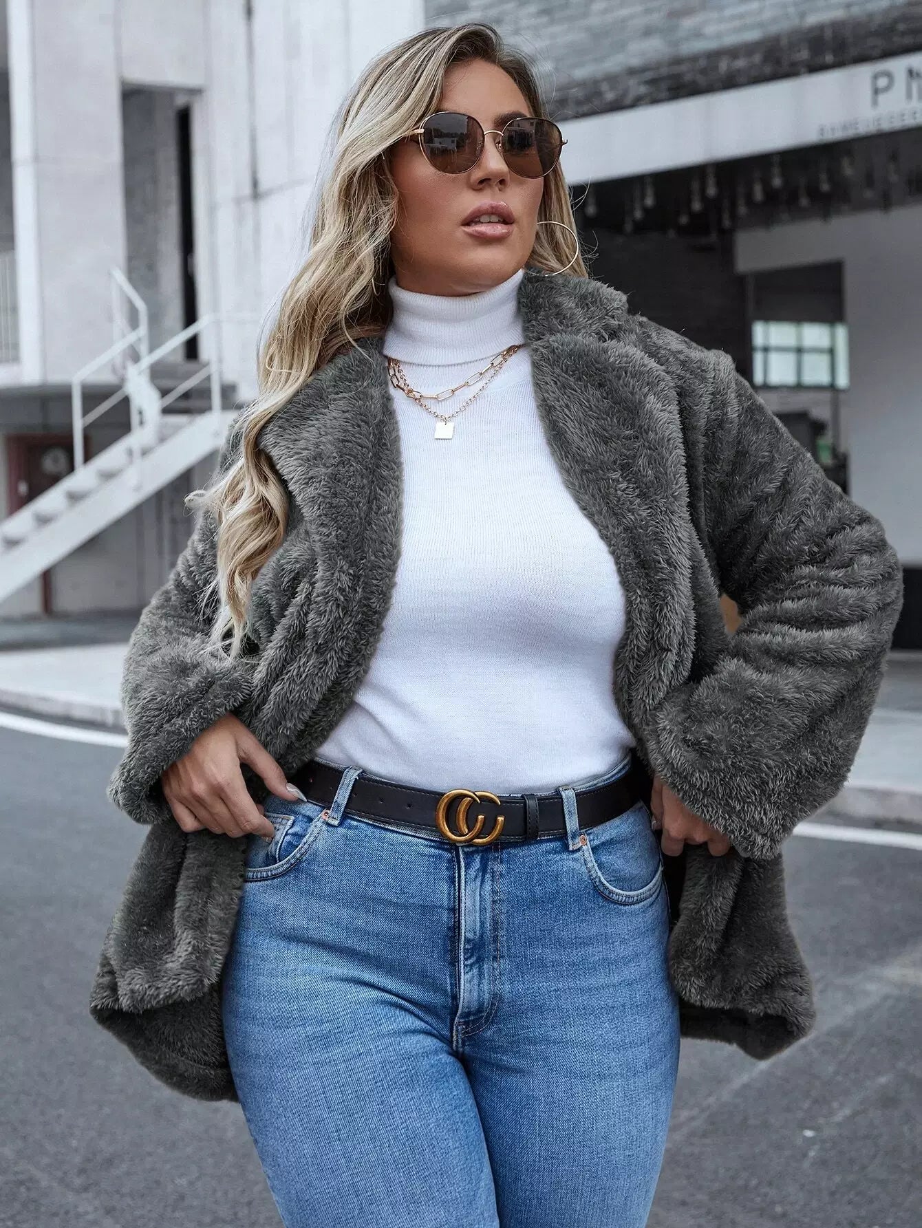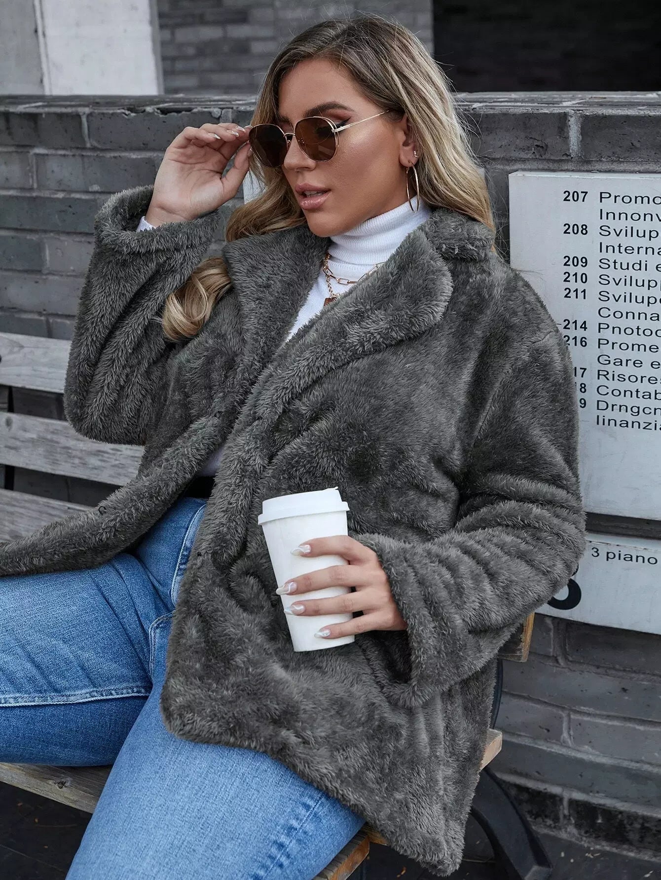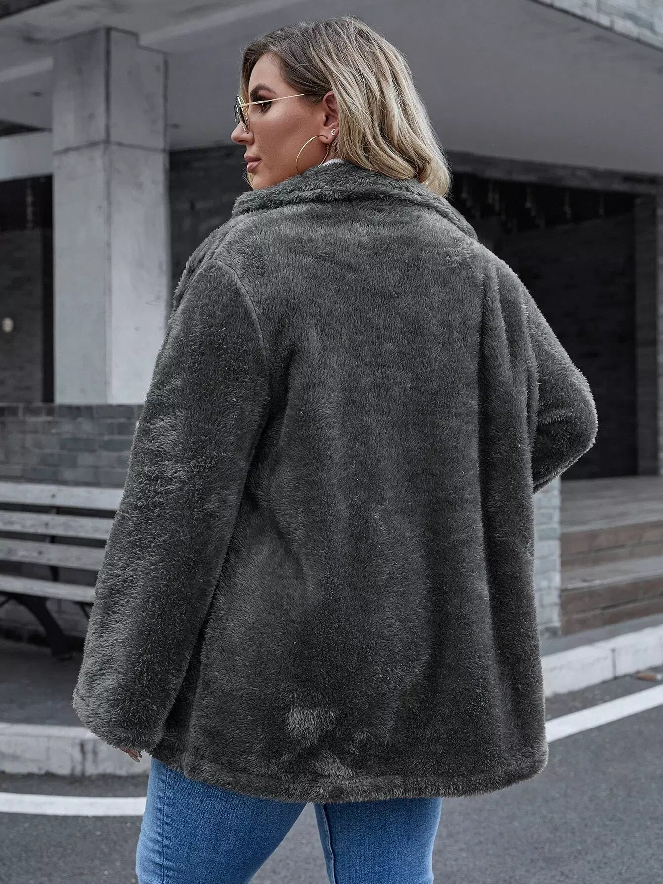 معطف تيدي برقبة رقبة برقبة سادة زائد