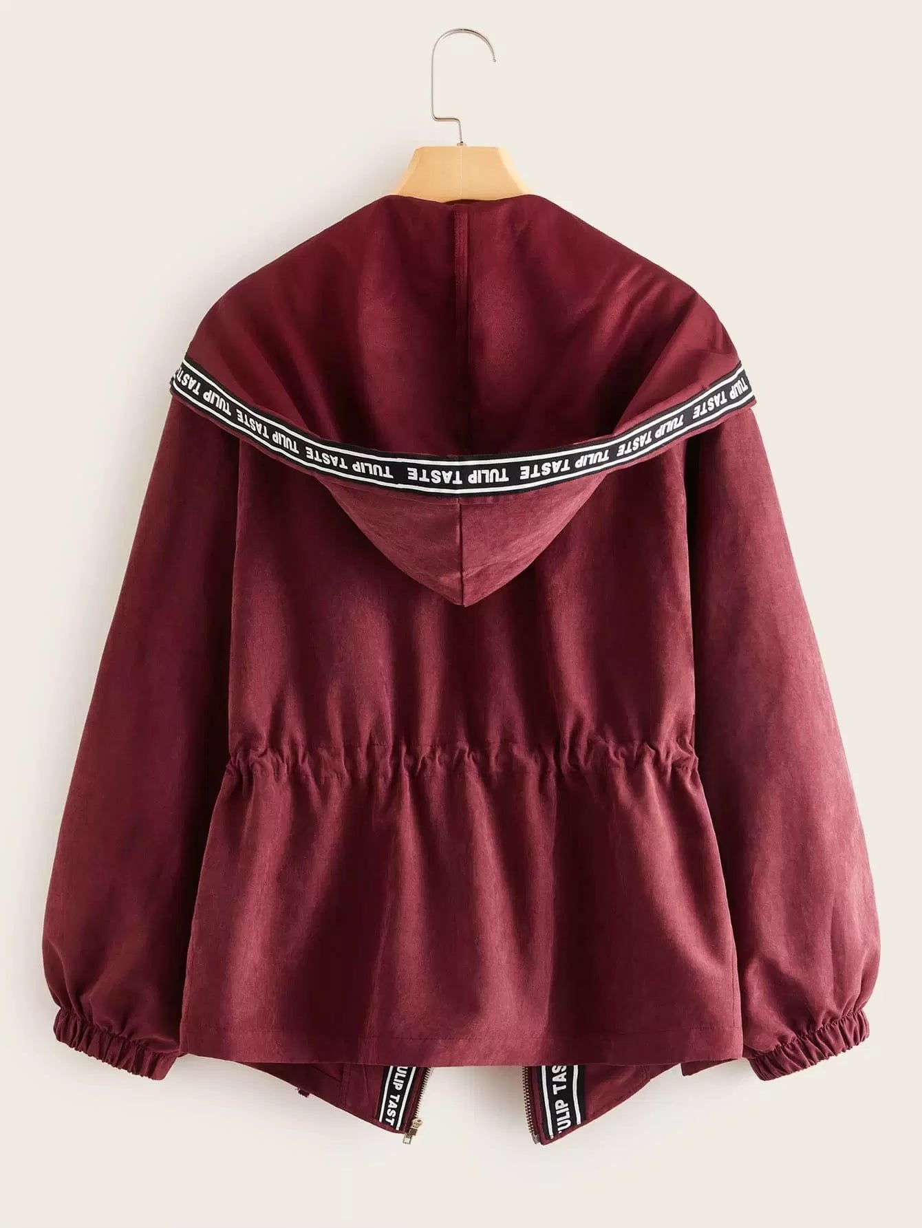 جاكيت هودي برباط على الخصر برباط على شكل شريط لاصق