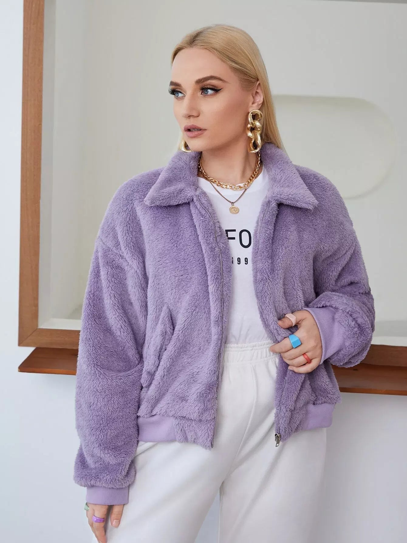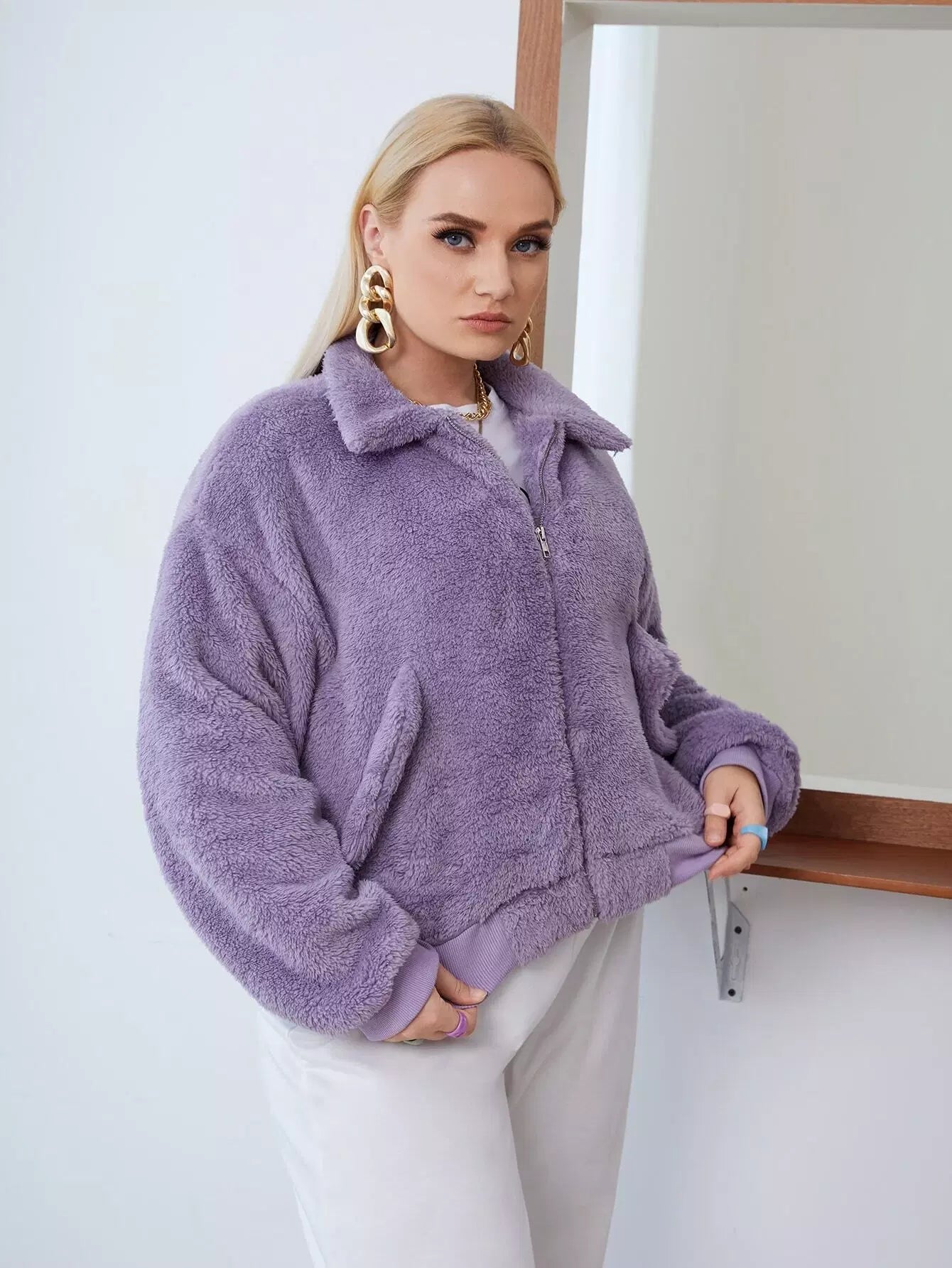 جاكيت فلانيلا منسدل الأكتاف زائد