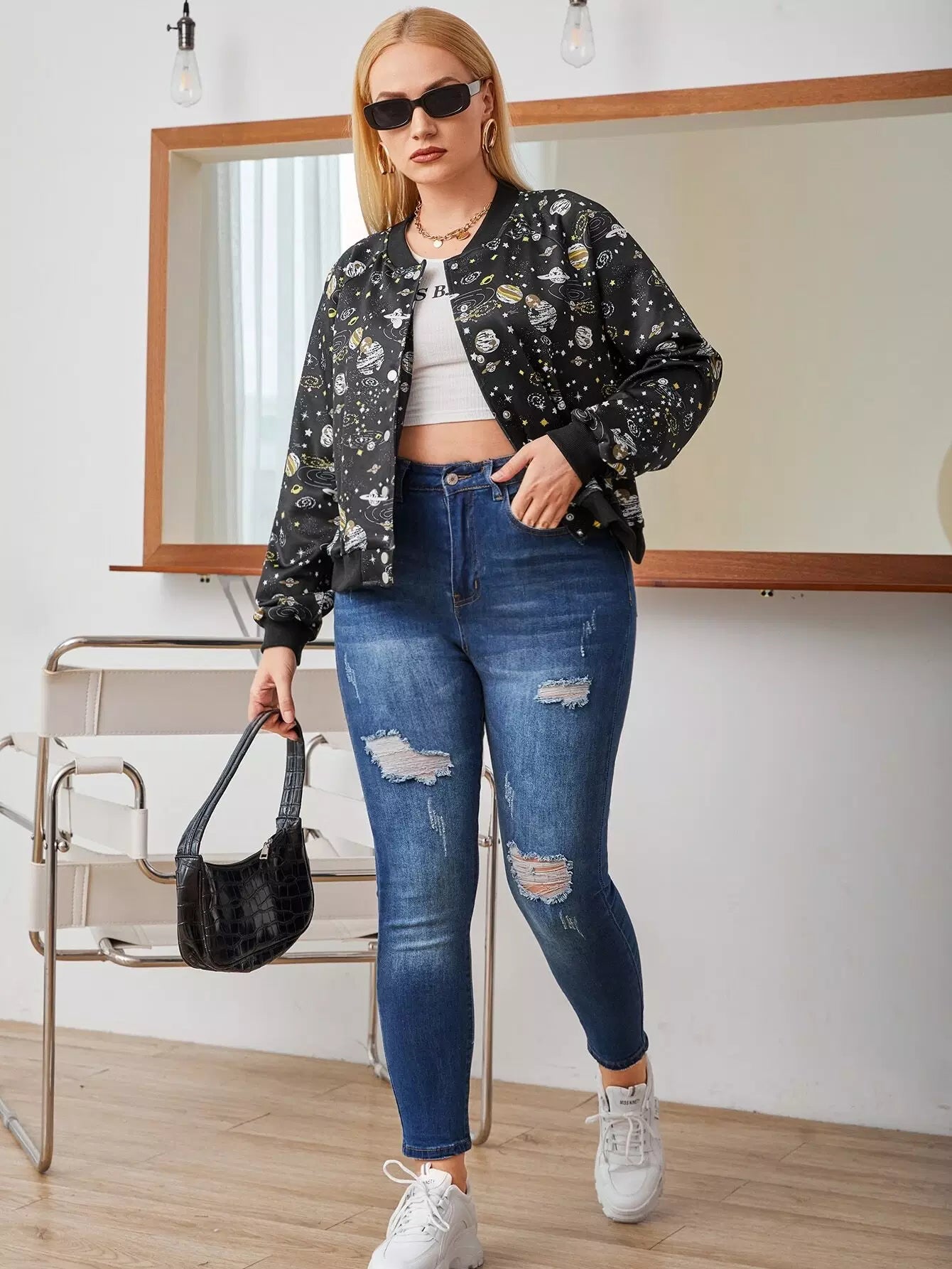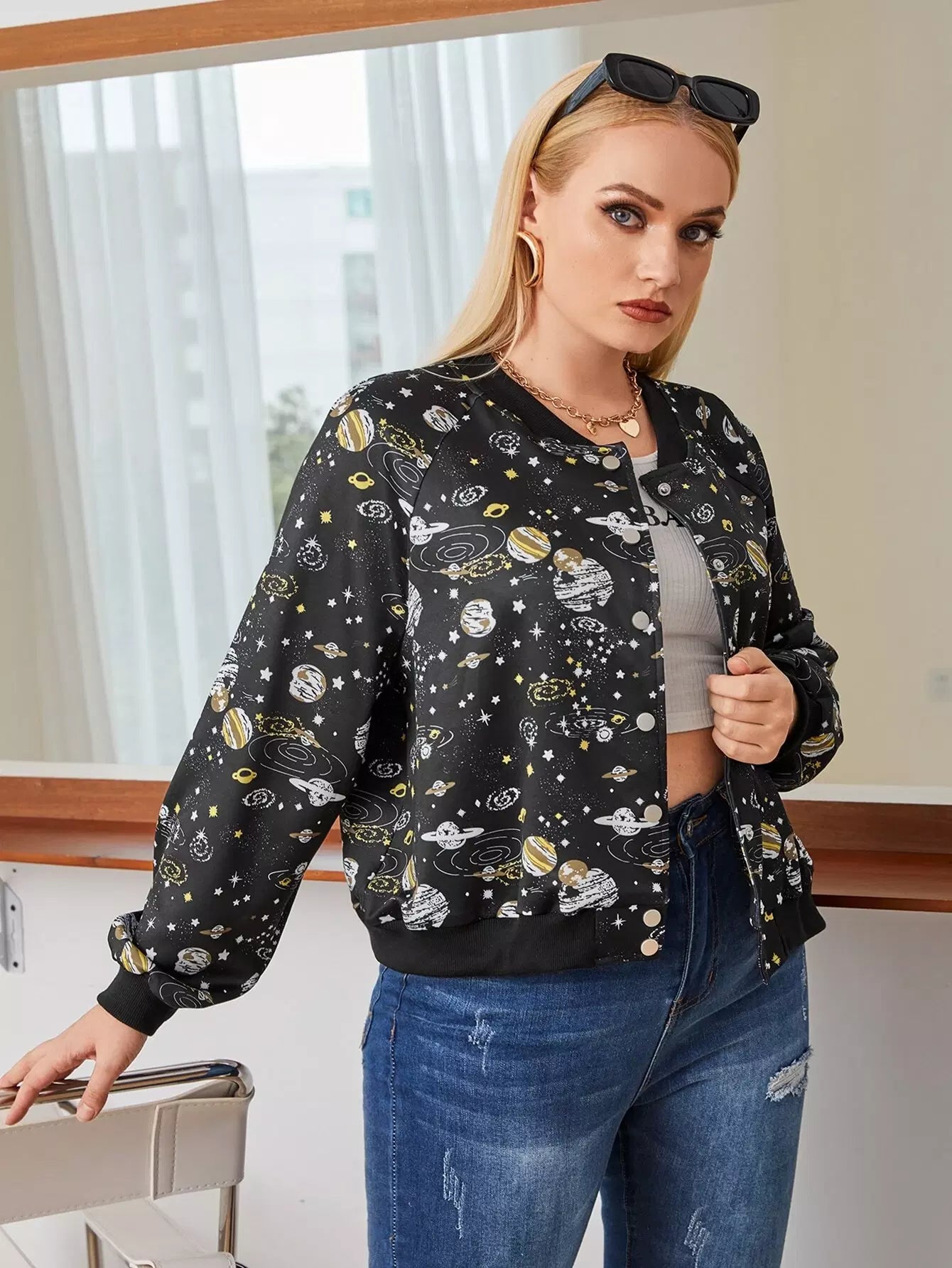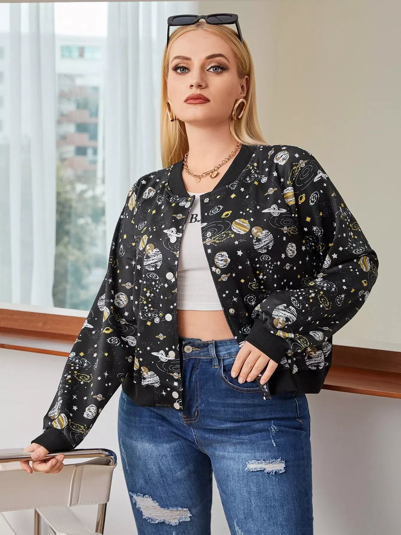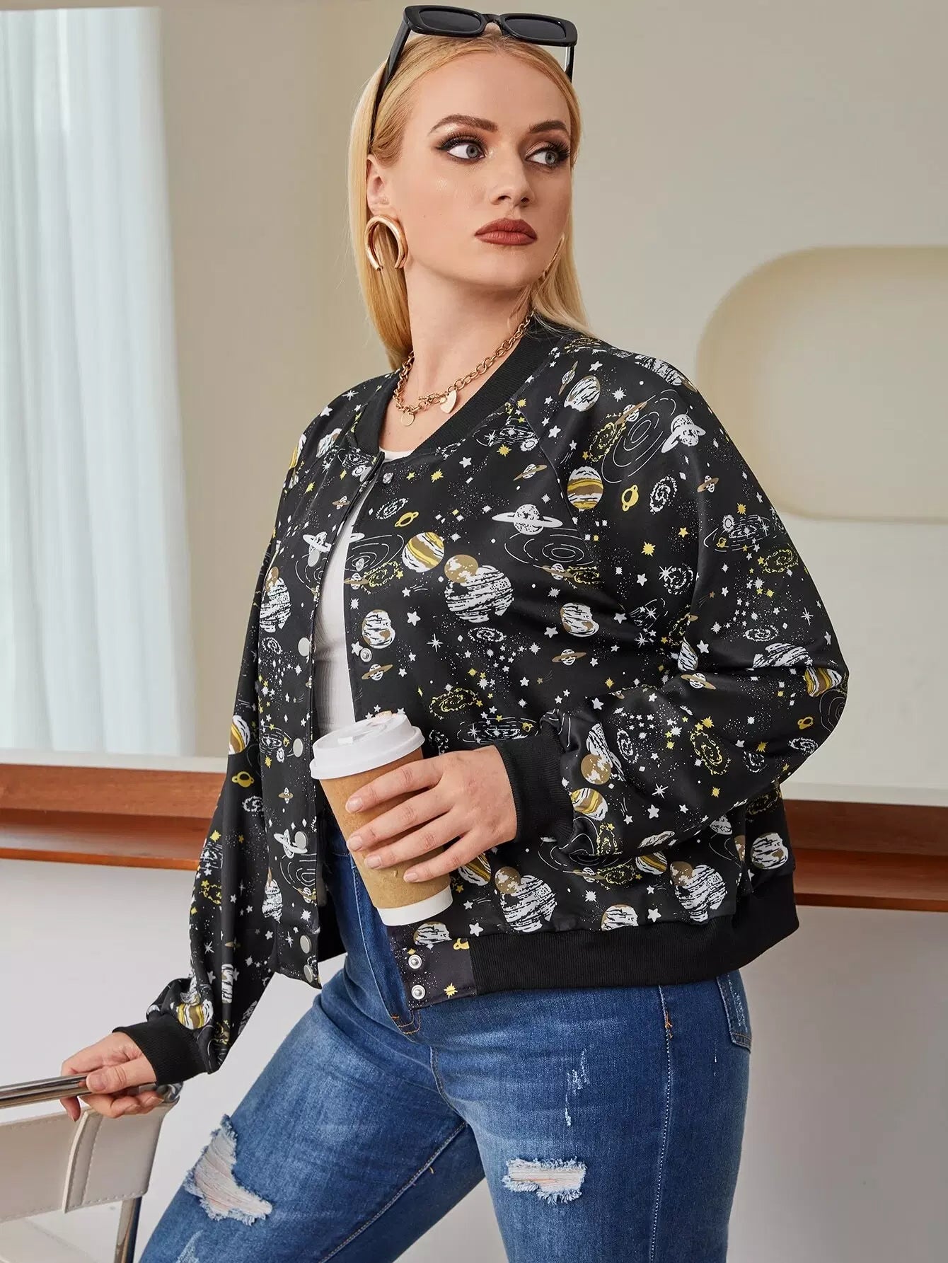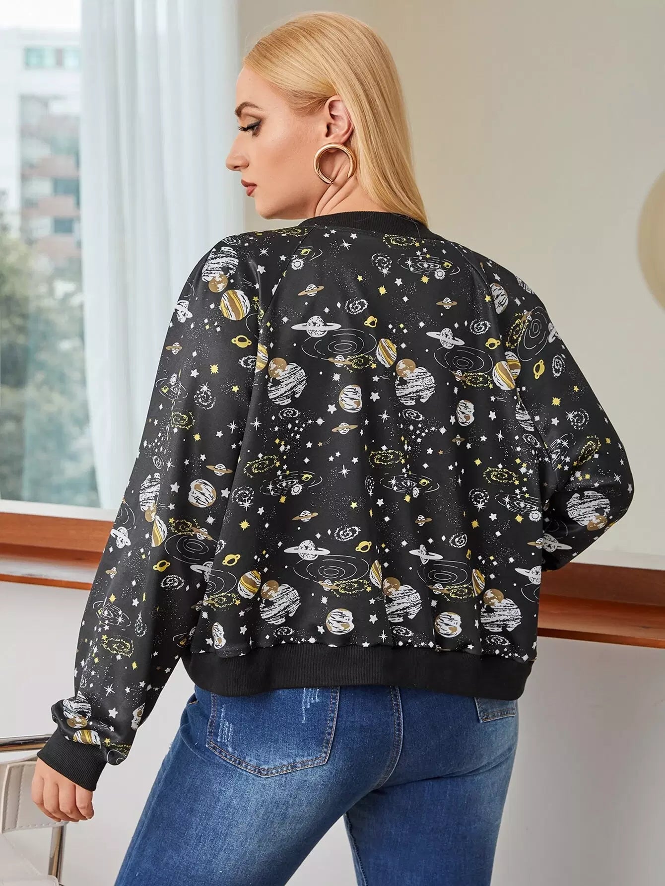 جاكيت بومبر بأكمام سحاب مطبوع عليه طبعة مجرة زائد
