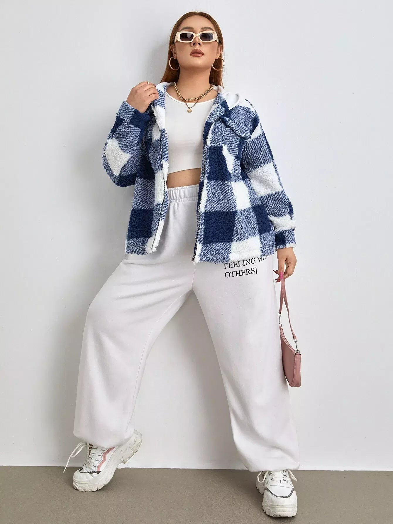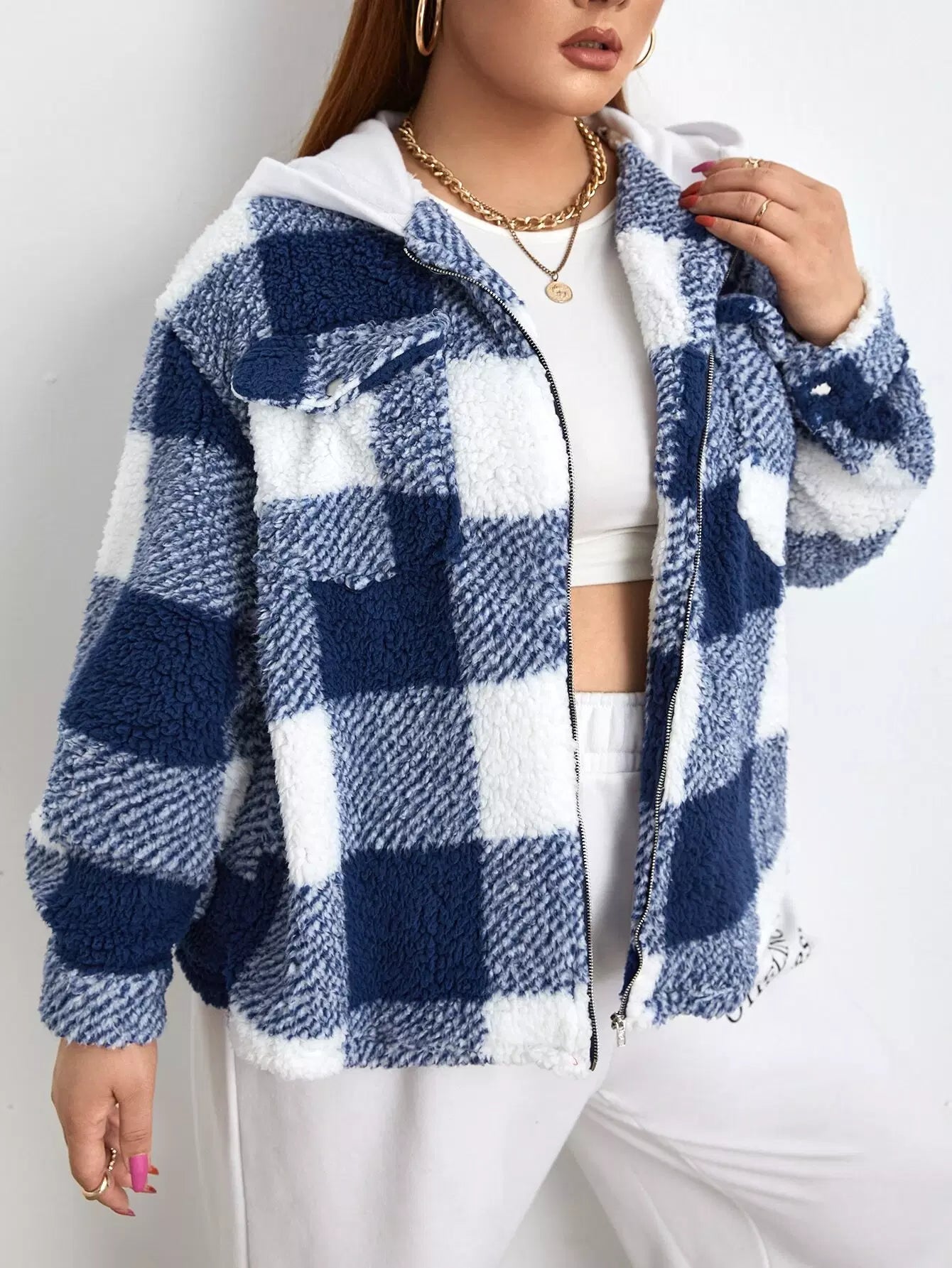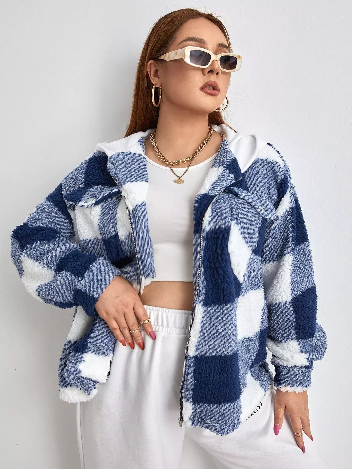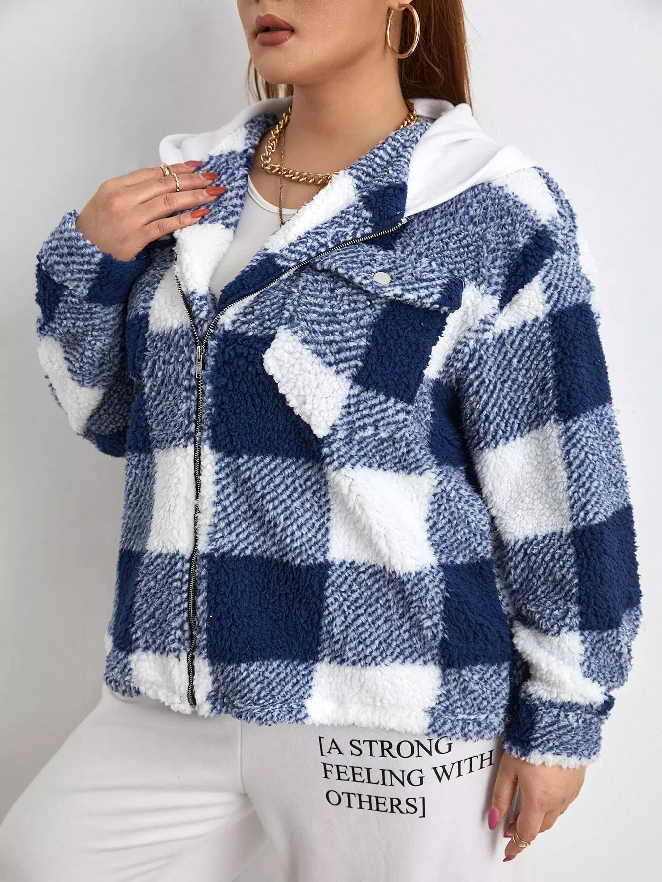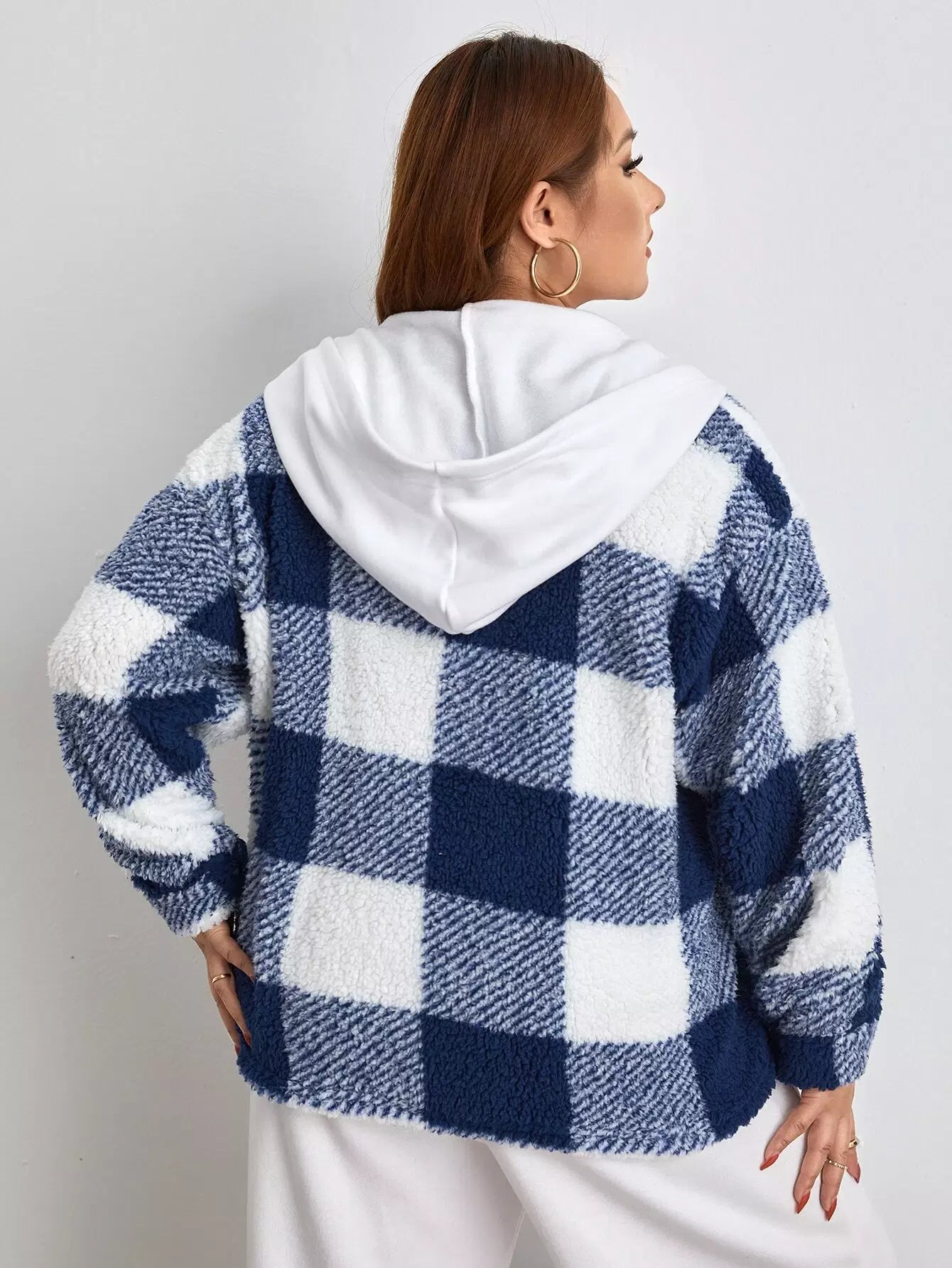 جاكيت بقبعة بغطاء رأس بنقشة قماش قطني زائد
