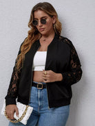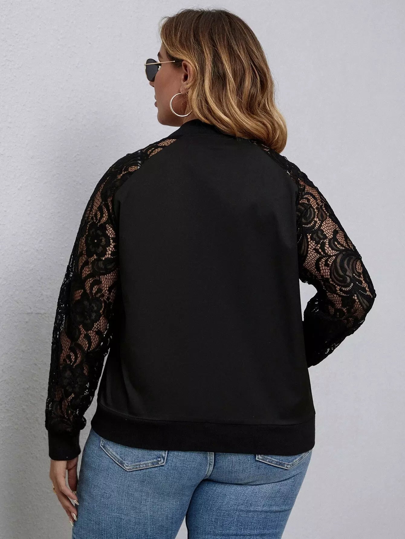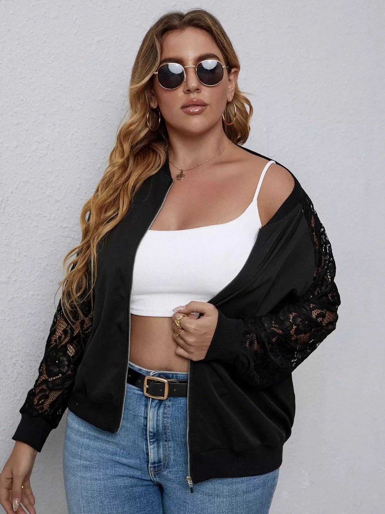 جاكيت بومبر بأكمام من الدانتيل المخرم بأكمام من الدانتيل المخرم