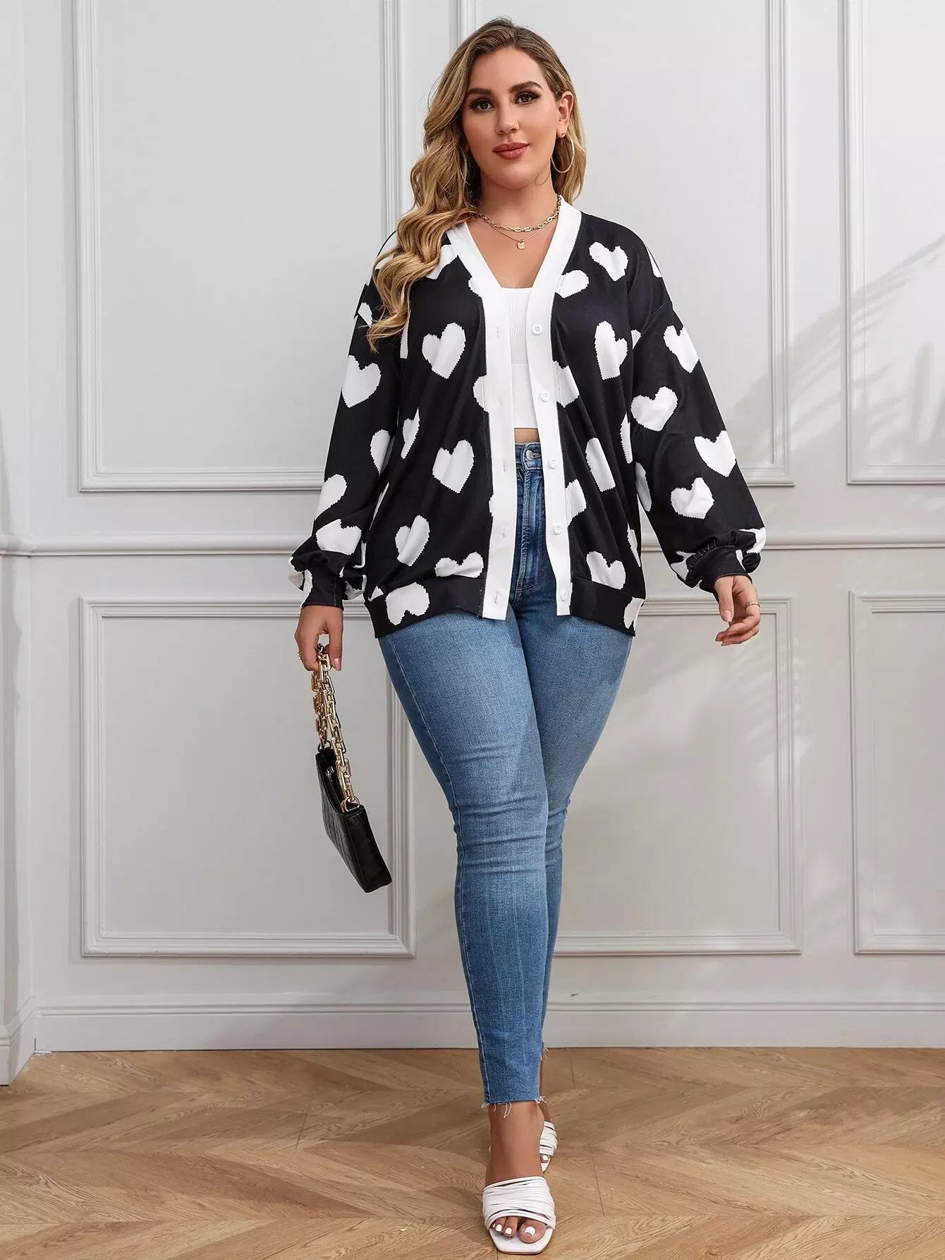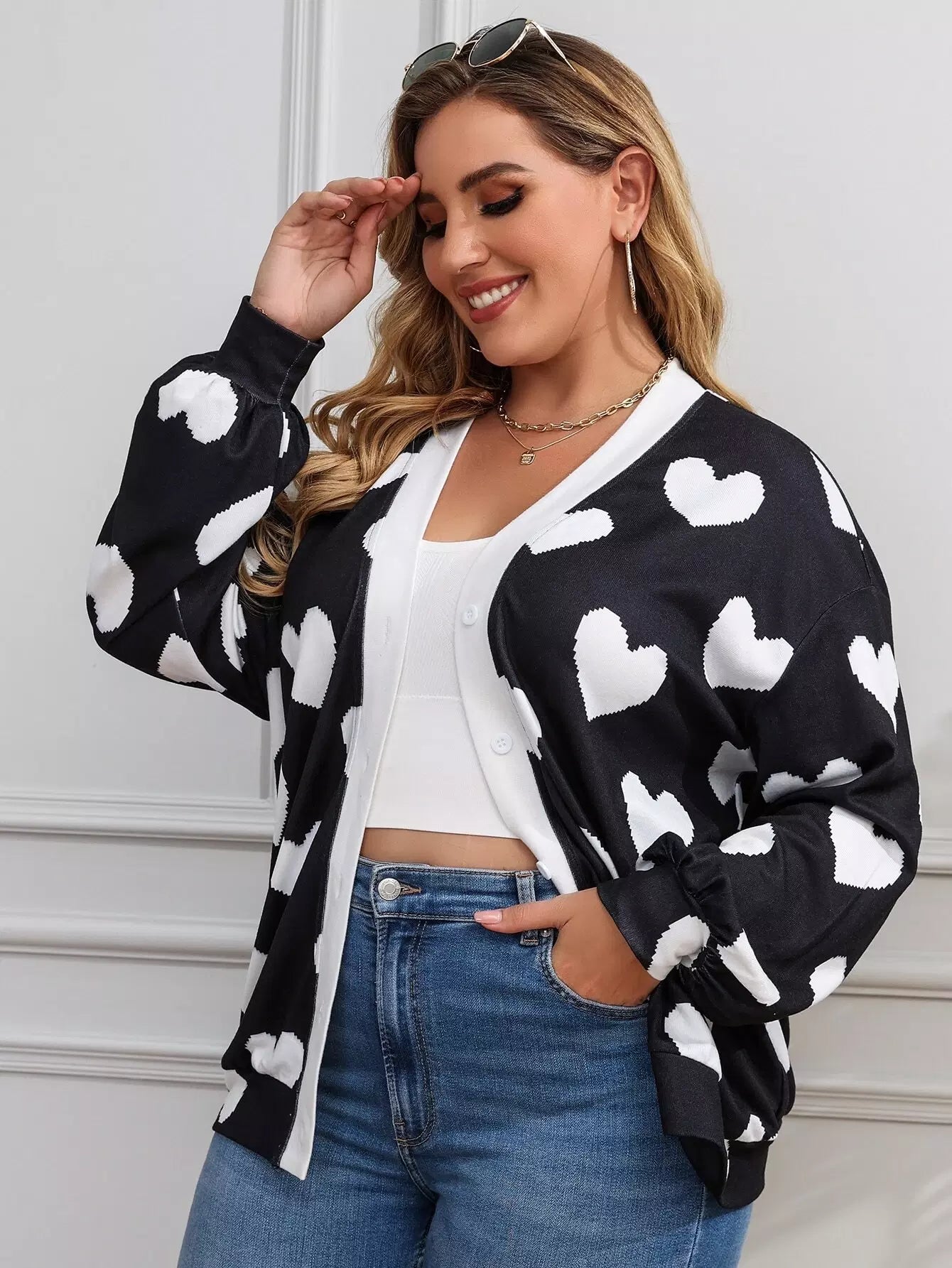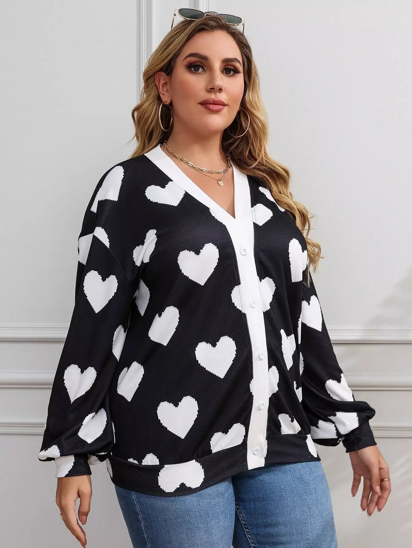 جاكيت بدون أكتاف منسدلة بطبعة قلب مطبوع