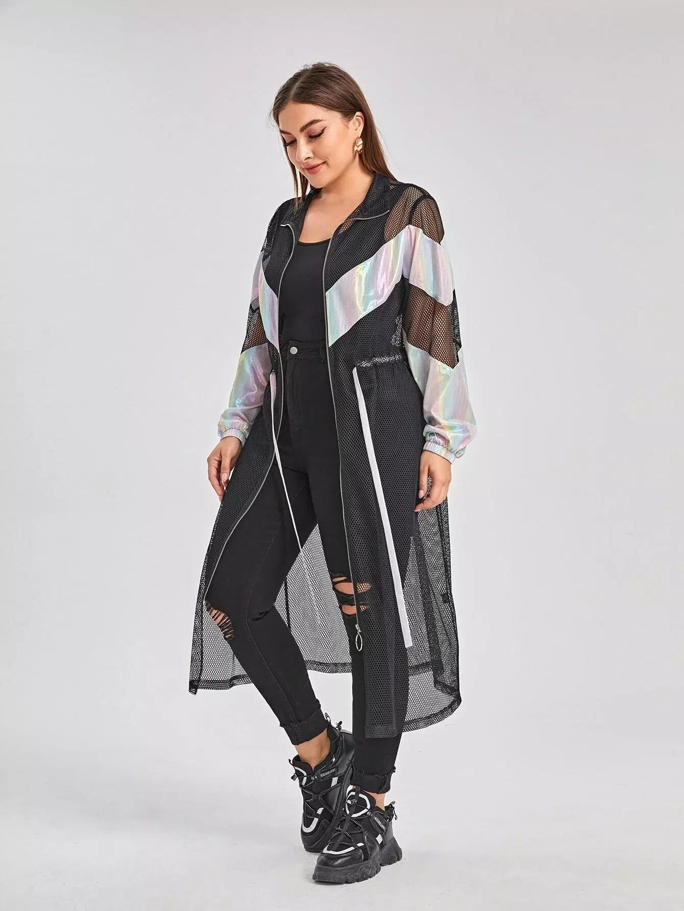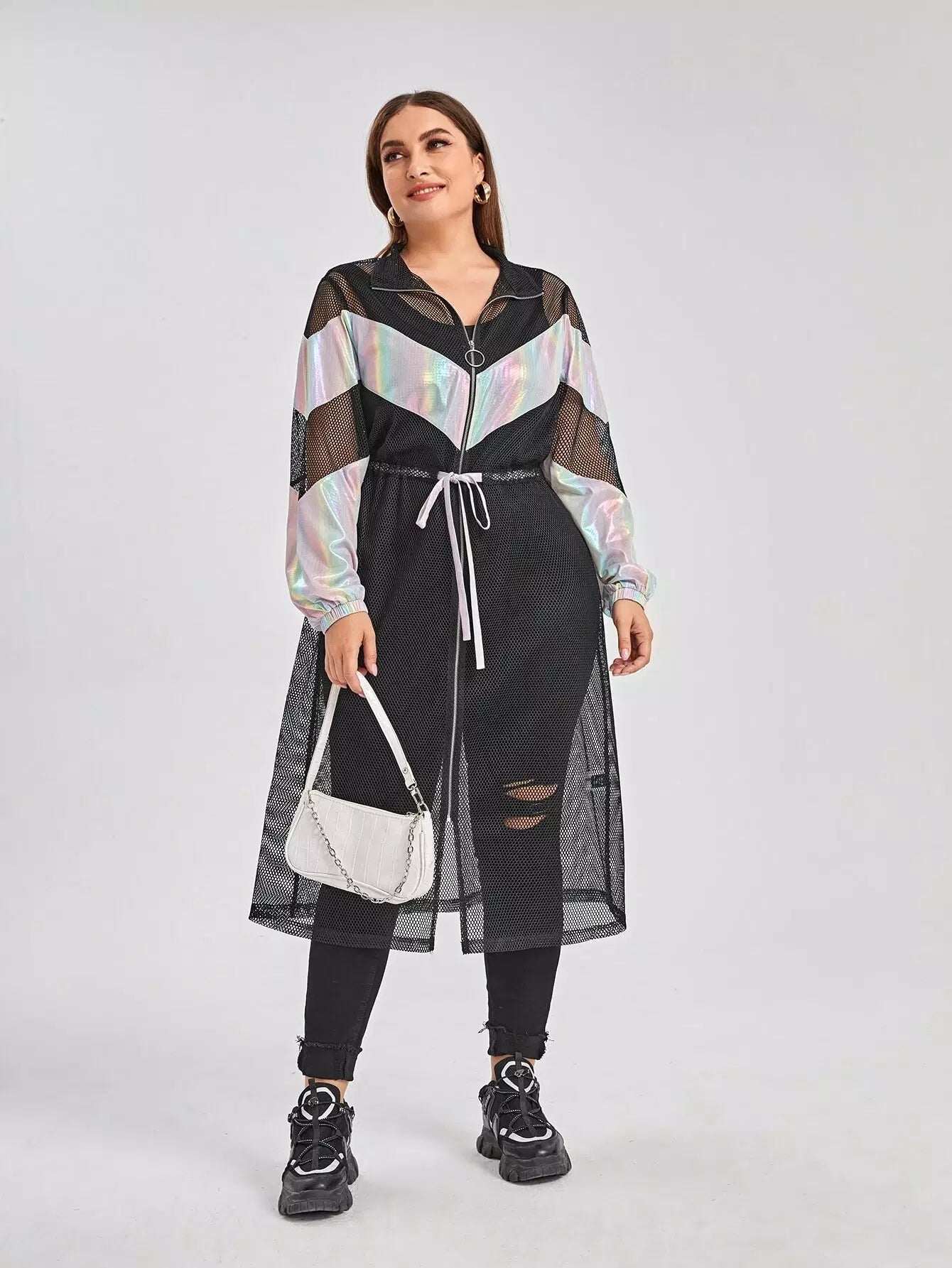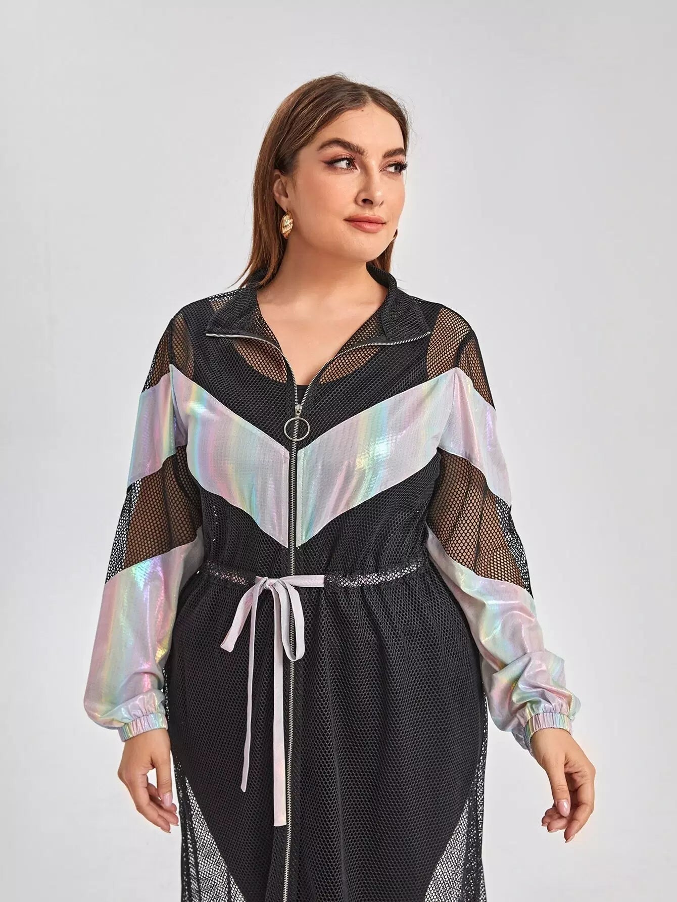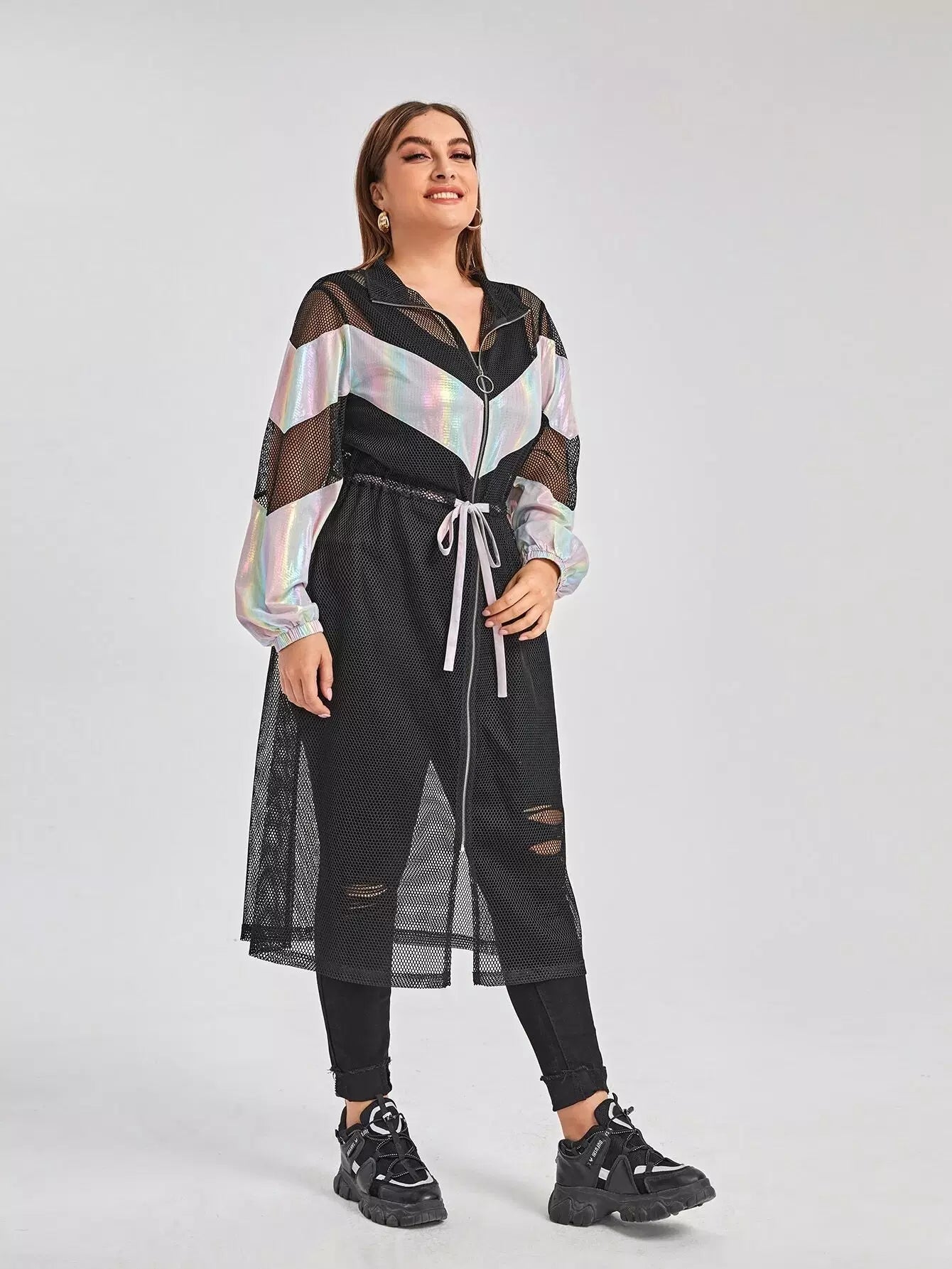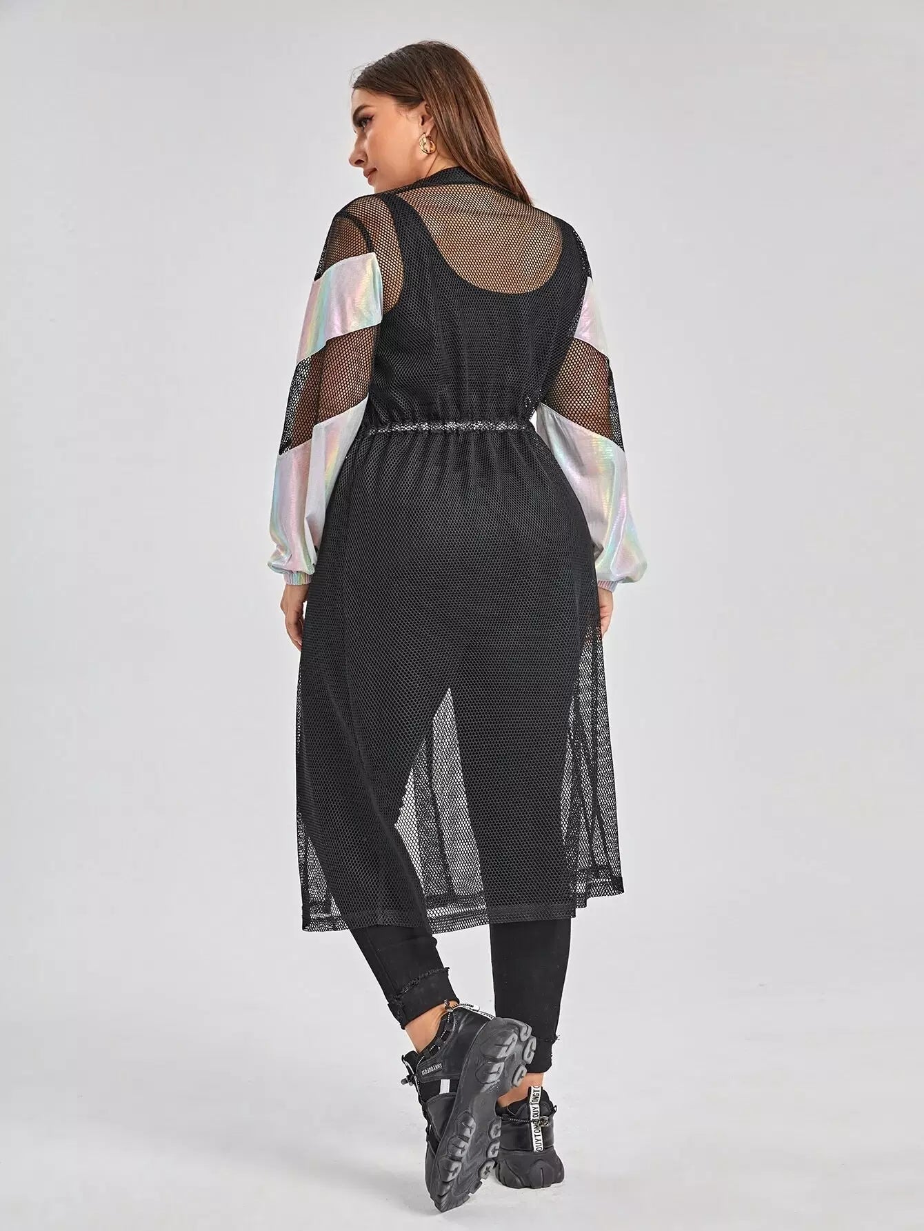 جاكيت شبكي بخصر شبكي برباط مربوط على الخصر
