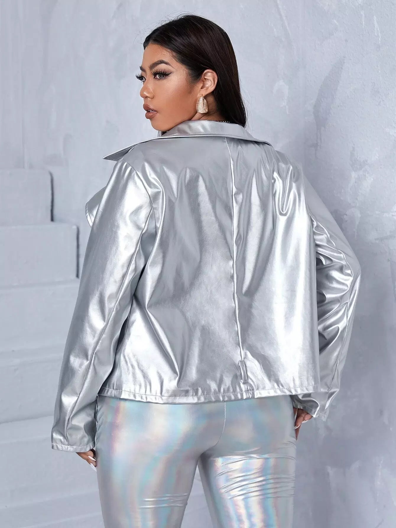 جاكيت موتو برقبة بلاس برقبة على شكل ياقة زائد