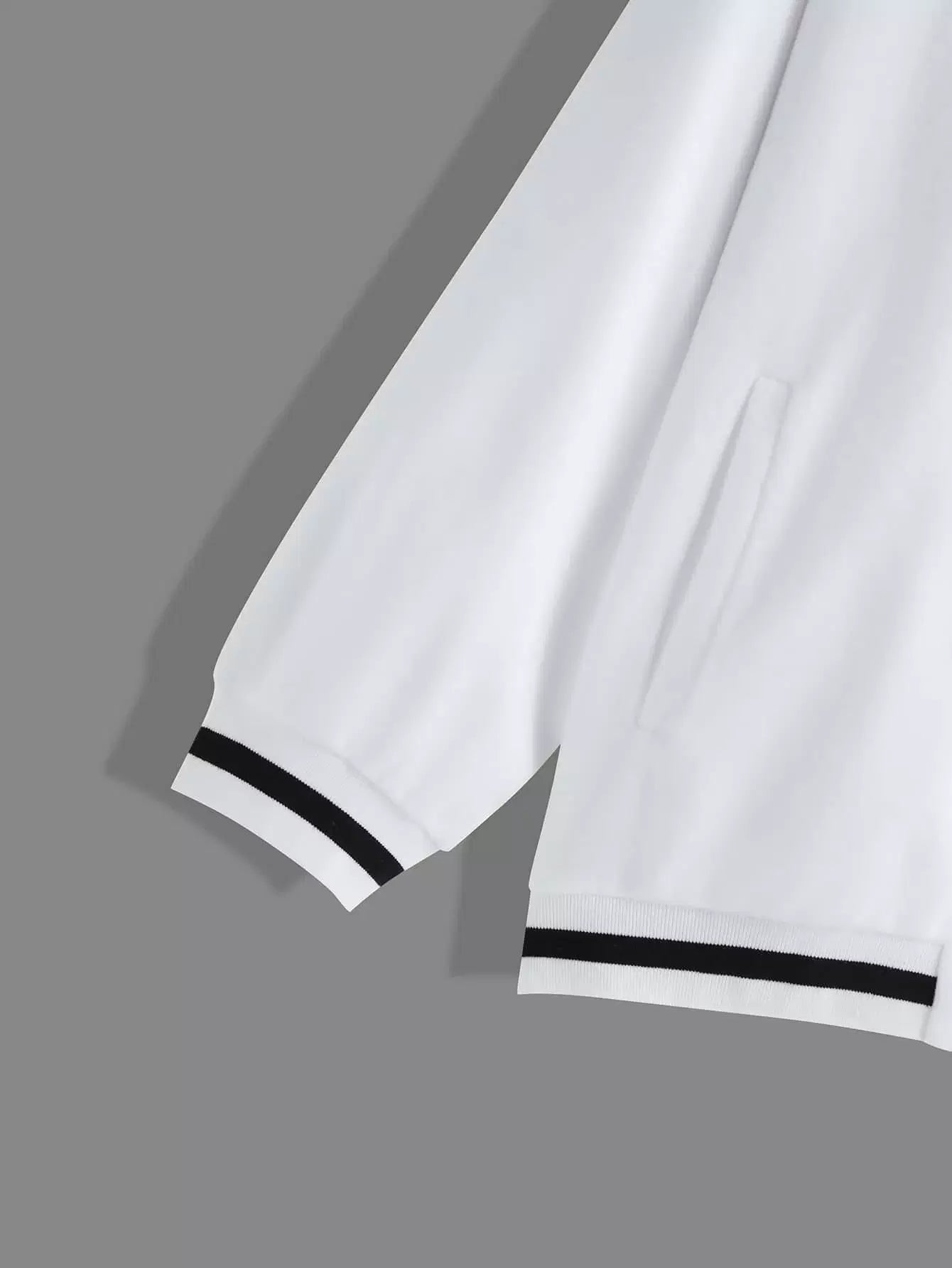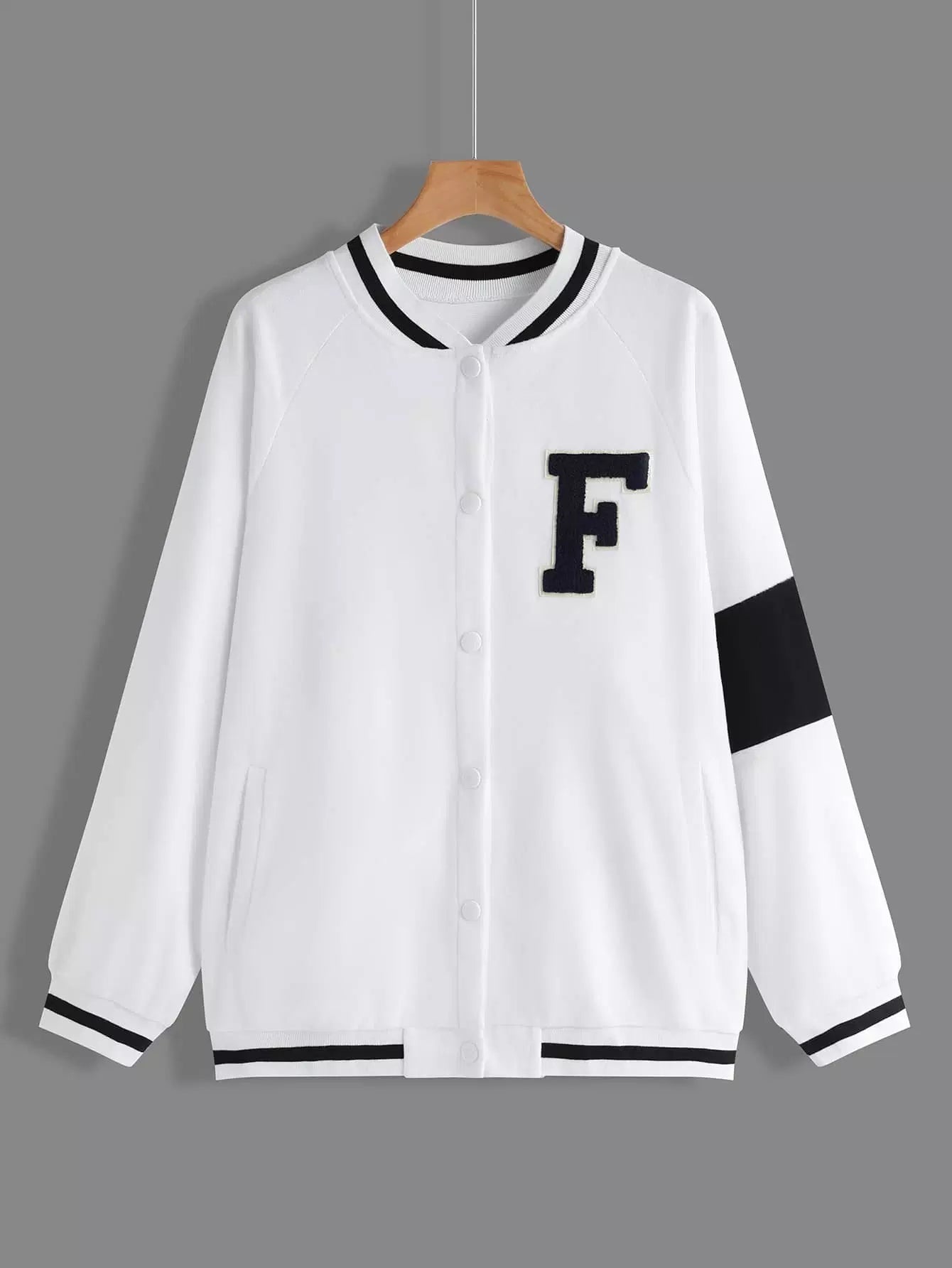 جاكيت بأكمام راجلان بأكمام مزينة بنقوش على شكل حرف بلس بلون مغاير
