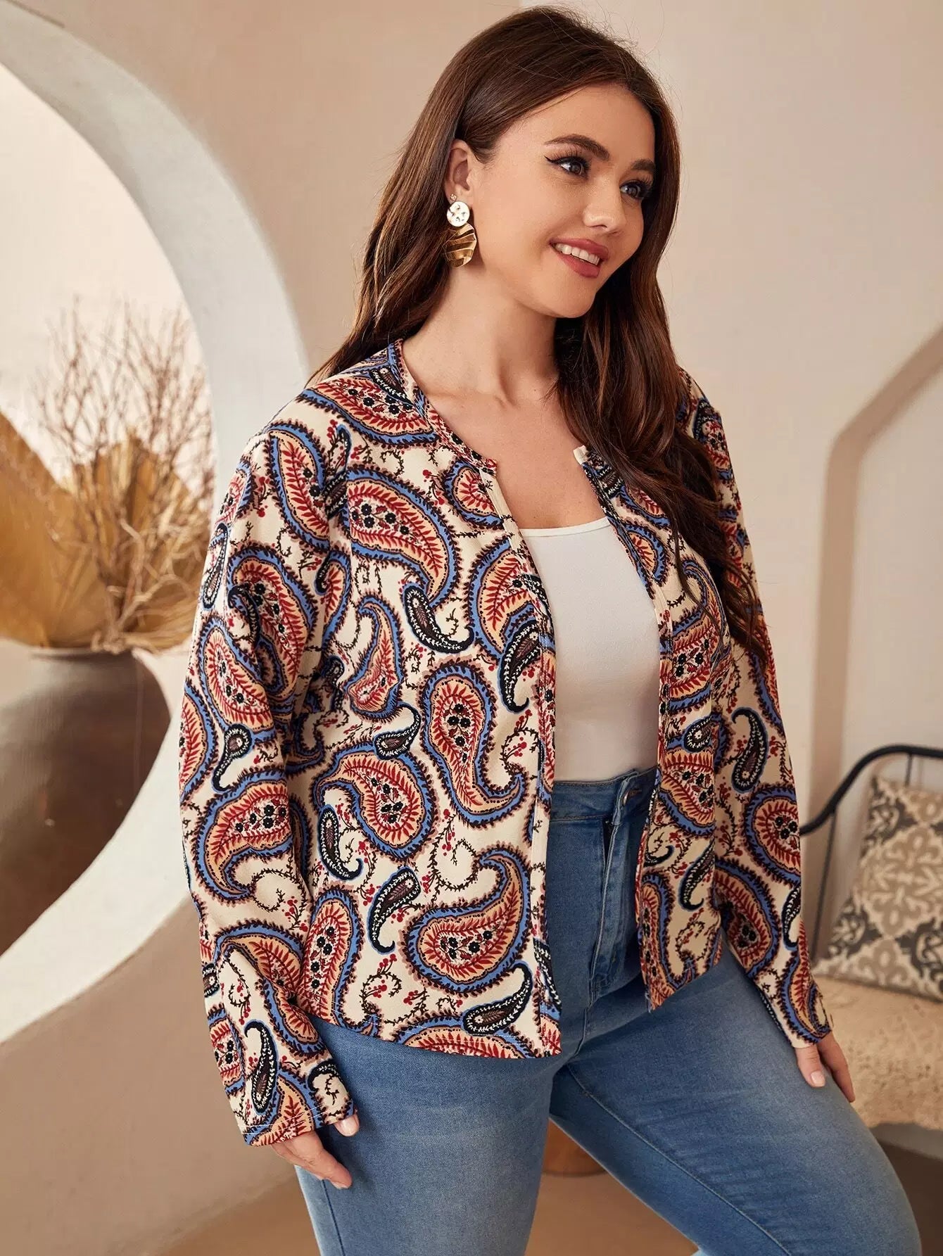 جاكيت مفتوح من الأمام بطبعة بيزلي بلس