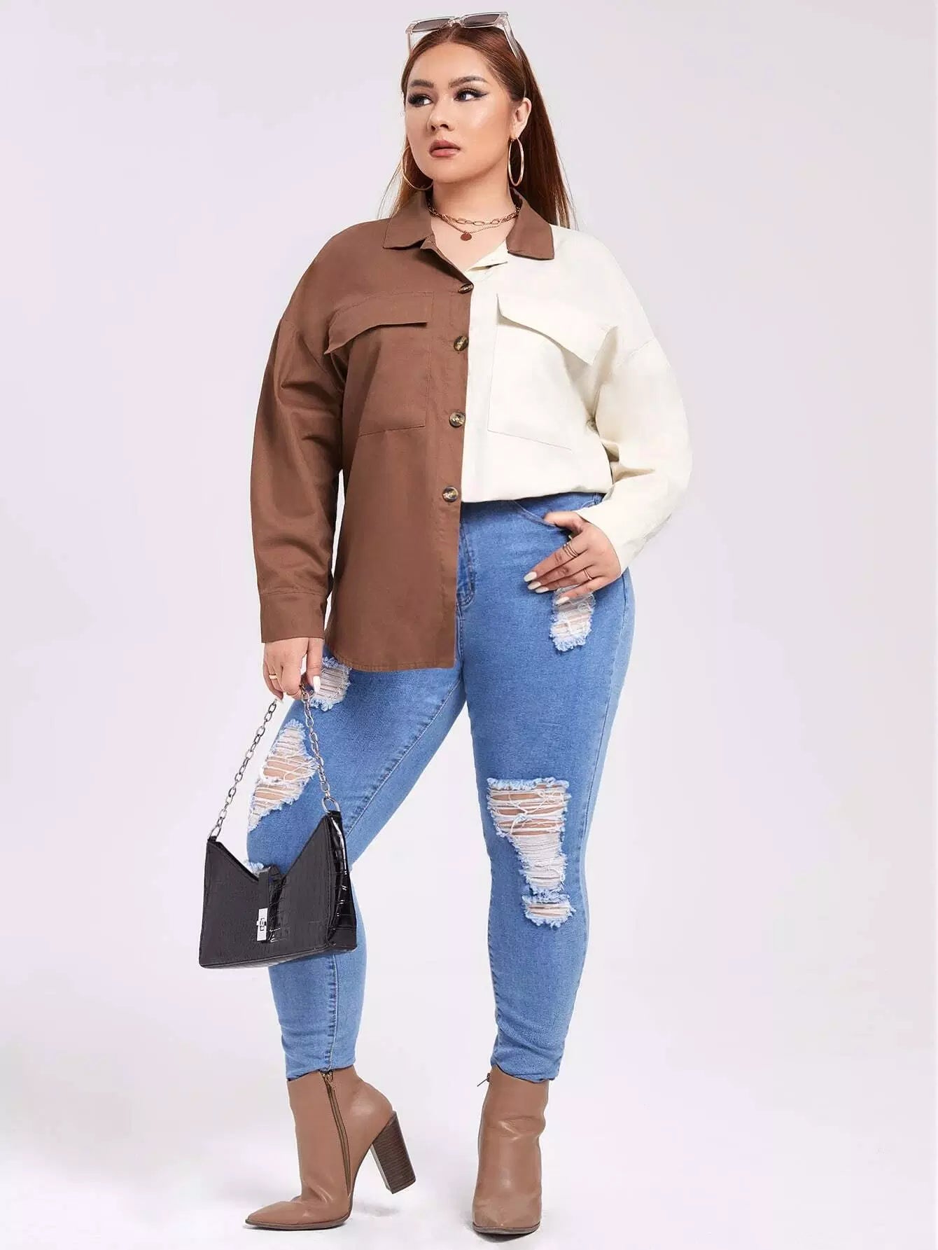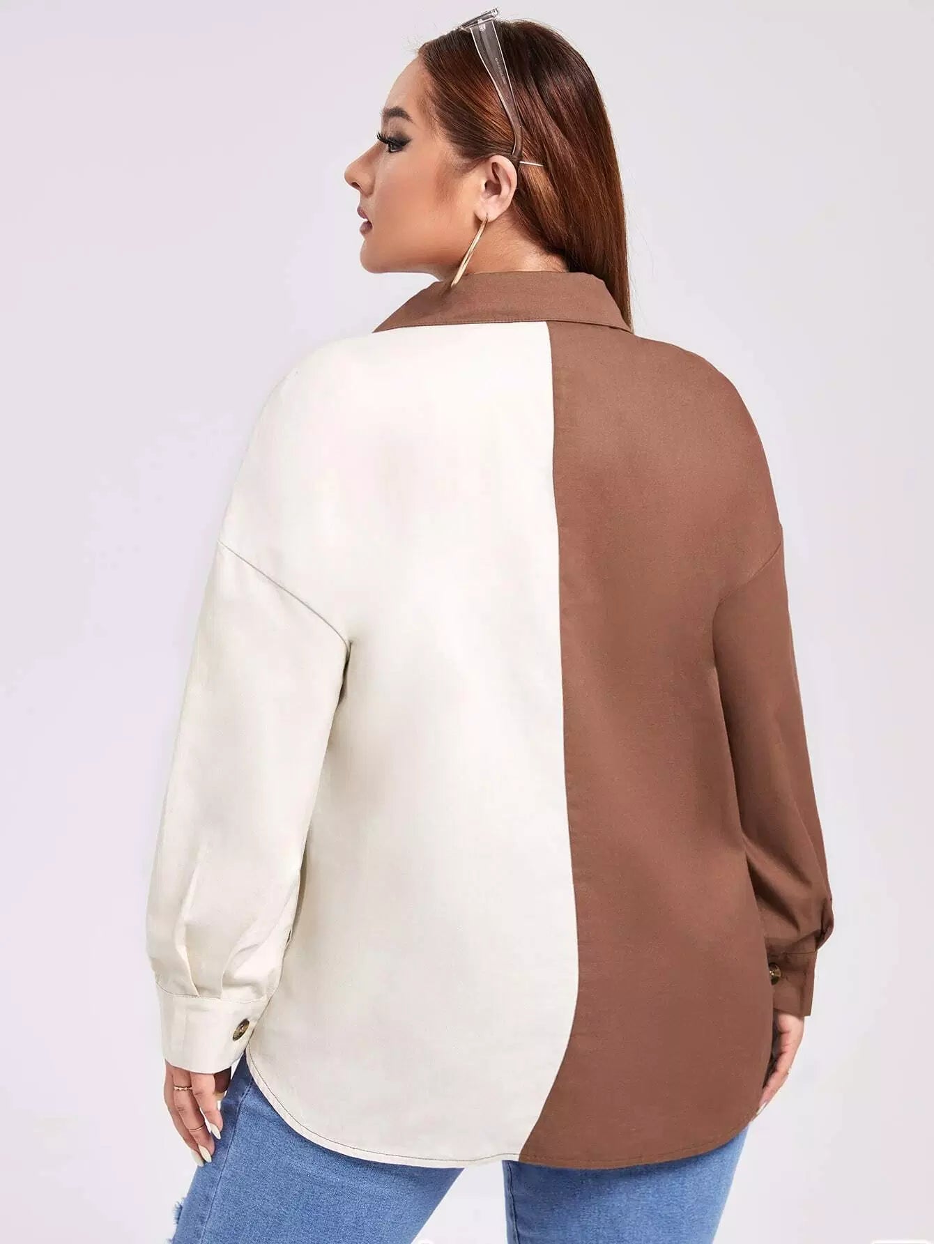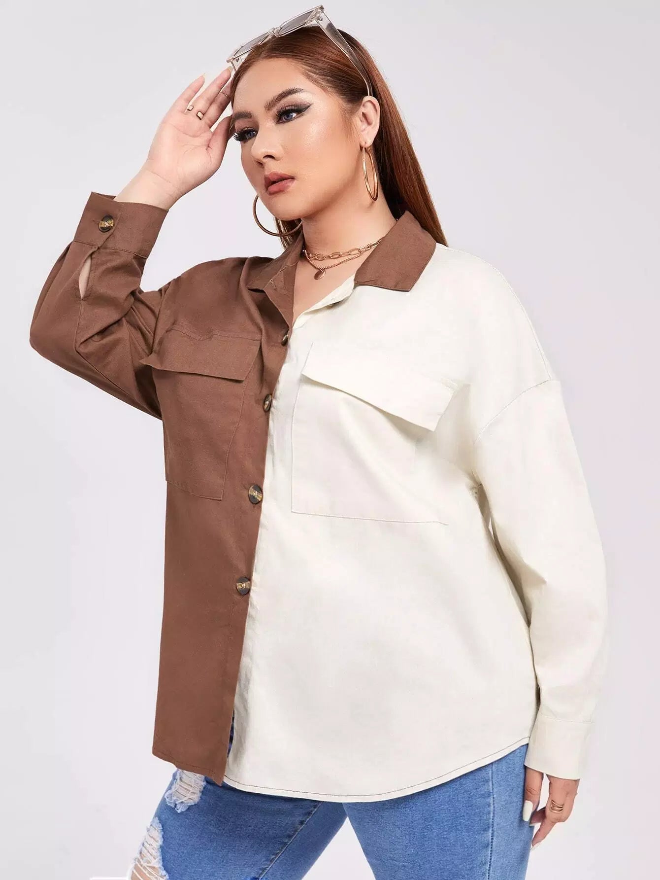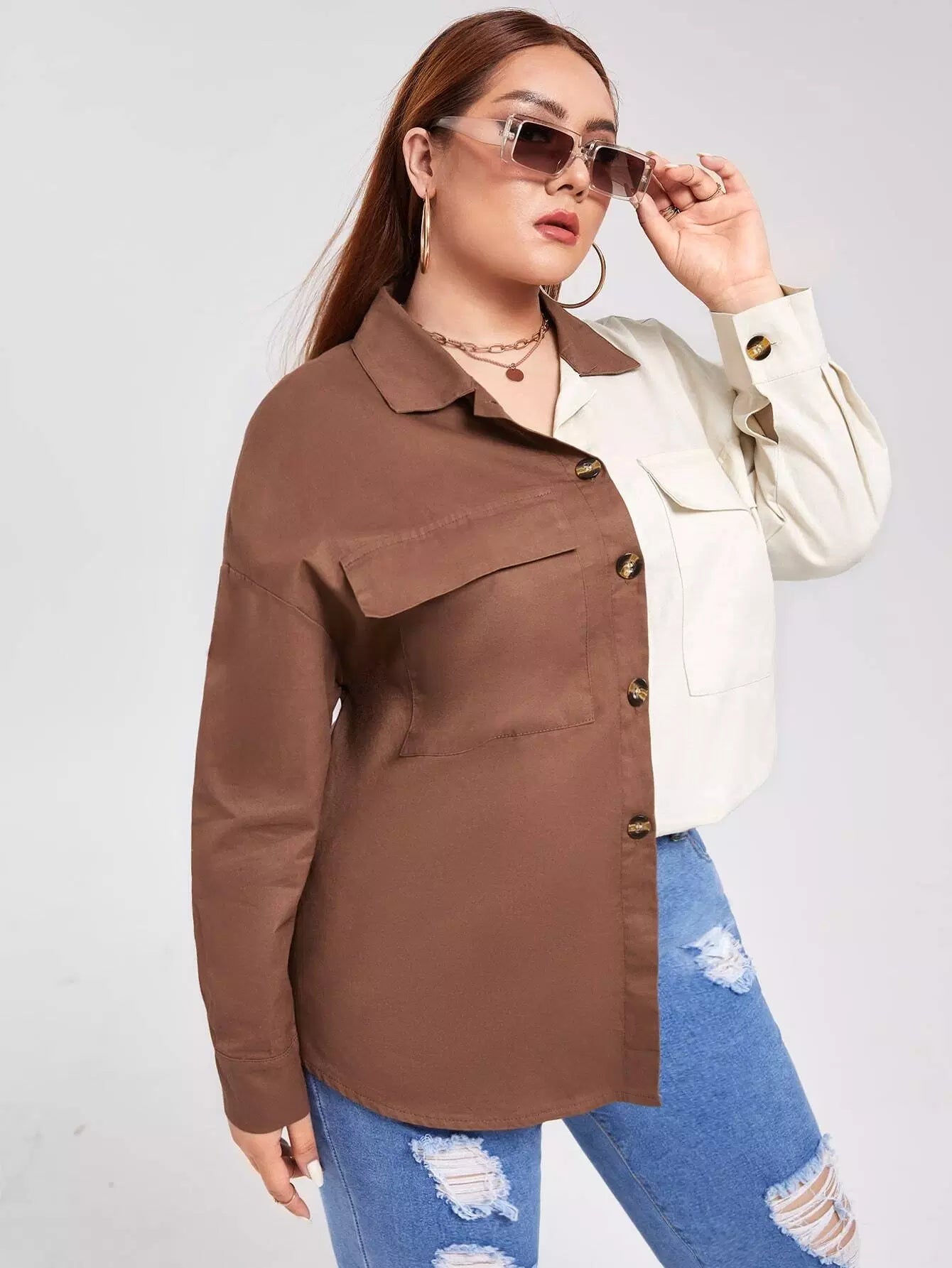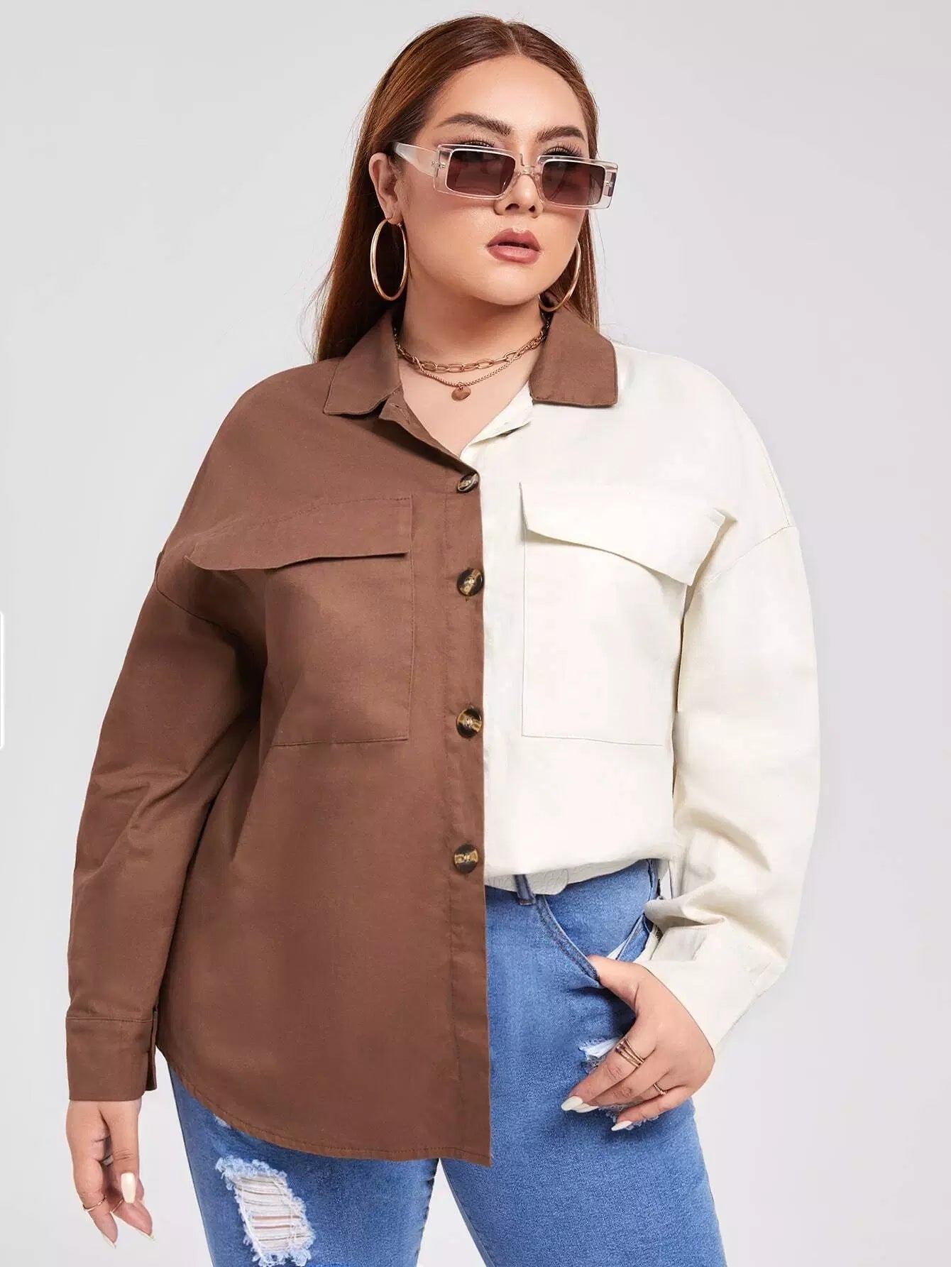 جاكيت بكتفين منسدل الكتف بلونين زائد بغطاء كتف منسدل