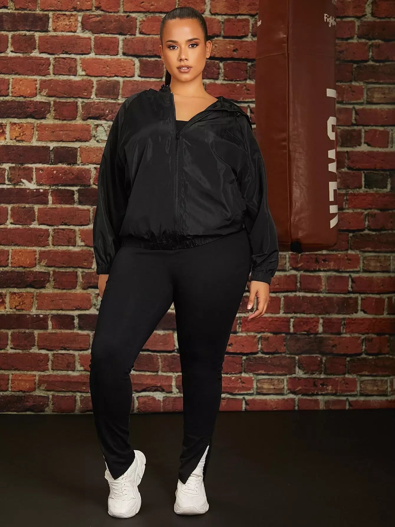 جاكيت بغطاء رأس بغطاء للرأس برباط بسحاب بلاس