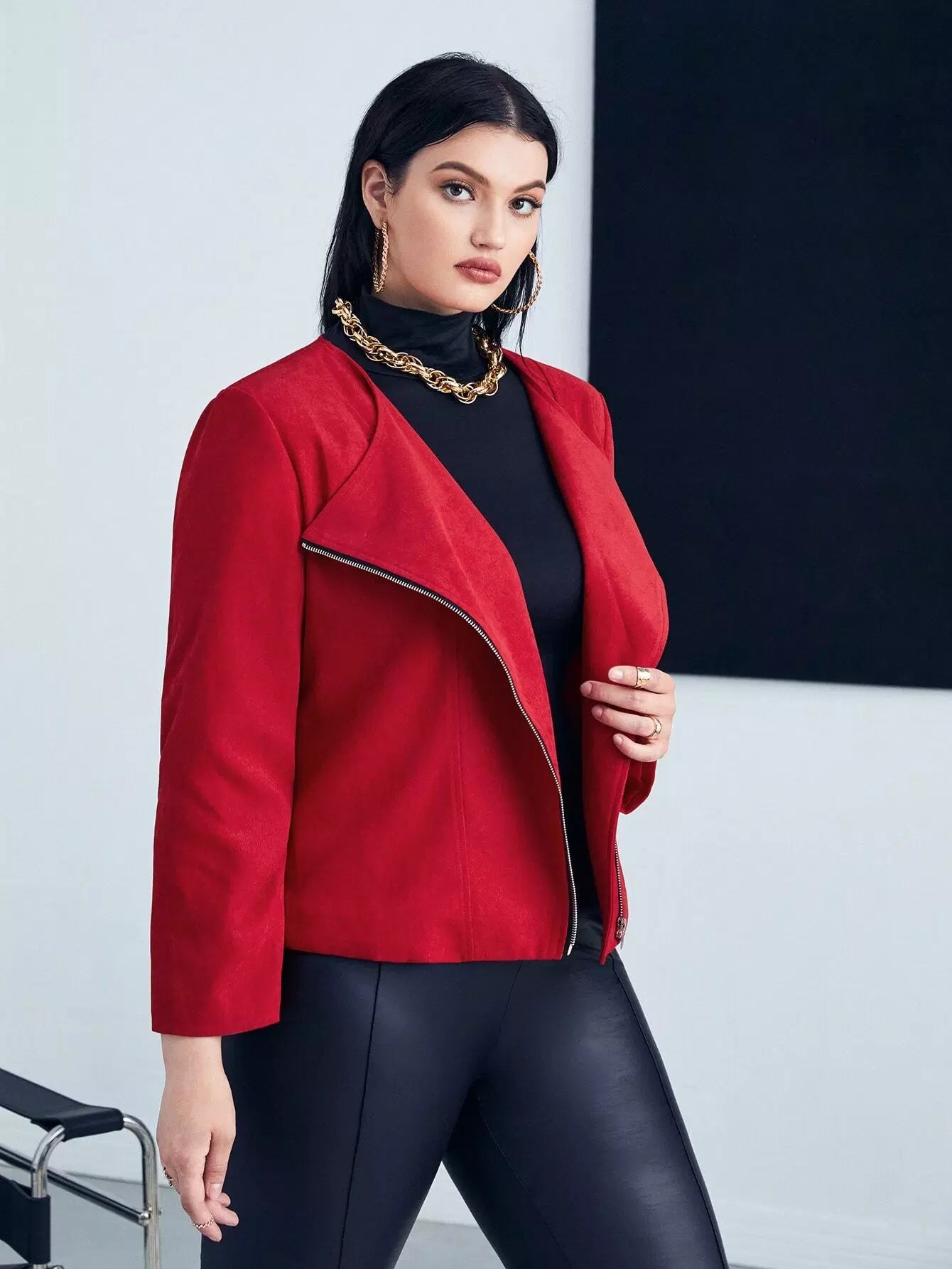 نحيف - مقاس كبير جاكيت موتو بسحاب